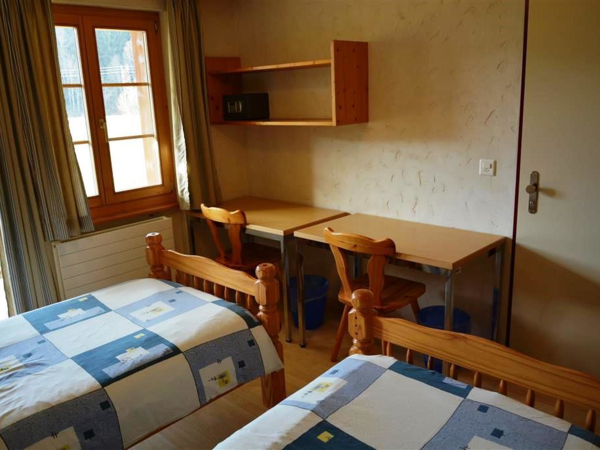 Grosses Wohn-/Esszimmer mit Wohnecke, Kabel-TV/Radio, Esstisch und offener Küche mit Geschirrspüler, Filter-Kaffeemaschine, Fondue- und Raclette-Set. 1 Schlafzimmer mit französischem Bett (160x200cm), 1 Schlafzimmer mit 2 Betten (90x190cm), separates Badezimmer mit Dusche/WC in jedem Zimmer. Die Schlafzimmer sind durch einen Korridor mit der Wohnküche verbunden. Sitzplatz (Südseite). WiFi. Kinderbett (60x120cm) exkl. Bettwäsche vorhanden.