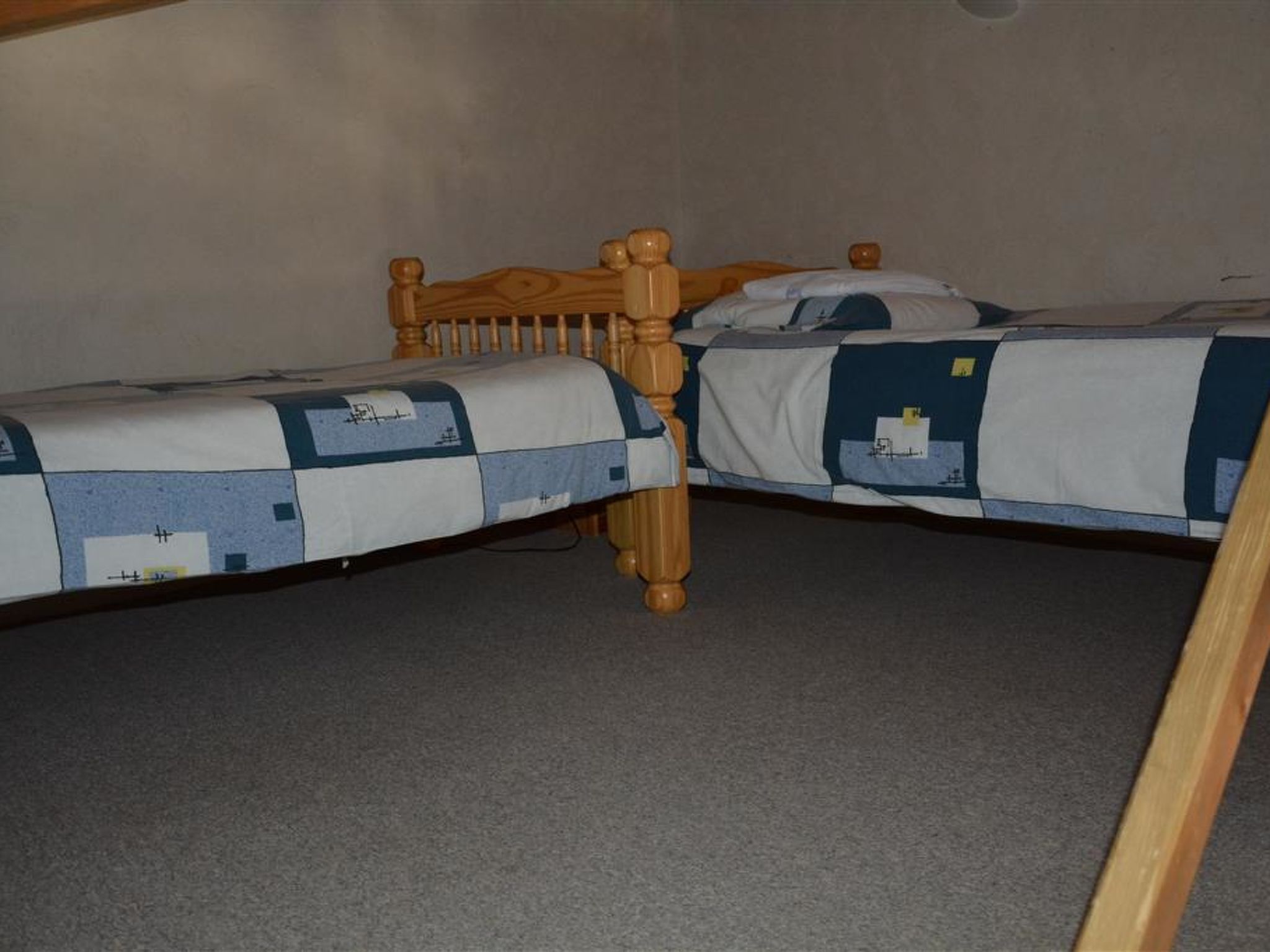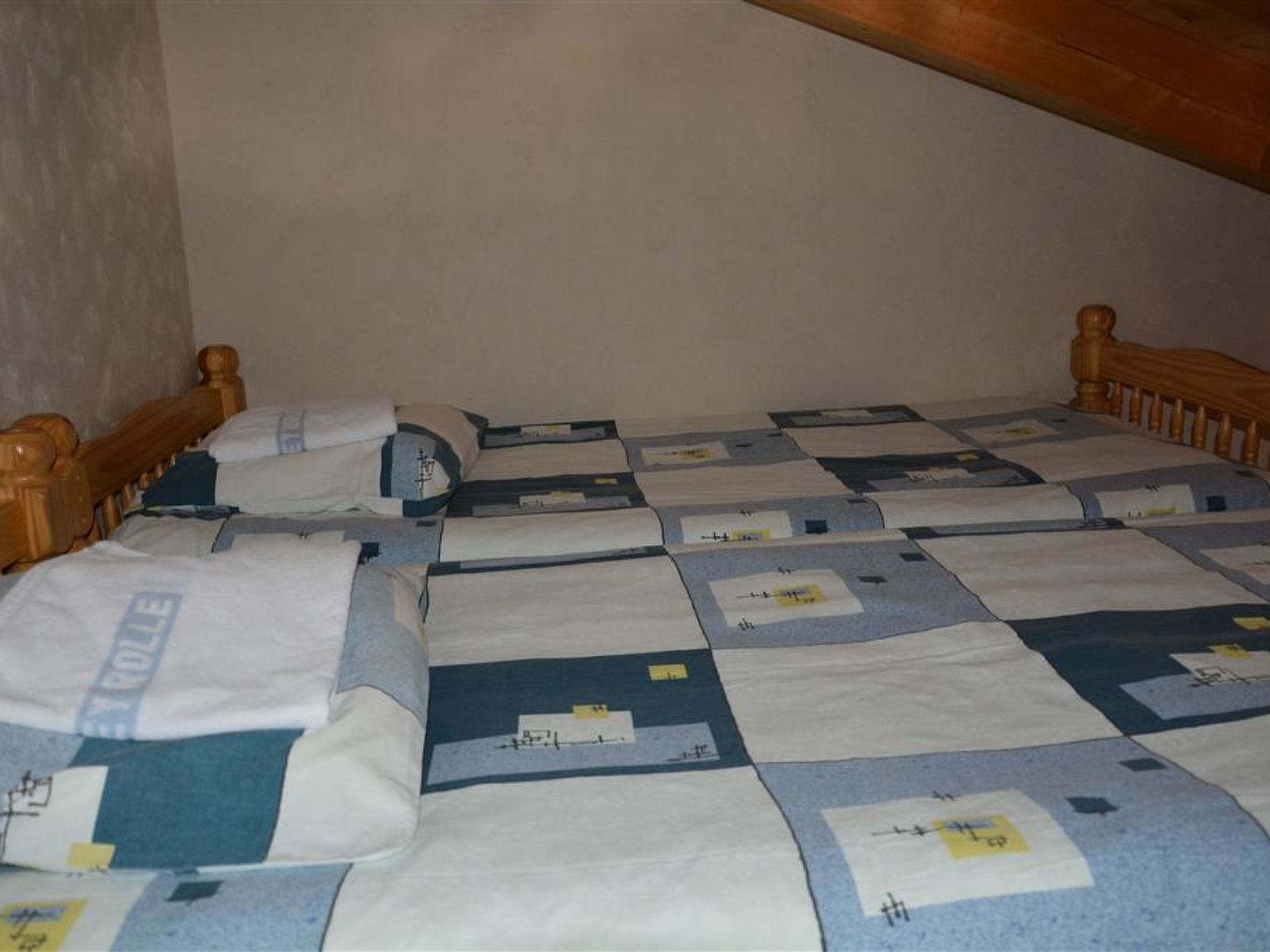 1 grosses Wohnzimmer mit Wohnecke, Kabel-TV/Radio, Esstisch, offener Küche mit Geschirrspüler, Filter-Kaffeemaschine, Fondue- und Raclette-Set. 1 Galerie (Dachschräge) mit 1 Grandlit (160x190cm). Badezimmer mit Dusche/WC. 1 Schlafzimmer mit 1 Einzelbett (90x190cm) unten und 2 Einzelbetten (90x190cm) auf der Galerie, separates Badezimmer mit Dusche/WC. Das Schlafzimmer ist durch einen Korridor mit der Wohnküche verbunden, welche zusätzlich in die Ferienwohnung "Jacqueline 22" führt. WiFi. Kinderbett (60x120cm) exkl. Bettwäsche vorhanden.