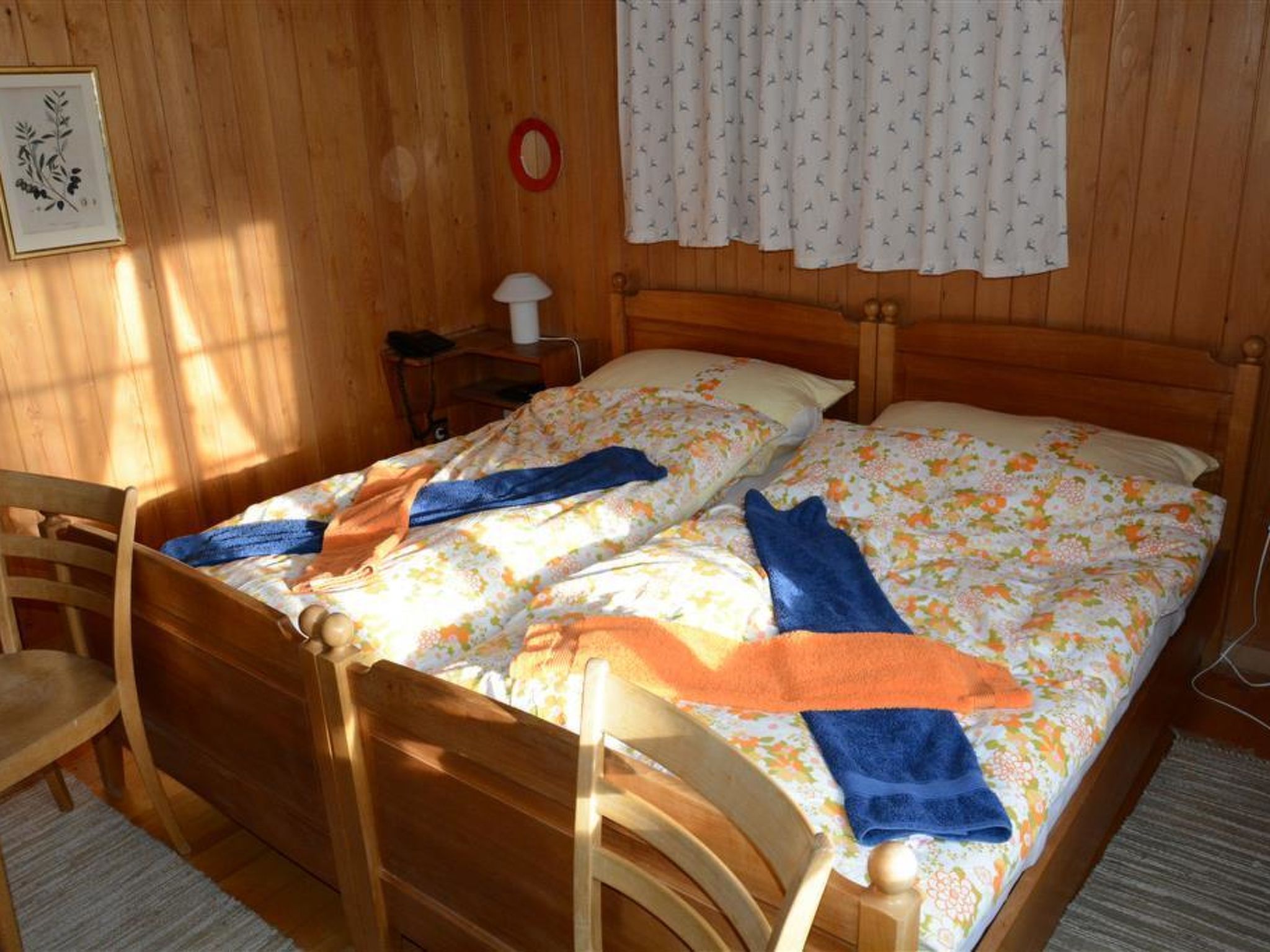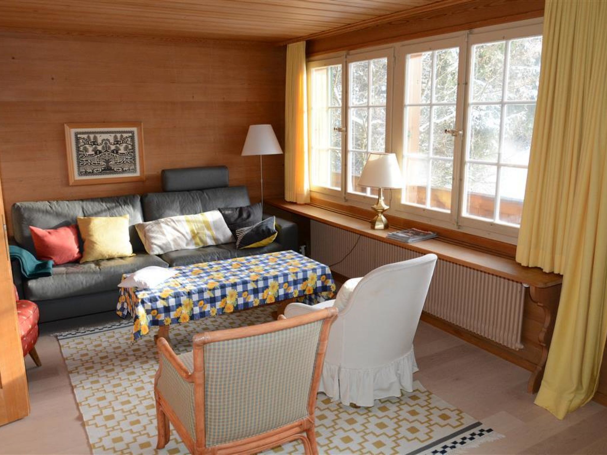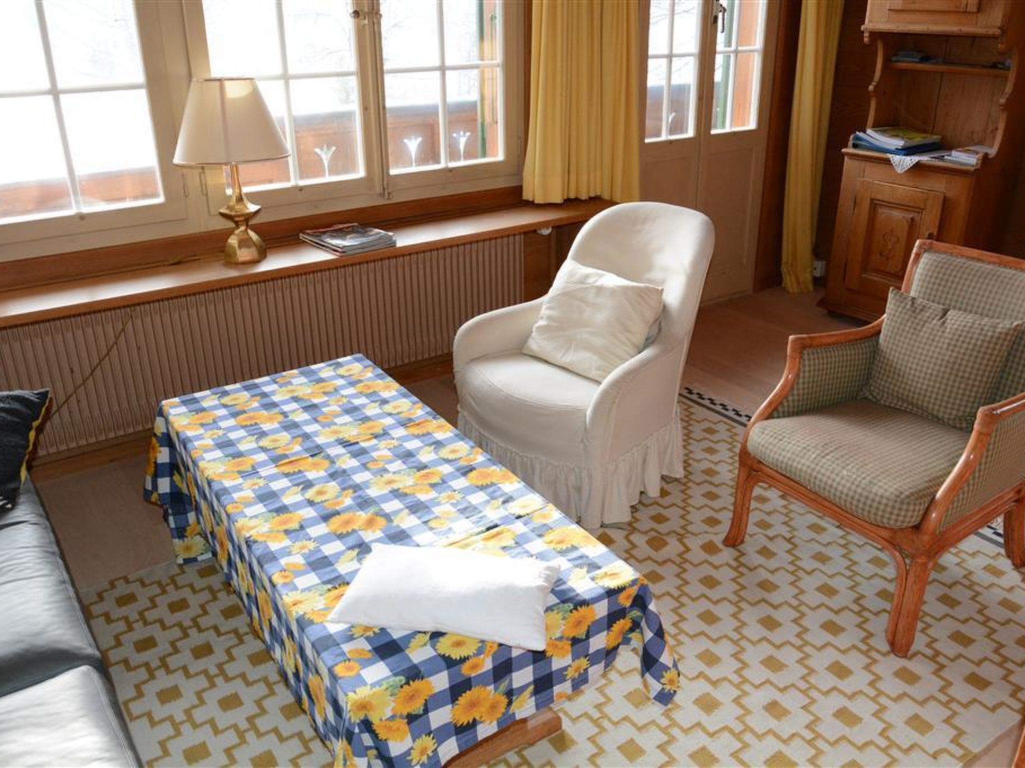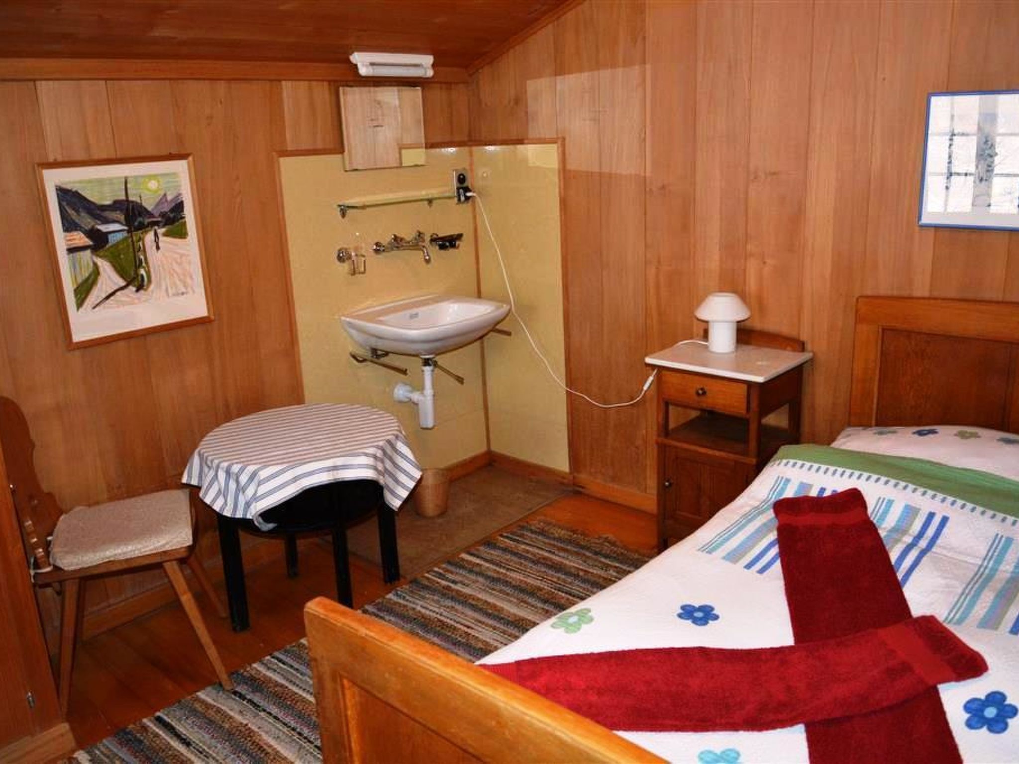 Gemütliches Holz-Chalet auf 3 Etagen. Erdgeschoss: Spielzimmer mit Tischtennistisch. Waschmaschine und Wäschetrockner. 1. Stock: Ess-/Wohnzimmer mit Sitzgruppe, Radio, TV, Balkon. Ältere Küche u.a. ausgestattet mit Mikrowelle, Geschirrspüler, Kühlschrank mit Gefrierfach, Kaffeevollautomat, Fondue- und Raclette-Set sowie Durchreiche ins Ess-/Wohnzimmer. 1 kleineres Schlafzimmer mit Doppelbett (2x90x200cm). Bad, WC. 2. Stock: 1 kleines Schlafzimmer mit Einzelbett (90x200cm) und Lavabo. 2 Schlafzimmer mit Doppelbett (2x90x200cm), Lavabo und Balkon. Dusche/WC. WiFi.