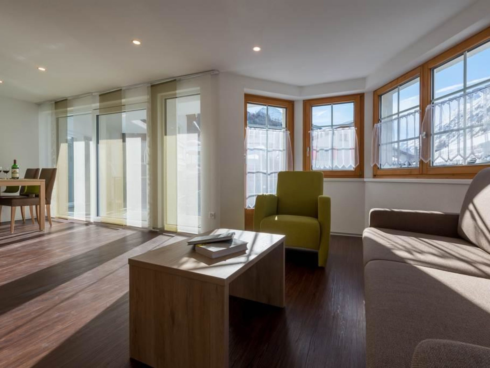 Komfortable 3 ½-Zimmerwohnung für 4 Personen im 1. Obergeschoss West 2 Doppelschlafzimmer mit WC und Dusch, eins mit Westbalkon, Wohnzimmer mit Südbalkon, Radio, Flachbildschirmfernseher, Swisscom-TV, WLAN, Internet, halboffene modern eingerichtete Küche mit Balkon und Esstisch, Backofen mit Mikrowelle, Induktionskochfeld, Geschirrwaschmaschine, Kühlschrank, Kaffeemaschine, Fonduegeschirr, Racletteofen etc.