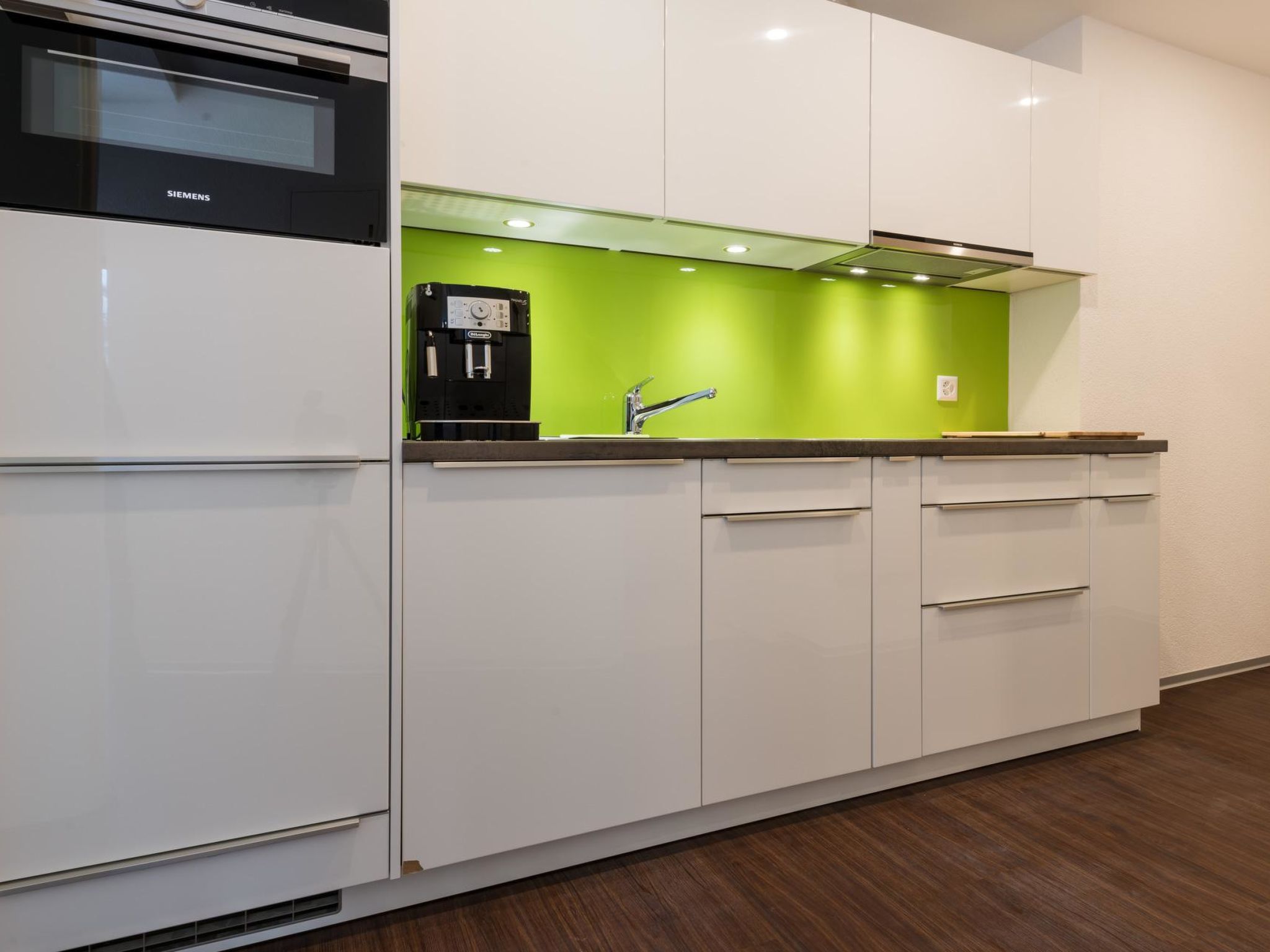 Komfortable 2-Zimmerwohnung für 2-3 Personen im Erdgeschoss West 1 Doppelschlafzimmer mit WC und Dusch, Wohn-/Esszimmer mit Balkon und Schlafcouch für eine Person, ein zusätzliches WC mit Dusch. Radio/Flachbildfernseher, Swisscom-TV,WLAN, Internet, modern eingerichtete Küche mit Backofen mit Mikrowelle, Induktionskochfeld, Geschirrwaschmaschine, Kühlschrank, Kaffeemaschine, Fonduegeschirr, Racletteofen etc.