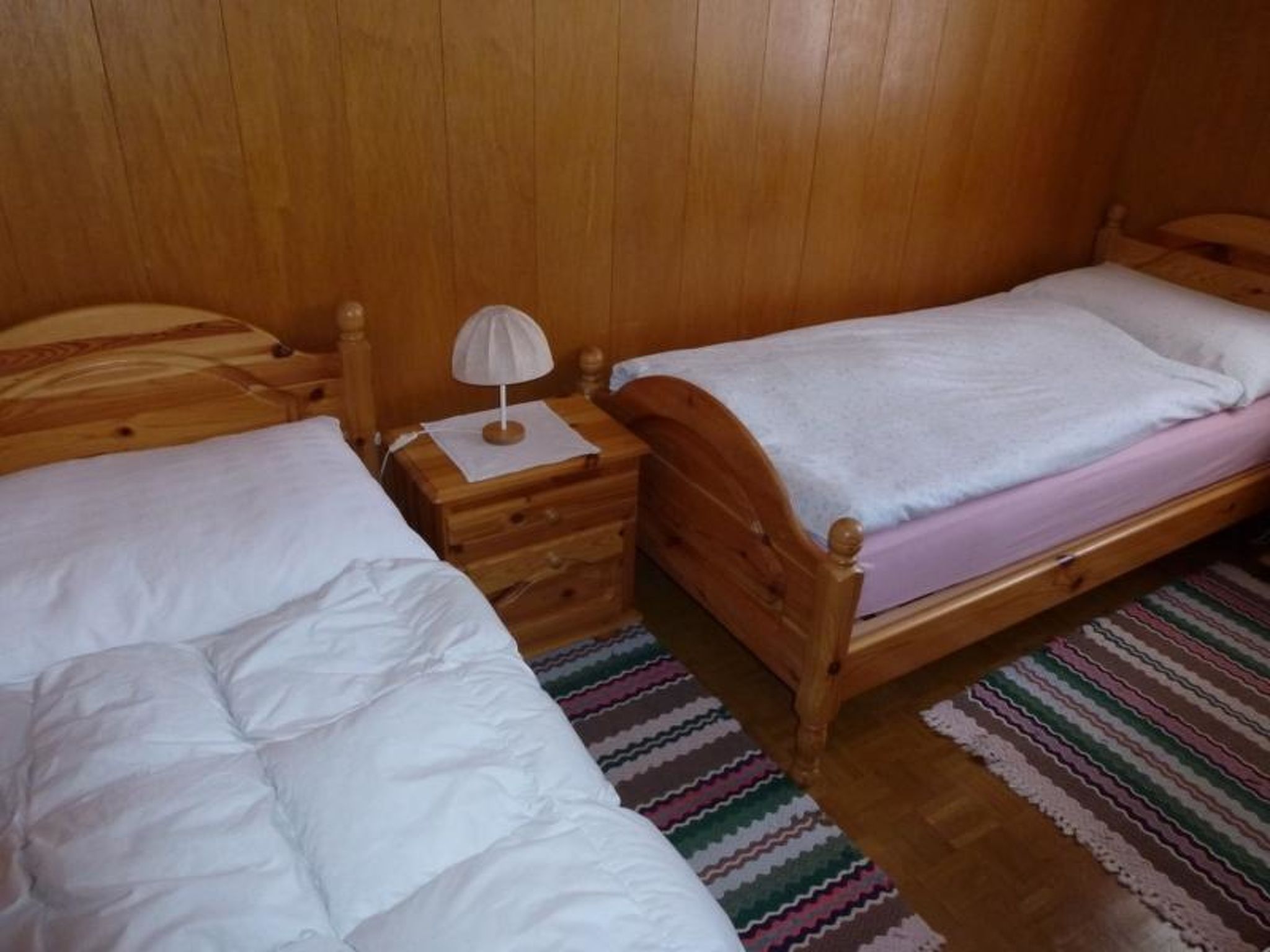 3-Zimmerwohnung (65 m2), Erdgeschoss, 2 Doppelschlafzimmer, grosse Wohn-Essküche, Bad/WC, TV, grosser Vorplatz, die Schlafzimmer sind mit Holz vertäfert.3-Zimmerwohnung