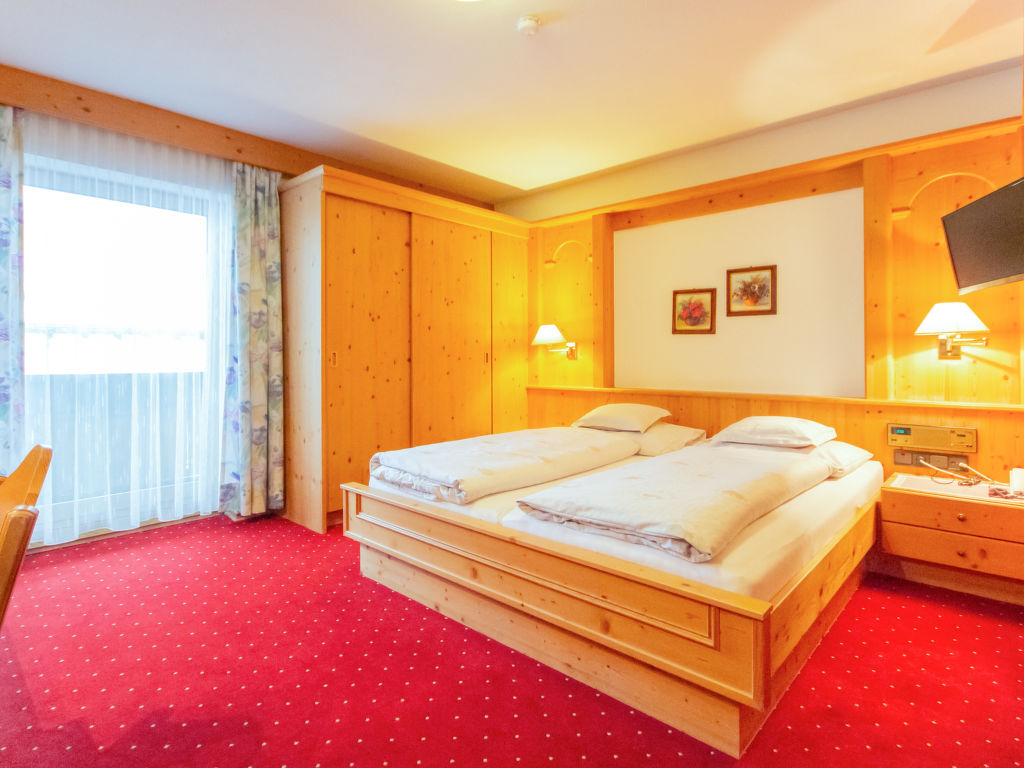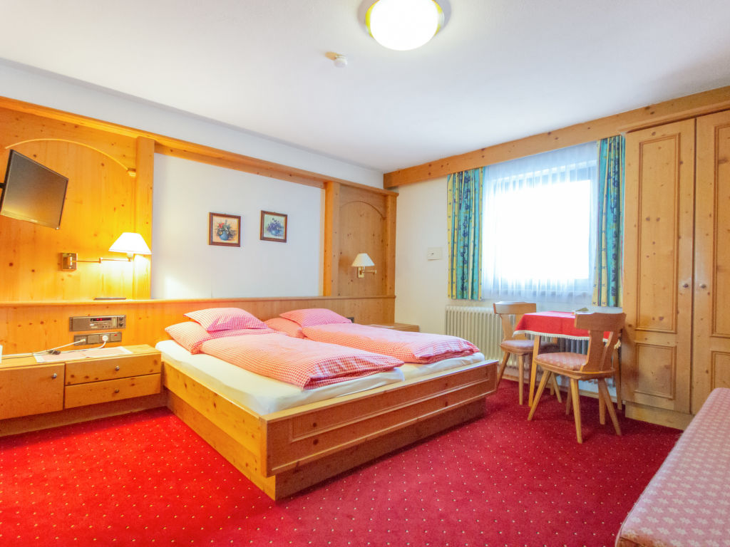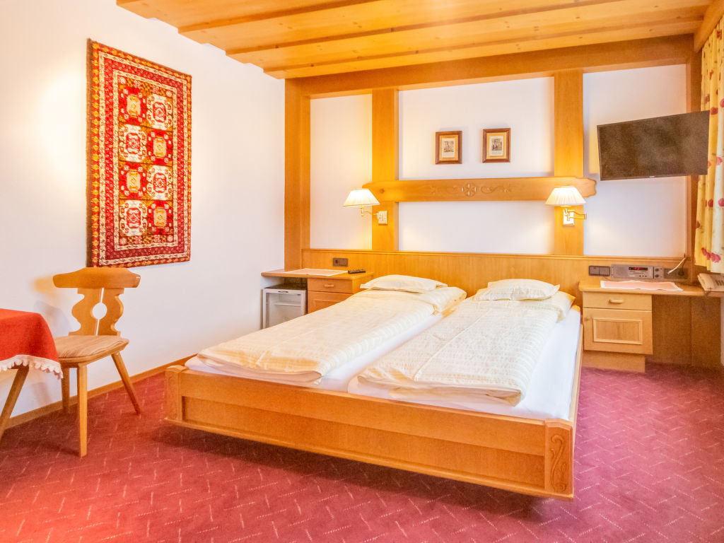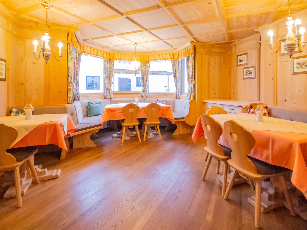 22-Zimmer-Haus, 5 Etagen, ca. 500 m². Untergeschoss: Separater Eingang in Ski- und Schuhraum mit Skischuhtrockner und Skiständern. Spieleraum mit Tischtennisplatte, Fitnessgeräten und Sat-TV. Wellnessbereich mit finnischer Sauna, Dampfbad und Infrarotkabine mit Ruheraum und Liegestühlen (geöffnet täglich außer Samstag von 16-20 Uhr). 2x Dusche. 2x sep.WC. Erdgeschoss: Eingang in Vorraum, ehemaliger Rezeptionsbereich mit Sitzecke, Sat-TV und Ausgang zur Ostterrasse. Gemütlicher, teilweise holzvertäfelter Speisesaal (ca. 100 m²) mit Essecken, Buffetbereich, große Bar (Geschirrspüler, Kühlfächer) mit 7 Barhockern, Sitzbank und Terrassenausgang. Ca. 25 m² große Gastroküche (4 Flammen, 2 Platten, Backofen, Mikrowelle, Geschirrspüler, Kühlschrank, Gefrierschrank, 6x Kaffeemaschine) mit Essecke für 6 Personen. 1. Etage: Ca. 90 m² abgeschlossene Wohnung mit folgender Aufteilung: Flur mit Einbauschränken. Wohn-/Schlafraum mit Doppelbettcouch, Sat-TV und Küchenzeile (4 Platten, Mikrowelle, Kühlschrank). Doppelzimmer. Kleines Einzelzimmer mit Sat-TV. Bad/Dusche/WC. Zusätzlich stehen in der 1. Etage noch folgende Zimmer zur Verfügung: 2 Doppelzimmer, jeweils mit Dusche/WC, Sat-TV, kleinem Kühlschrank und Balkonausgang. Doppelzimmer mit Dusche/WC und Sat-TV. Einzelzimmer mit Dusche und Balkonausgang. Sep.WC. 2. Etage: 3 Doppelzimmer, jeweils mit Dusche/WC, Sat-TV und Balkonausgang. Schlafzimmer mit Doppelbett und Bettcouch. Schlafzimmer mit Doppelbett, Bettcouch und Dusche/WC. Doppelzimmer mit Sat-TV und Dusche/WC. Einzelzimmer mit Sat-TV und Waschbecken. Bad. Sep.WC. 3. Etage (leichte Dachschräge): Ca. 45 m² große abgeschlossene Wohnung mit folgender Aufteilung: Wohnküche (2 Platten, Kühlschrank, Kaffeemaschine) mit Essecke und Sat-TV. 2 Doppelzimmer. Dusche/WC. Weitere, ca. 45 m² große, abgeschlossene Wohnung mit folgender Aufteilung: Flur mit Küchenzeile (2 Platten, Kühlschrank, Kaffeemaschine). Wohnraum mit Essplatz und Sat-TV. Doppelzimmer. Zweibettzimmer (Betten hintereinander). Bad. Sep. WC. Außerhalb der abgeschlossenen Wohnungen gibt es noch ein weiteres Doppelzimmer mit Sat-TV, Balkonausgang und Dusche/WC. Bei Belegung mit weniger Personen als der maximalen Personenzahl stehen nicht alle Wohneinheiten zur Verfügung.