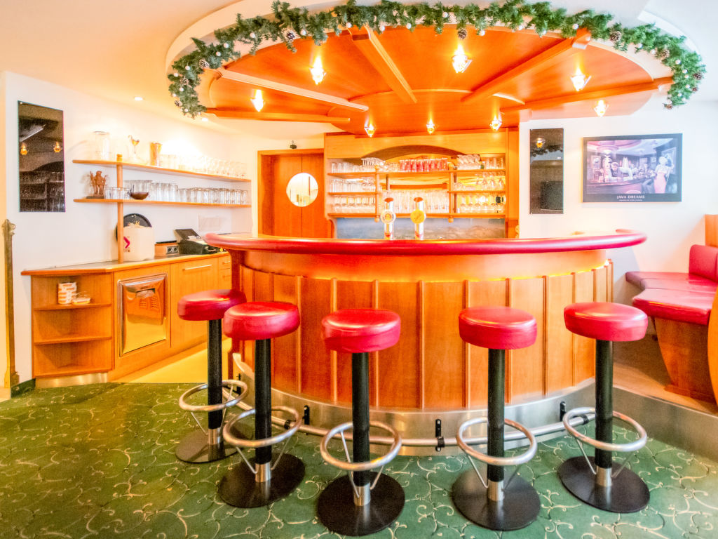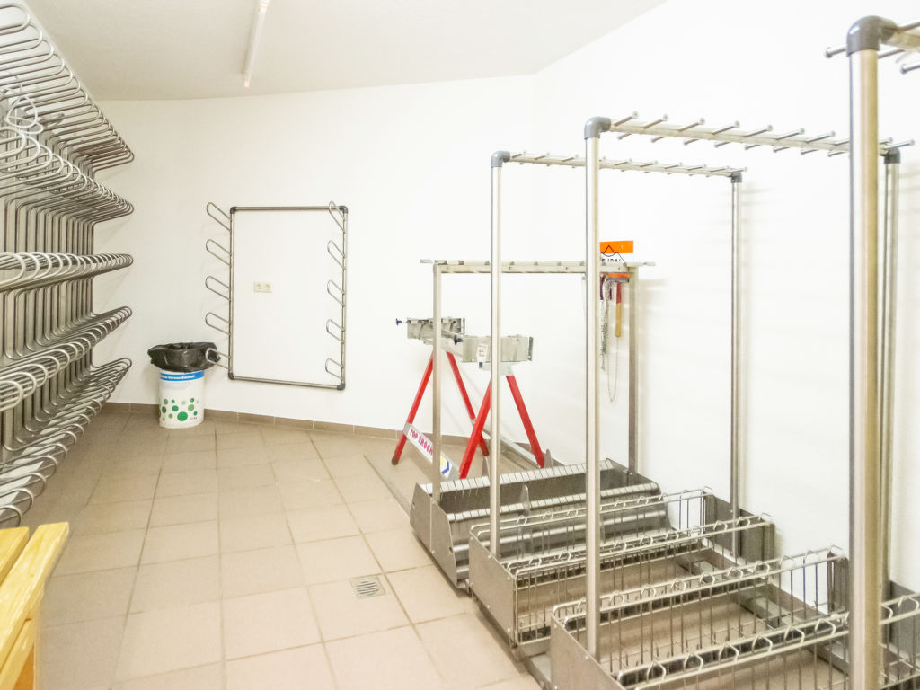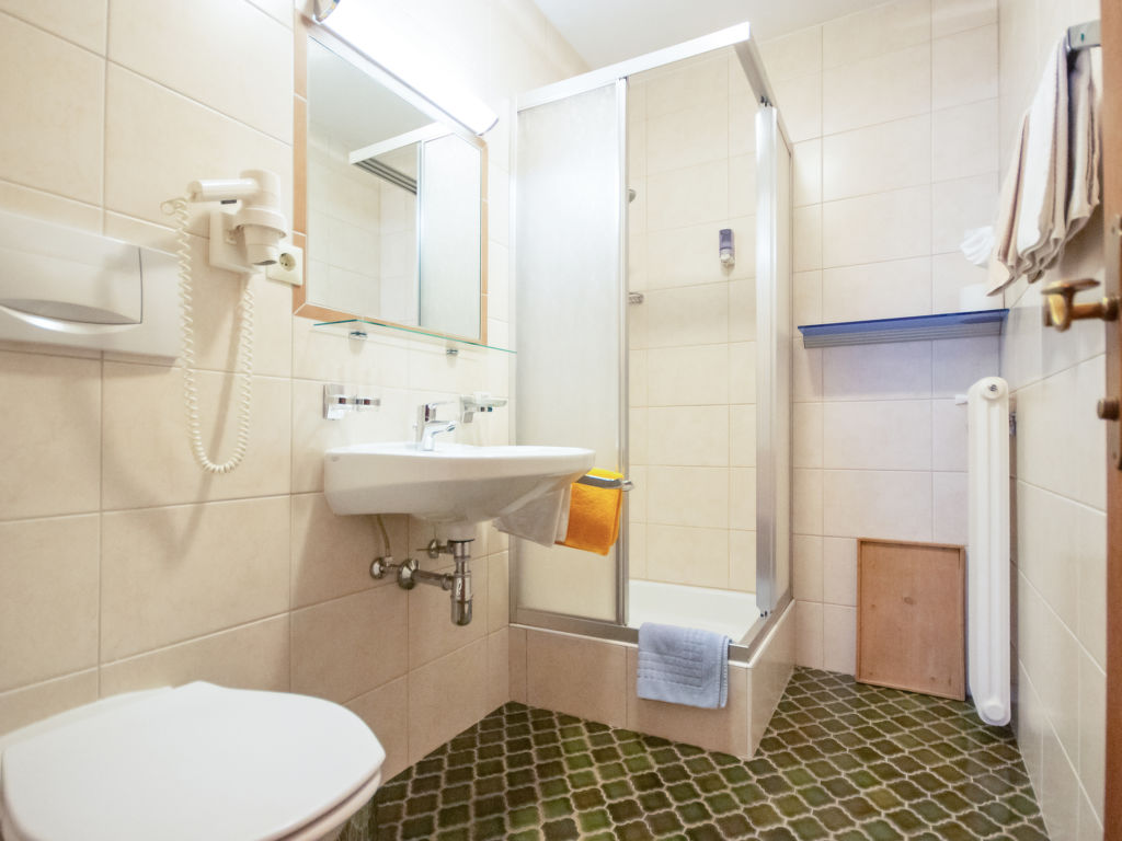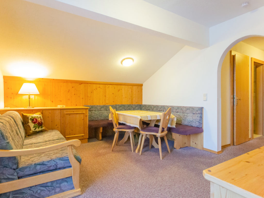 22-Zimmer-Haus, 5 Etagen, ca. 500 m². Untergeschoss: Separater Eingang in Ski- und Schuhraum mit Skischuhtrockner und Skiständern. Spieleraum mit Tischtennisplatte, Fitnessgeräten und Sat-TV. Wellnessbereich mit finnischer Sauna, Dampfbad und Infrarotkabine mit Ruheraum und Liegestühlen (geöffnet täglich außer Samstag von 16-20 Uhr). 2x Dusche. 2x sep.WC. Erdgeschoss: Eingang in Vorraum, ehemaliger Rezeptionsbereich mit Sitzecke, Sat-TV und Ausgang zur Ostterrasse. Gemütlicher, teilweise holzvertäfelter Speisesaal (ca. 100 m²) mit Essecken, Buffetbereich, große Bar (Geschirrspüler, Kühlfächer) mit 7 Barhockern, Sitzbank und Terrassenausgang. Ca. 25 m² große Gastroküche (4 Flammen, 2 Platten, Backofen, Mikrowelle, Geschirrspüler, Kühlschrank, Gefrierschrank, 6x Kaffeemaschine) mit Essecke für 6 Personen. 1. Etage: Ca. 90 m² abgeschlossene Wohnung mit folgender Aufteilung: Flur mit Einbauschränken. Wohn-/Schlafraum mit Doppelbettcouch, Sat-TV und Küchenzeile (4 Platten, Mikrowelle, Kühlschrank). Doppelzimmer. Kleines Einzelzimmer mit Sat-TV. Bad/Dusche/WC. Zusätzlich stehen in der 1. Etage noch folgende Zimmer zur Verfügung: 2 Doppelzimmer, jeweils mit Dusche/WC, Sat-TV, kleinem Kühlschrank und Balkonausgang. Doppelzimmer mit Dusche/WC und Sat-TV. Einzelzimmer mit Dusche und Balkonausgang. Sep.WC. 2. Etage: 3 Doppelzimmer, jeweils mit Dusche/WC, Sat-TV und Balkonausgang. Schlafzimmer mit Doppelbett und Bettcouch. Schlafzimmer mit Doppelbett, Bettcouch und Dusche/WC. Doppelzimmer mit Sat-TV und Dusche/WC. Einzelzimmer mit Sat-TV und Waschbecken. Bad. Sep.WC. 3. Etage (leichte Dachschräge): Ca. 45 m² große abgeschlossene Wohnung mit folgender Aufteilung: Wohnküche (2 Platten, Kühlschrank, Kaffeemaschine) mit Essecke und Sat-TV. 2 Doppelzimmer. Dusche/WC. Weitere, ca. 45 m² große, abgeschlossene Wohnung mit folgender Aufteilung: Flur mit Küchenzeile (2 Platten, Kühlschrank, Kaffeemaschine). Wohnraum mit Essplatz und Sat-TV. Doppelzimmer. Zweibettzimmer (Betten hintereinander). Bad. Sep. WC. Außerhalb der abgeschlossenen Wohnungen gibt es noch ein weiteres Doppelzimmer mit Sat-TV, Balkonausgang und Dusche/WC. Bei Belegung mit weniger Personen als der maximalen Personenzahl stehen nicht alle Wohneinheiten zur Verfügung.