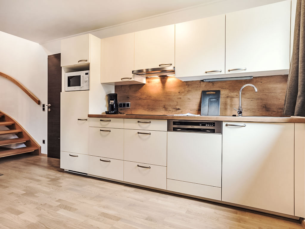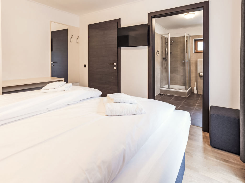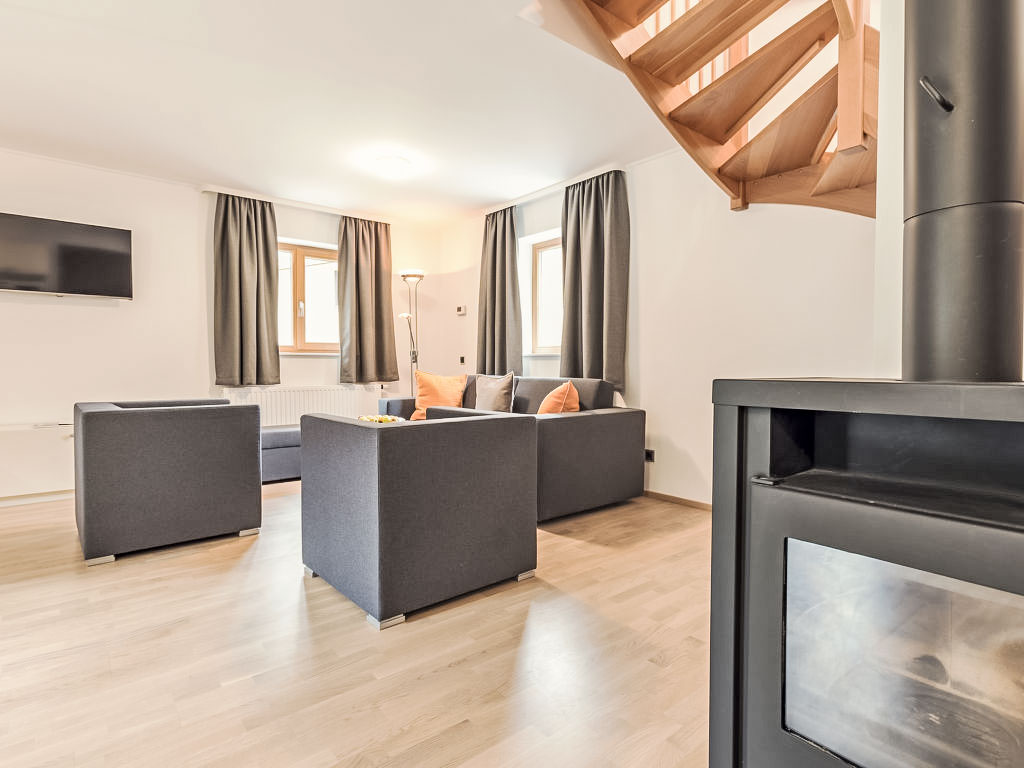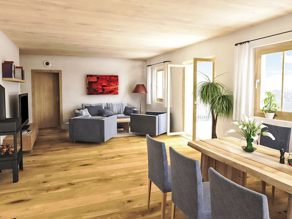 4-Zimmer-Wohnung 94 m2, im Obergeschoss. Geschmackvoll eingerichtet: 2 Doppelzimmer, jedes Zimmer mit Dusche/WC und Flachbildschirm. 1 Zimmer mit 1 x 2 Etagenbetten, Flachbildschirm. Wohn-/Esszimmer 35 m2 mit 1 Doppeldiwanbett, Schwedenofen und Flachbildschirm. Ausgang zum Balkon. Offene Küche (Geschirrspüler, 4 Glaskeramikherd Platten, Mikrowelle, elektrische Kaffeemaschine). Sep. WC, Sauna. Balkon. Schöne Sicht auf die Berge und die Landschaft. Zur Verfügung: Sauna. Internet (Wireless LAN, gratis). Bitte beachten: Nichtraucher-Unterkunft. 1 Haustier/Hund erlaubt.