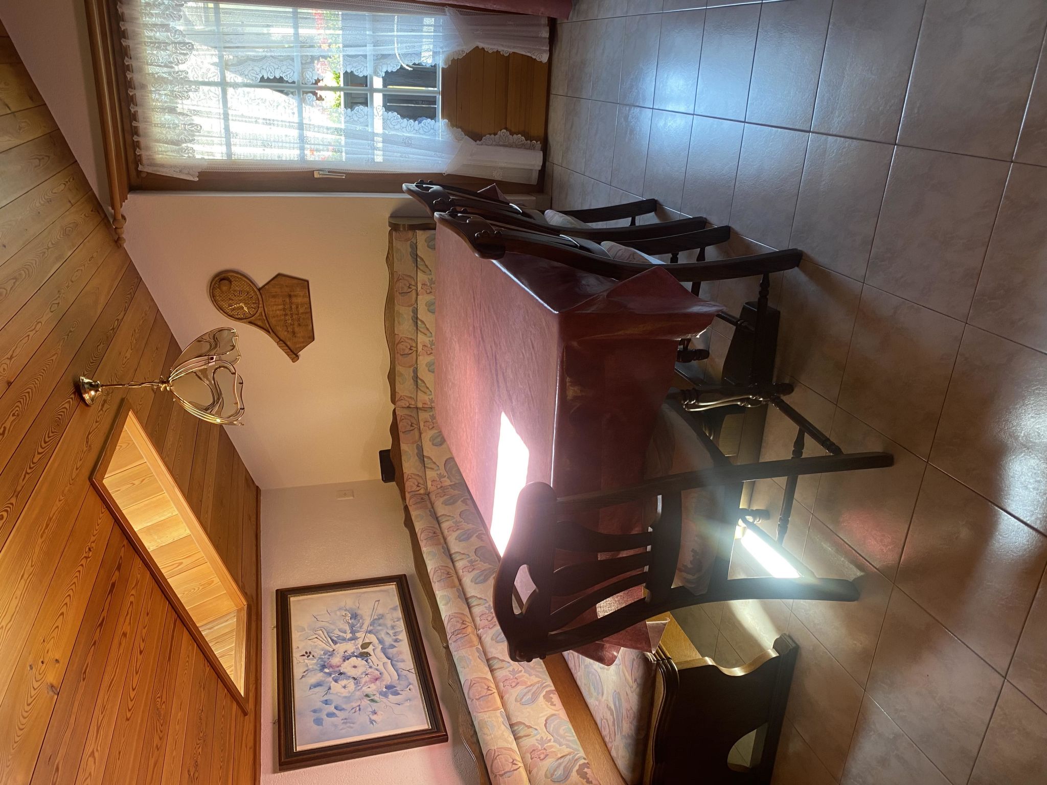 Die komfortable, gemütliche Dachwohnung verfügt über einen grossen Küche/Ess/Wohnraum, 2 Doppelzimmer, 1 Einzelzimmer und Bad/WC, einen Balkon auf der Südseite und einen auf der Nordseite. Die Wohnung ist mit einer Geschirrspülmaschine, Kaffeemaschine, Wasserkocher, Mikrowelle, Racletteofen, Fondueset, Sat-TV, Radio und gratis W-Lan ausgestattet.