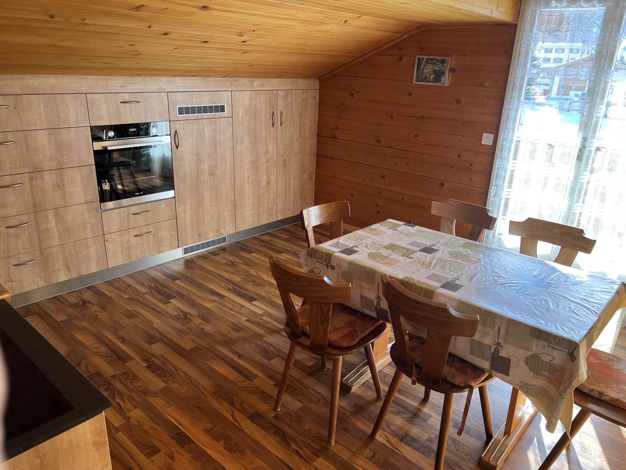 Die Wohnung ist im Dachgeschoss. Die Wohnung hat 3 Schlafzimmer, eine Küche, ein Badezimmer und ein WC. Im Süden hat es eine Terasse.