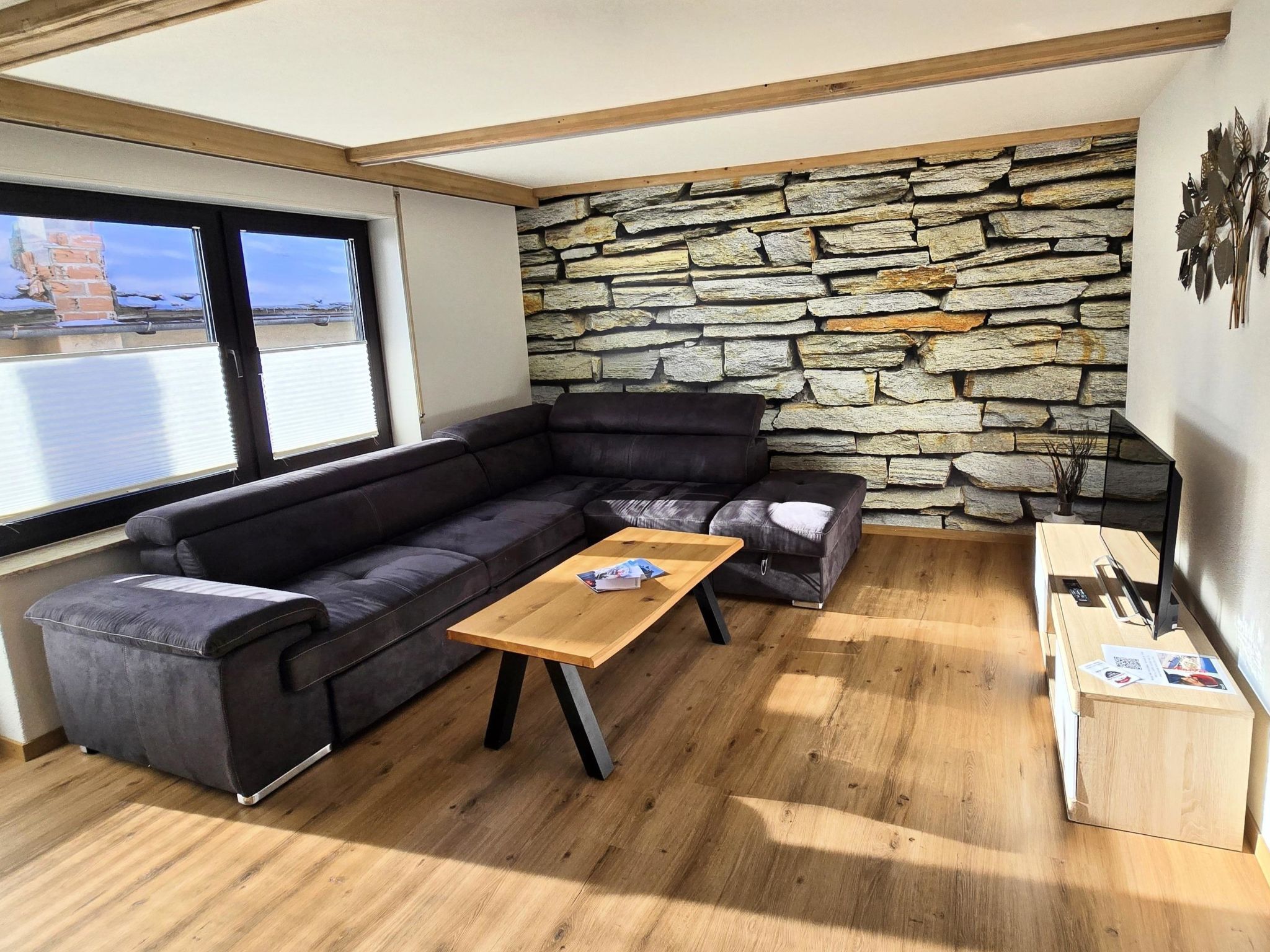 Die Wohnung hat 2 Doppelbettzimmer und ein Einzelzimmer. WC mit Bad/Dusche, gut eingerichtete Küche mit Esstisch kombiniert mit Wohnzimmer. Radio, Sat-TV, W-LAN und Staubsauger sind vorhanden. Die Küche verfügt über Geschirrspülmaschine, Kaffeemaschine, Fondue-Set, Raclette/Grill, Mixer und reichlich an Essgeschirr und Besteck.