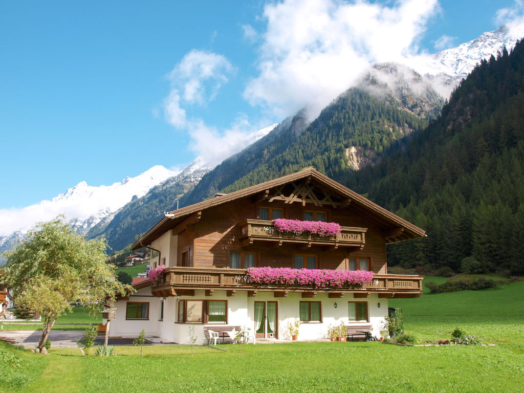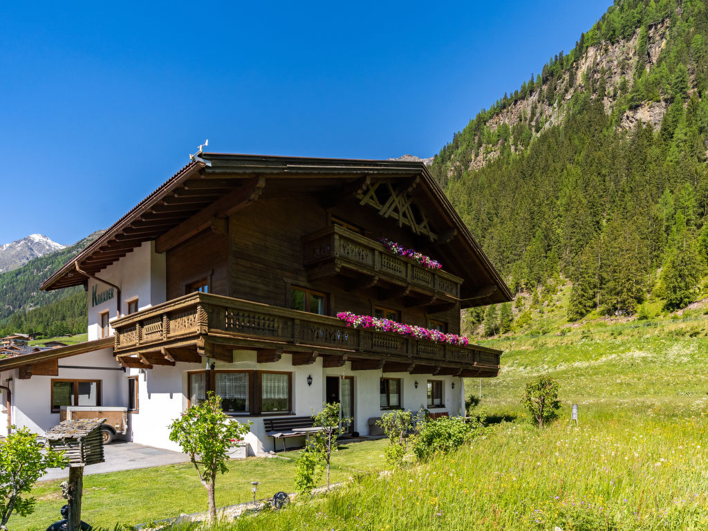 Haus KRAXNER mit insgesamt 4 Wohnungen steht am Ortseingang von Sölden, im Ortsteil Kaisers. Ortsmitte 2 km. Restaurant 1,3 km. Giggijochbahn 1,6 km, Geschäfte 1,8 km. Freizeit Arena Sölden 1,9 km. Parkmöglichkeit auf dem Grundstück. Offenes Wiesengrundstück zur gemeinsamen Nutzung aller Feriengäste und der Besitzer, die im Erdgeschoss wohnen. Brötchenservice. Alle Wohnungen verfügen über einen großen Südbalkon mit Gartenmobiliar und 2 Liegestühlen. Freundliche, feriengerechte Einrichtung. Teppichböden. Kabel-TV. Internet (WLAN, inklusive). Radio. Safe. Öl-Zentralheizung. Hinweis: Der Besitzer akzeptiert keine Gruppen. Winter-Infos: Talstation der Giggijochbahn 1,6 km. Skibushaltestelle ca. 100 m. Skikeller mit Schuhtrockner.