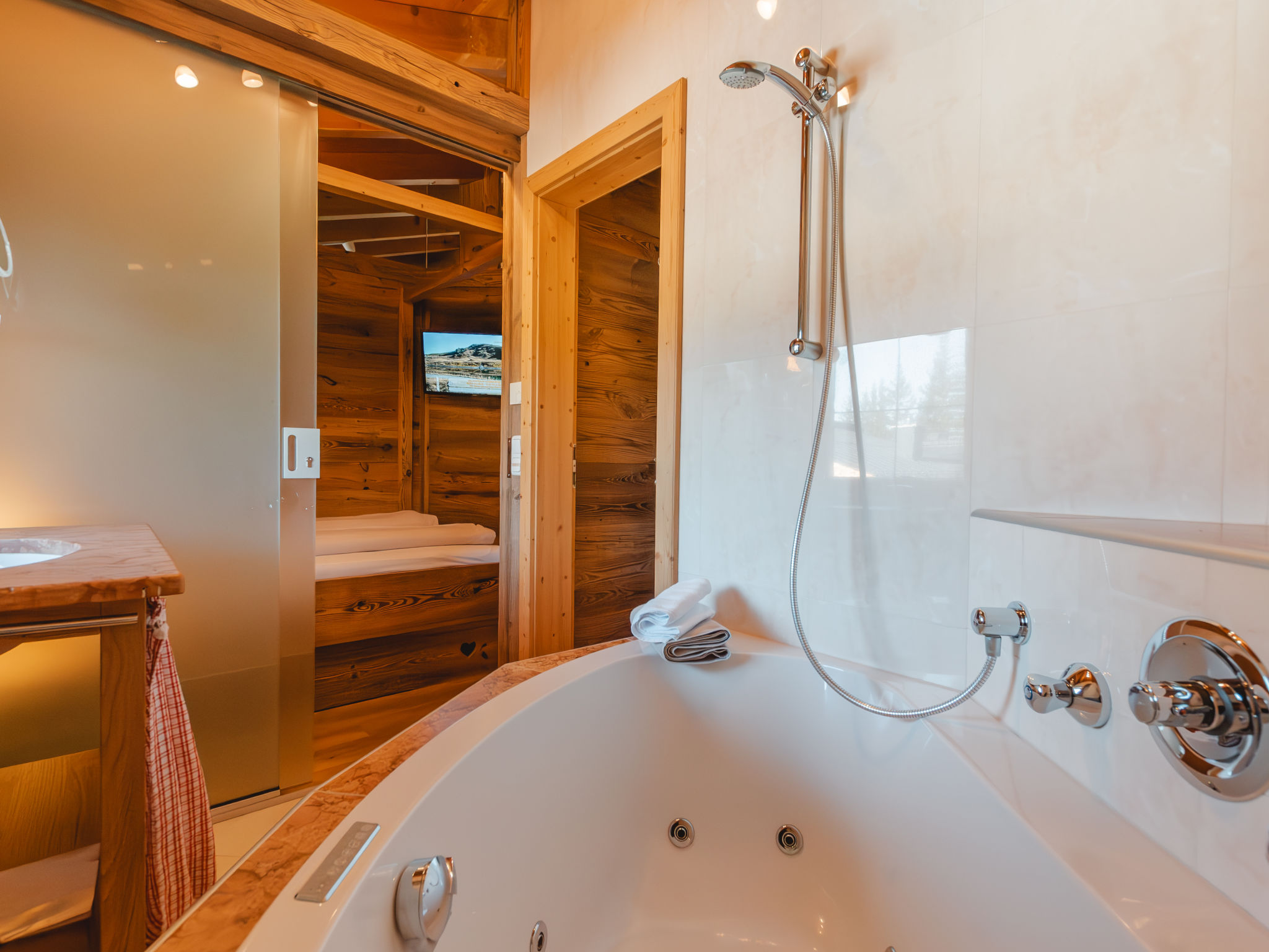 5-Zimmer-Chalet 110 m2 auf 2 Stockwerken. Luxuriös und geschmackvoll eingerichtet: Eingang. 2 Doppelzimmer, jedes Zimmer mit Sat-TV. Ausgang zur Terrasse. 1 Zimmer mit 2 Betten und 1 x 2 Etagenbetten. Dusche/WC. Obergeschoss: grosses Wohnzimmer mit offenem Kamin und Sat-TV (Flachbildschirm), Radio. Ausgang zum Balkon. 1 Doppelzimmer mit Sprudelbad. Offene Küche (Backofen, Geschirrspüler, 4 Glaskeramikherd Platten, Mikrowelle, Tiefkühler) mit Essecke. Sep. WC. Balkon, grosse Terrasse. Terrassenmöbel. Schöne Sicht auf die Berge und die Landschaft. Zur Verfügung: Waschmaschine, Kinderhochstuhl, Babybett. Internet (Wireless LAN, gratis). Bitte beachten: Nichtraucher-Unterkunft.