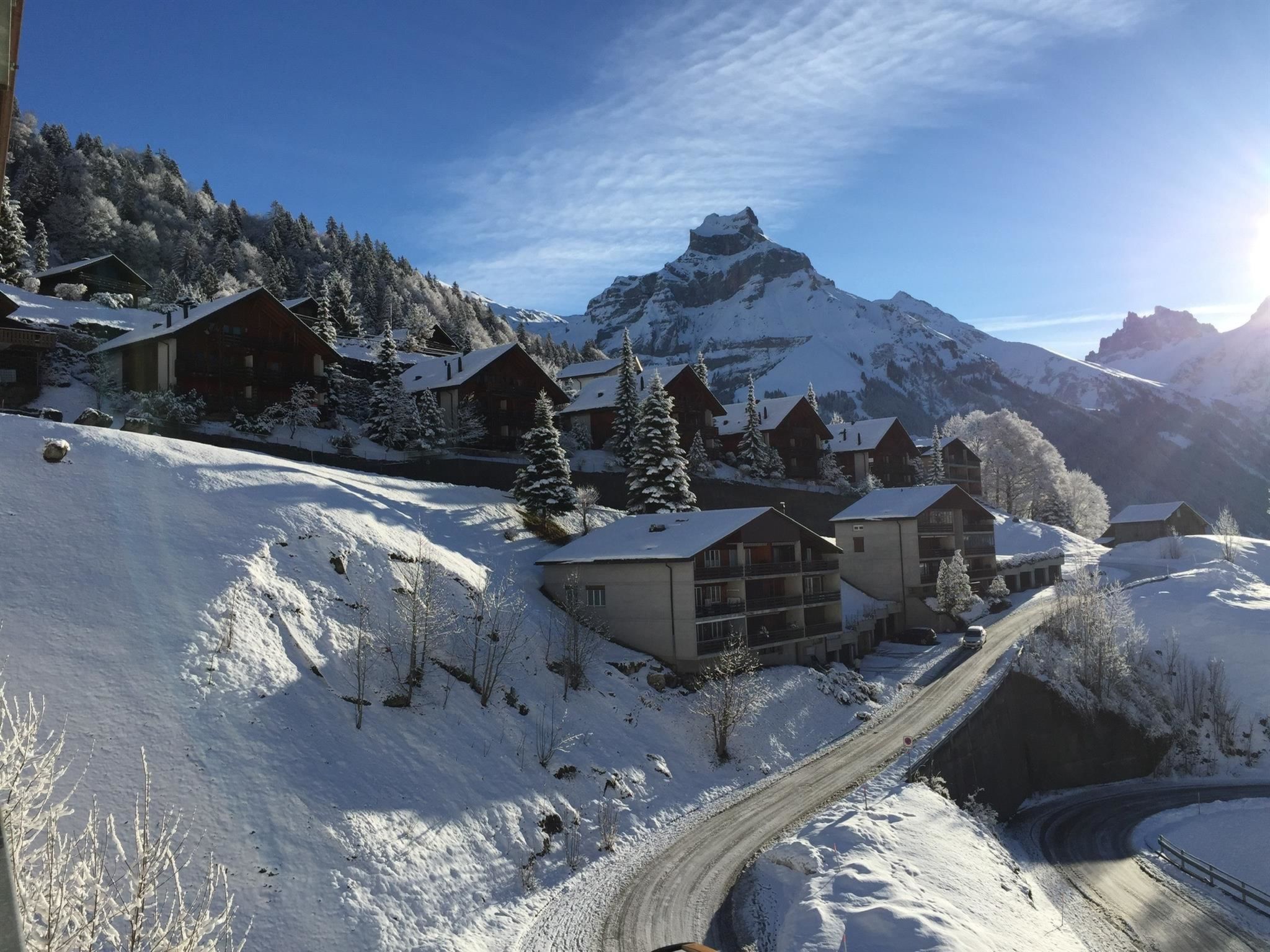 54 m2. Weitere Angaben des Anbieters: Erholsame, ruhige, modern ausgerüstete 2-Zimmer Wohnung (54 m2) plus 14 m2 Balkon in einem Mehrfamilienhaus auf 1200 Meter Höhe auf der nach Süden gerichteten Sonnenterasse oberhalb von Engelberg - ca 2 km vom Dorfzentrum entfernt - mit direktem Blick auf das Titlis Massif, den höchsten Gipfel Engelbergs. Diese voll möblierte Wohnung mit bestem Komfort für 2 Personen bietet viel Platz für 2 Erwachsene und befindet sich im 2ten Stockwerk des Appartementhauses. Eine 70-stufige Treppe führt von der Garage hinauf zur Wohnung. Im Winter ist der Zugang zu dieser Wohnung nur mit einem 4x4 Fahrzeug, mit Reifenketten, mit dem kostenlosen Skibus oder mit einem Taxi möglich. Eine nicht geheizte Garage mit einem Parkplatz vor der Garage ist im Mietpreis inbegriffen. Im Wohnzimmer befinden sich zwei ausziehbare Schlafsofas, ein Fernseher, Radio und High-Speed-Internet sowie eine Essecke mit Tisch und Stühlen. Die offene Küche ist voll ausgestattet mit allen Geräten, Kühl- und Gefrierschrank, Mikrowelle, Nespresso Kaffeemaschine, Geschirrspüler und Induktions Kochplatten. Im Badezimmer hat es eine Badewanne/Dusche und einen elektrischen Handtuchtrockner/Heizung. Das Schlafzimmer ist mit 2 x 90cm breiten Betten, einer elektrischen Heizung und Einbauschränken ausgestattet. Es hat einen 14 m2 Balkon mit einigen Möbeln, 2 Sonnenstohren und mit einem 5-Sterne Blick auf das ganze Engelbergertal und den Titlis. Zur allgemeinen Benutzung; in der Waschküche des Hauses befinden sich 2 Waschmaschinen und ein Trockner. Zusätzlich hat es eine Ecke für die Aufbewahrung von Wander und Skischuhen. Haustiere sind erlaubt. NICHTRAUCHER-Wohnung.