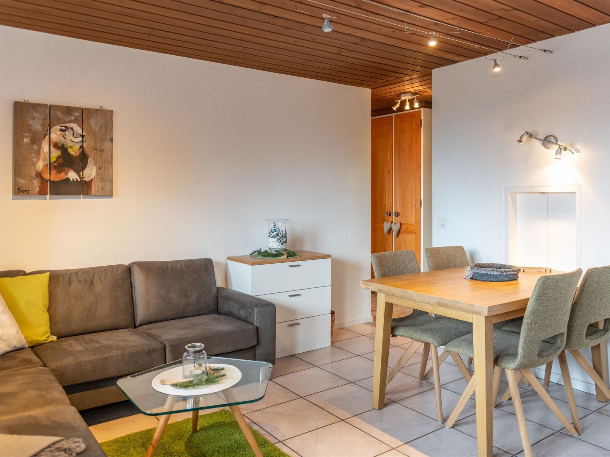 Die Wohnung befindet sich im 1. Stock und ist mit Lift dem erreichbar. Balkon Süd mit toller Sicht auf die Walliser Alpen. Schlafzimmer mit 2 Betten, im Wohnzimmer 2 Schrankbetten, Küche abgetrennt, Bad/WC. Im Keller: Skiraum mit Schuhtrockner, Waschmaschine und Trockner. Rasenplatz mit Grillstelle