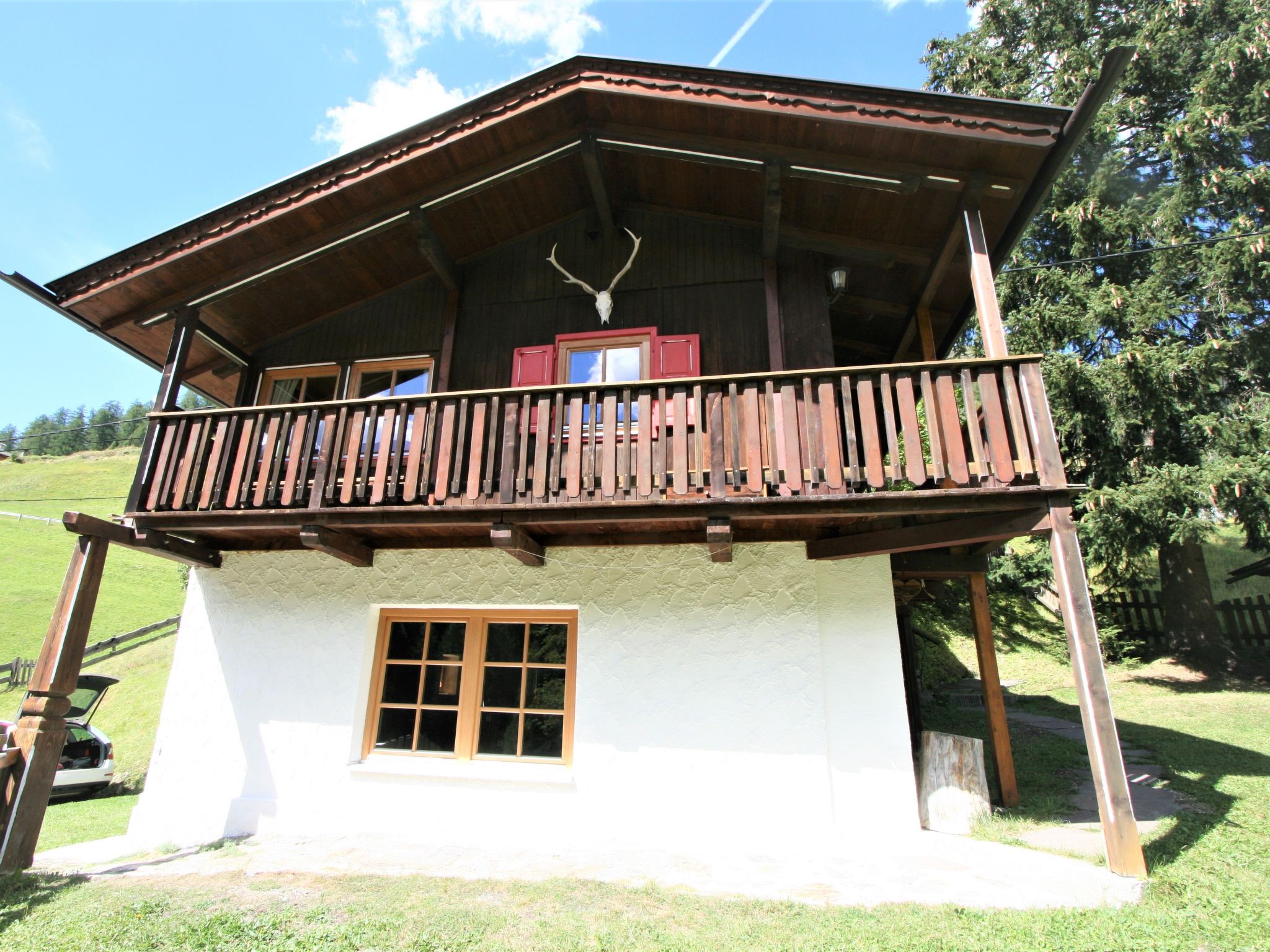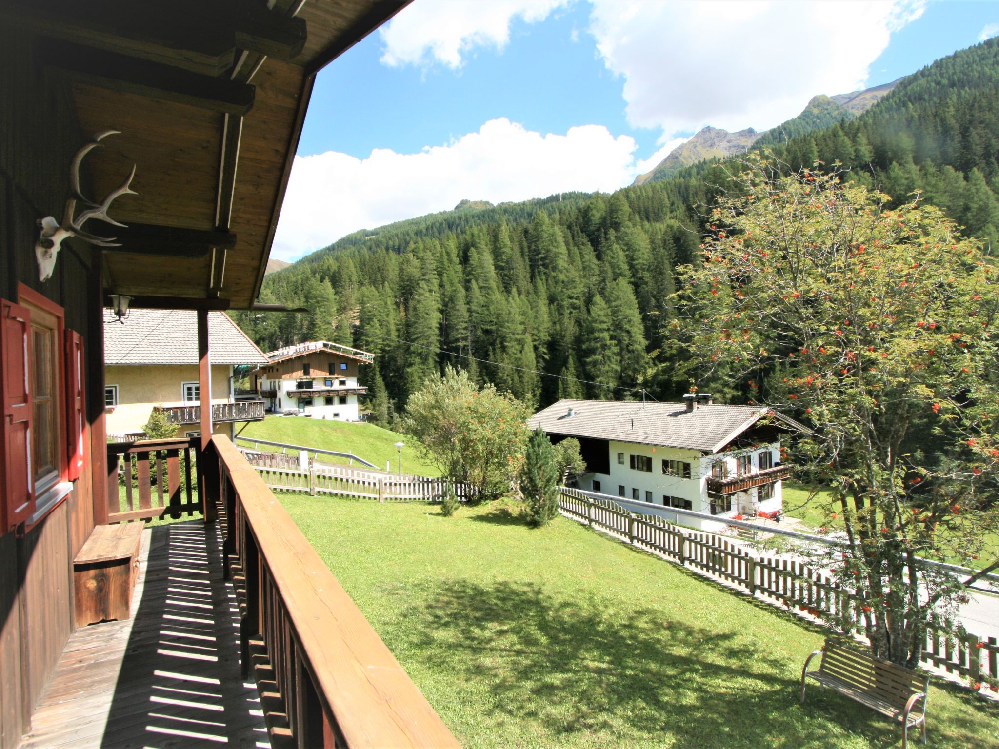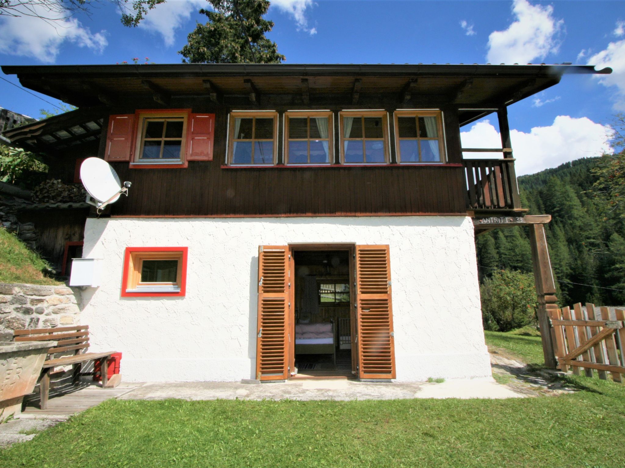 Schmirntal 5 km von St.Jodok: Rustikales Chalet "Antritt", 1'400 m.ü.M.. Ruhige, sonnige Lage am Hang, Richtung Süden. Zur Alleinbenutzung: Garten 270 m2 (eingezäunt), Liegewiese. Sitzplatz, Gartenmöbel, Parkplatz. Lebensmittelgeschäft 800 m, Restaurant 2 km, Bushaltestelle 50 m. Golfplatz 25 km, Wanderwege ab Haus 10 m. Nahe gelegene Sehenswürdigkeiten: Sterzing/Italien 25 km, Innsbruck 30 km. Bekannte Skigebiete sind gut erreichbar: Bergeralm 11 km, Schlick 2000 30 km. Bekannte Seen in der Umgebung sind gut erreichbar: Stubay Freizeitzentrum 29 km.