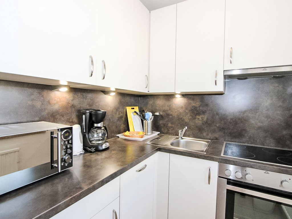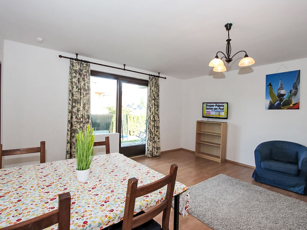 2-Zimmer-Wohnung 55 m2, im Erdgeschoss. Renoviert im Jahre 2016, gemütlich eingerichtet: Eingang. Grosses Wohn-/Esszimmer mit 1 Doppeldiwanbett, Esstisch und Kabel-TV (Flachbildschirm). Ausgang zum Garten, zur Terrasse. 1 Zimmer mit 1 x 2 Etagenbetten, 1 Doppelbett. Ausgang zur Terrasse. Kochnische (Backofen, Geschirrspüler, 4 Glaskeramikherd Platten, Mikrowelle). Bad/WC. Terrassenmöbel. Zur Verfügung: Babybett, Haartrockner. Internet (Wireless LAN, gratis). Bitte beachten: Nichtraucher-Unterkunft. Maximal 1 Haustier/Hund erlaubt. Die Terrasse ist zur Mitbenutzung.