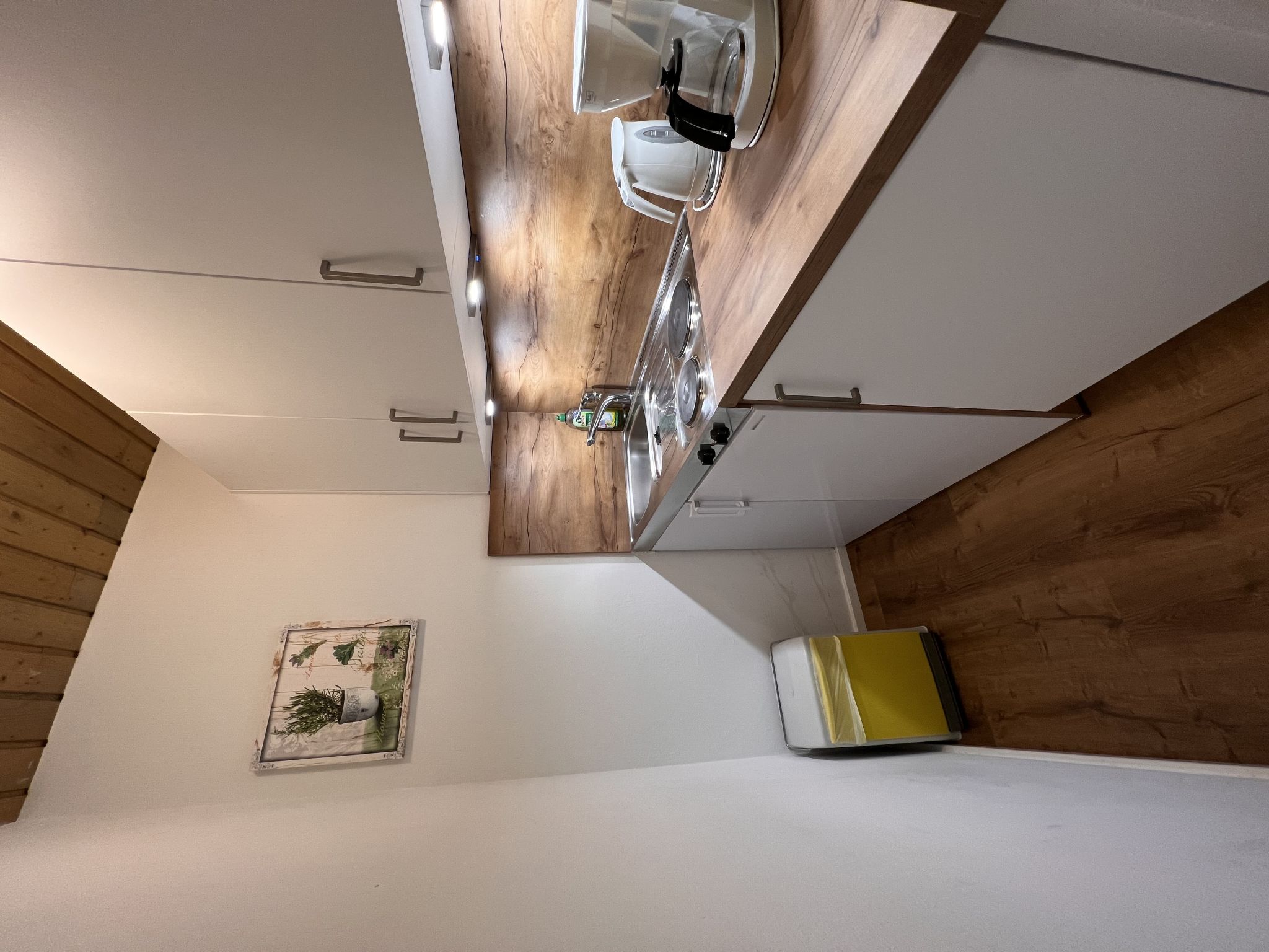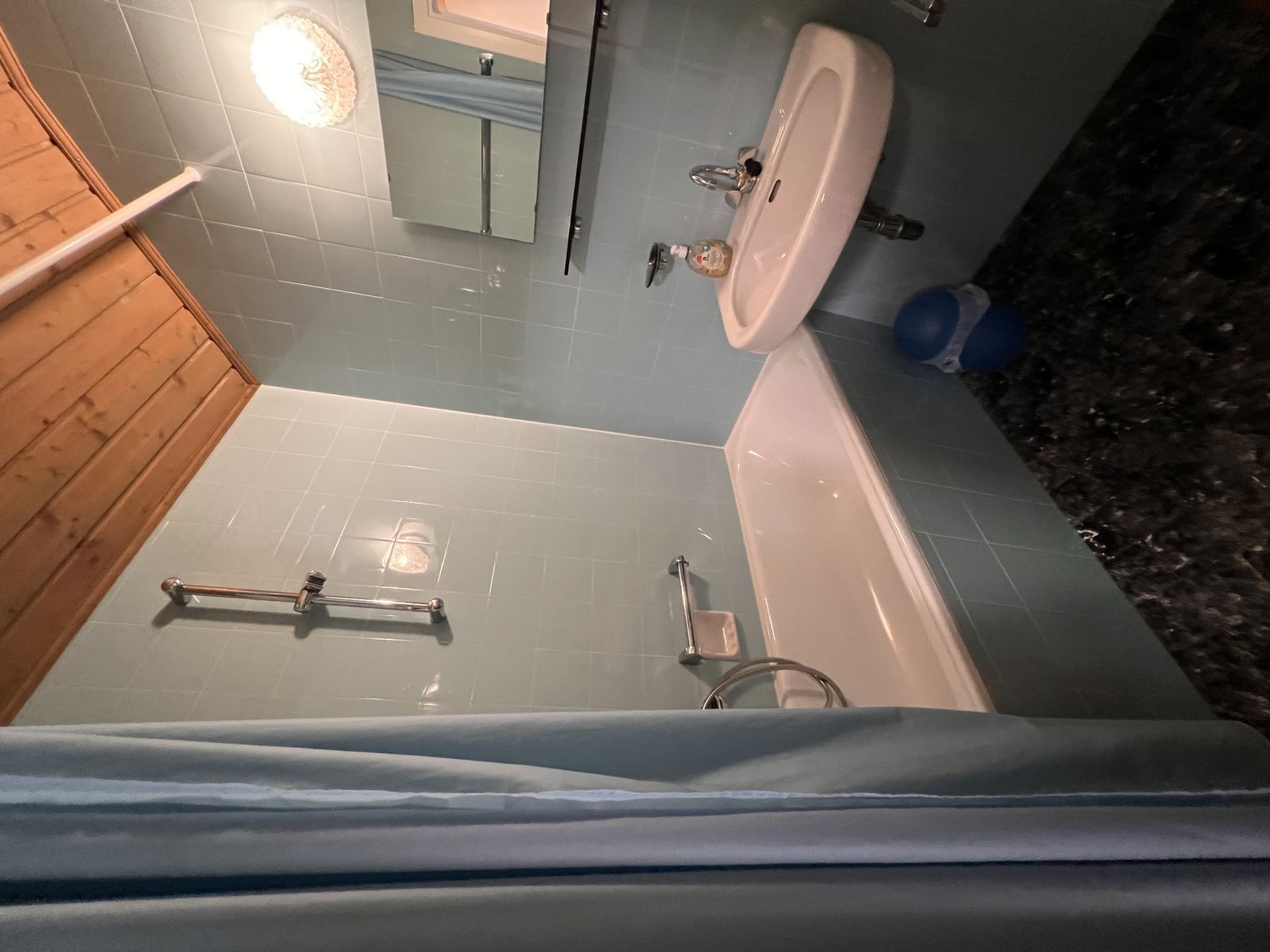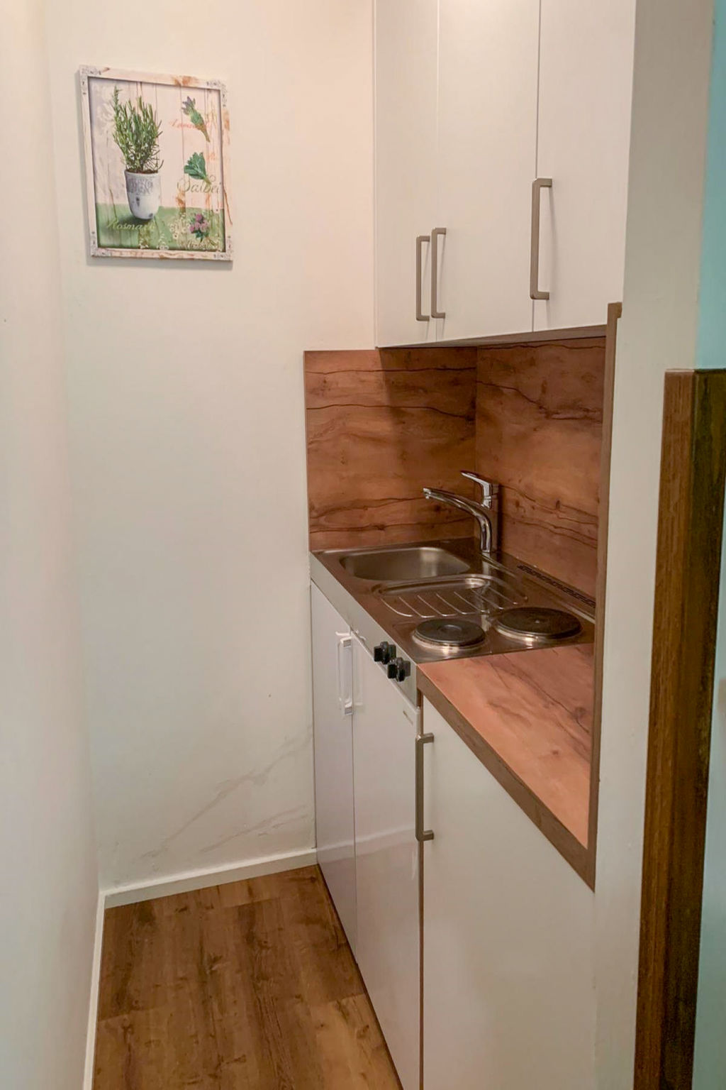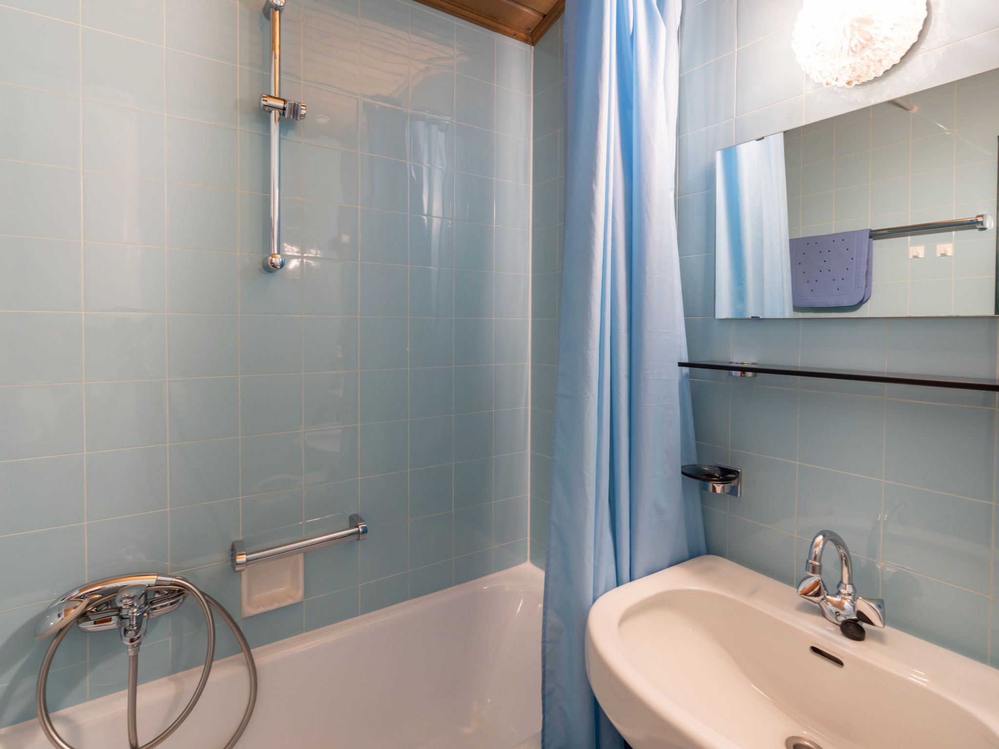 "Top 49A", 1-Zimmer-Wohnung 27 m2 im 4. Stock. Wohn-/Esszimmer mit 1 Diwanbett und Sat-TV. Abgeschrägte Schlafnische 11 m2, ohne Fenster mit 1 franz. Bett (140 cm). Kochnische (2 Kochplatten) mit Bar. Bad/WC. E-Heizung.