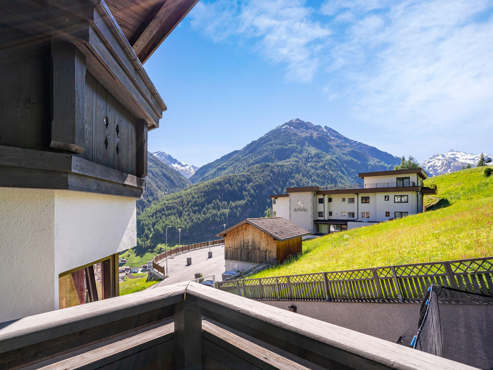 Haus NADINE steht in sonniger Panoramalage oberhalb von Sölden, im Ortsteil Innerwald. Gasthöfe und Café im Umkreis von ca. 100-300 m. Ortsmitte Sölden 2,5 km. Schrägaufzug Innerwald - Ortsmitte ca. 300 m. Supermarkt 1 km, weitere Geschäfte 2,5 km. Freizeit Arena mit Hallenbad 2,7 km. Zur Talstation der Gaislachkoglbahn 1,5 km. Parkmöglichkeit beim Haus, öffentlicher Parkplatz ca. 150 m. Im Haus kleine Sauna (nach Absprache nutzbar, € 6 pro Person, Mindestberechnung 3 Personen). Brötchenservice. Die Wohnungen SOE 401/405-408 haben Balkon. Die Wohnungen im Dachgeschoss (SOE 406-408) haben große Panoramafenster und rustikale Balkendecken. Die Wohnung SOE 409 liegt in einem Anbau. Jeweils angenehme, freundliche Einrichtung, Teppich- und Laminatböden, Sat-TV und Internetzugang (WLAN, € 10 pro Aufenthalt). Jeweils mit Öl-Zentralheizung, SOE 407 zusätzlich mit elektrisch beheiztem Kachelofen. Hinweis: Der Vermieter erlaubt im Zeitraum Anfang Mai bis Ende Oktober die Mitnahme eines Haustiers. In den übrigen Saisonzeiten ist die Mitnahme eines Haustiers nicht erlaubt. Winter-Infos: Die beschneite Skiabfahrt vom Gaislachkogl führt am Haus vorbei. Zur Talstation der Gaislachkoglbahn 1,5 km, zur Doppelsesselbahn, die zur Mittelstation der Gaislachkoglbahn führt, ca. 150 m. Kleiner Schlepplift und Übungshänge ca. 200 m. Skiraum mit Schuhtrockner.