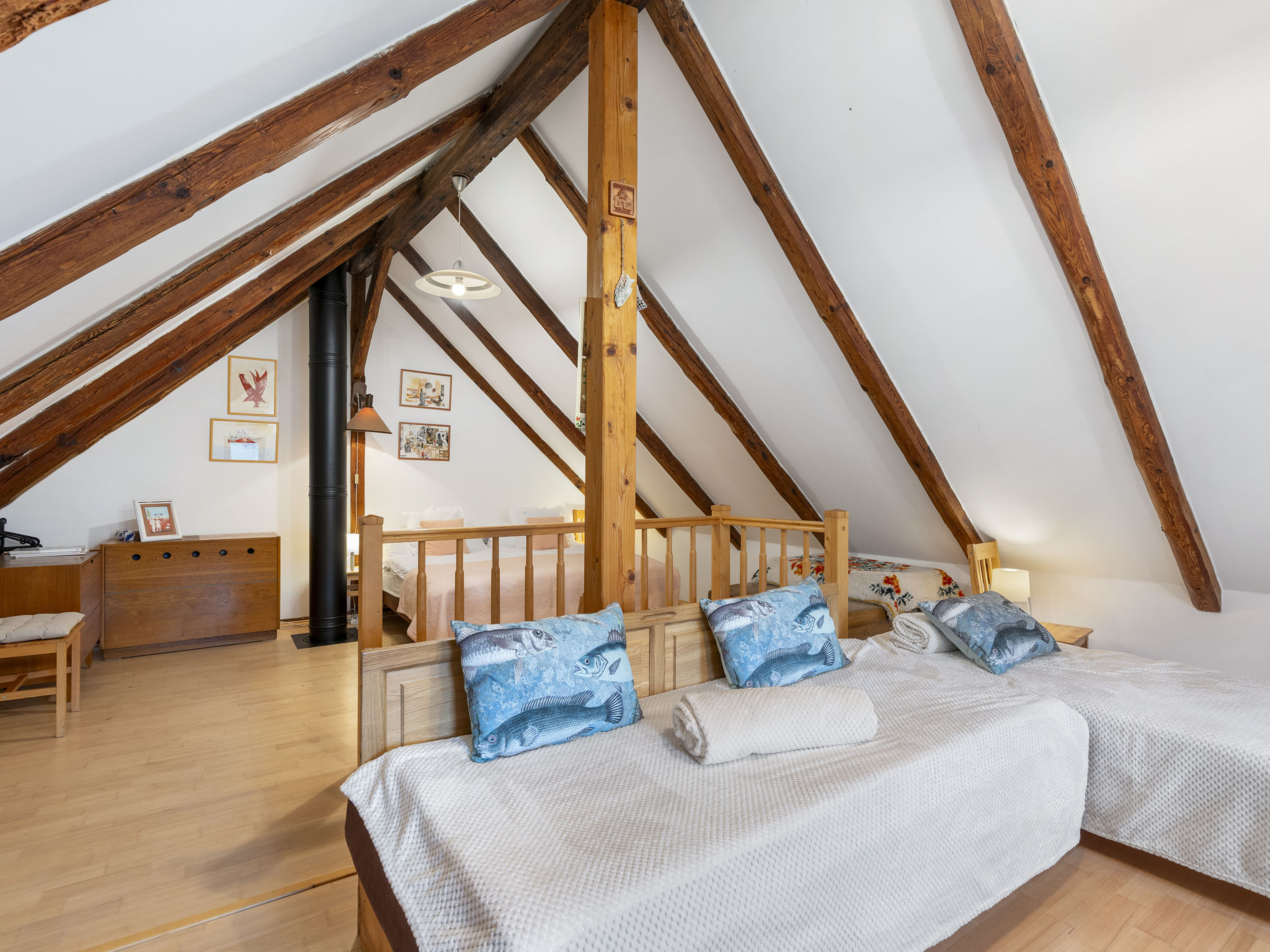 Schönes, gemütliches Haus "Parkany 2", auf 2 Stockwerken, renoviert im Jahre 2004. Am Ortsrand, 300 m vom Zentrum von Bechyně, ruhige, sonnige Lage, 50 m vom Fluss, in einer Sackgasse, im Grünen. Zur Alleinbenutzung: Terrasse (20 m2), Gartenmöbel, Grill. Zufahrt bis zum Haus. Öffentliche Parkplätze 50 m auf der Strasse. Einkaufsgeschäft, Lebensmittelgeschäft 500 m, Restaurant 50 m, Bushaltestelle 1 km, Bahnstation 900 m, Freibad 950 m, Badebucht 50 m. Golfplatz 6 km, Tennis 950 m, Reitstall 6 km. Bitte beachten: Angeln (mit Bewilligung).