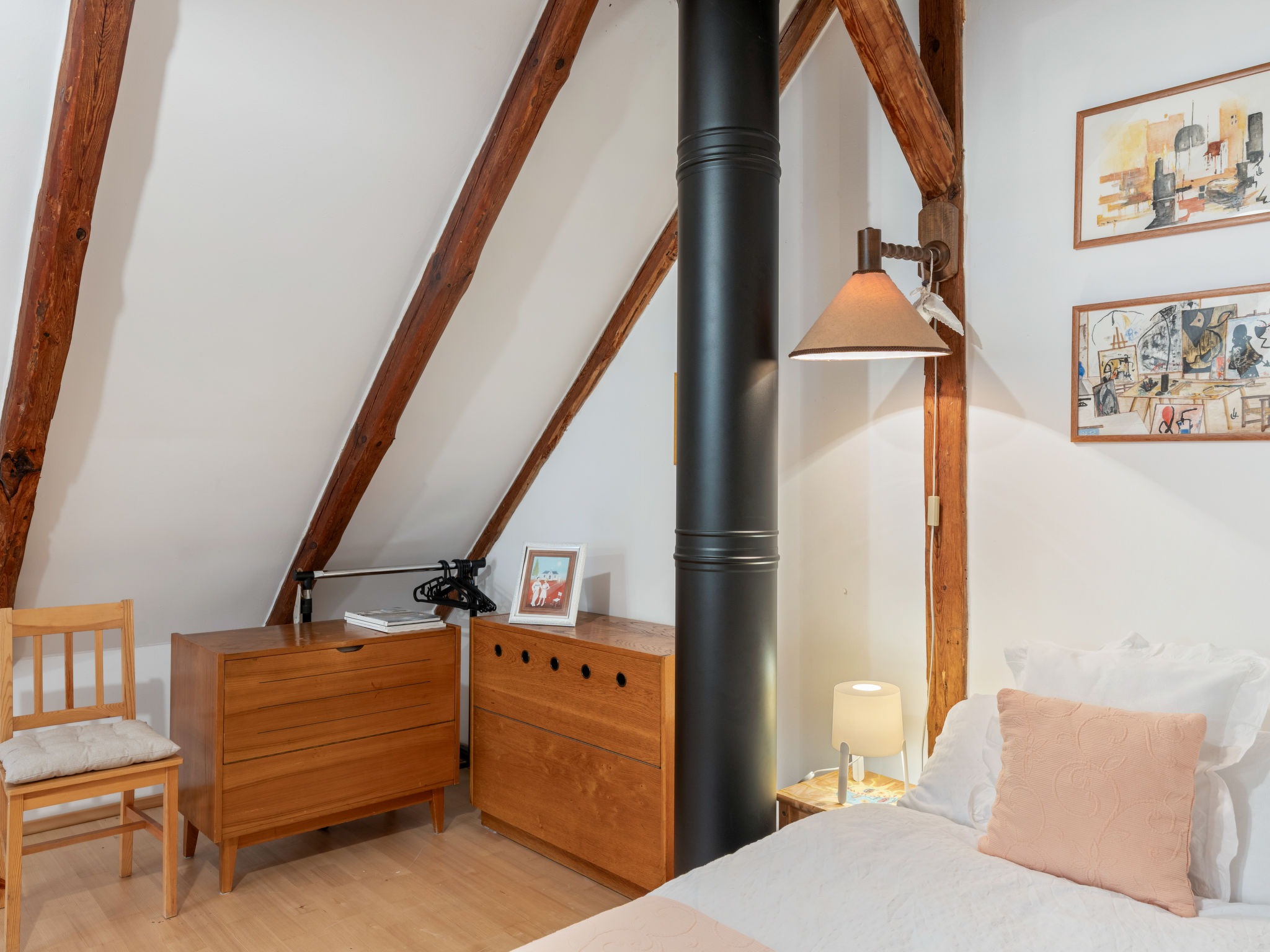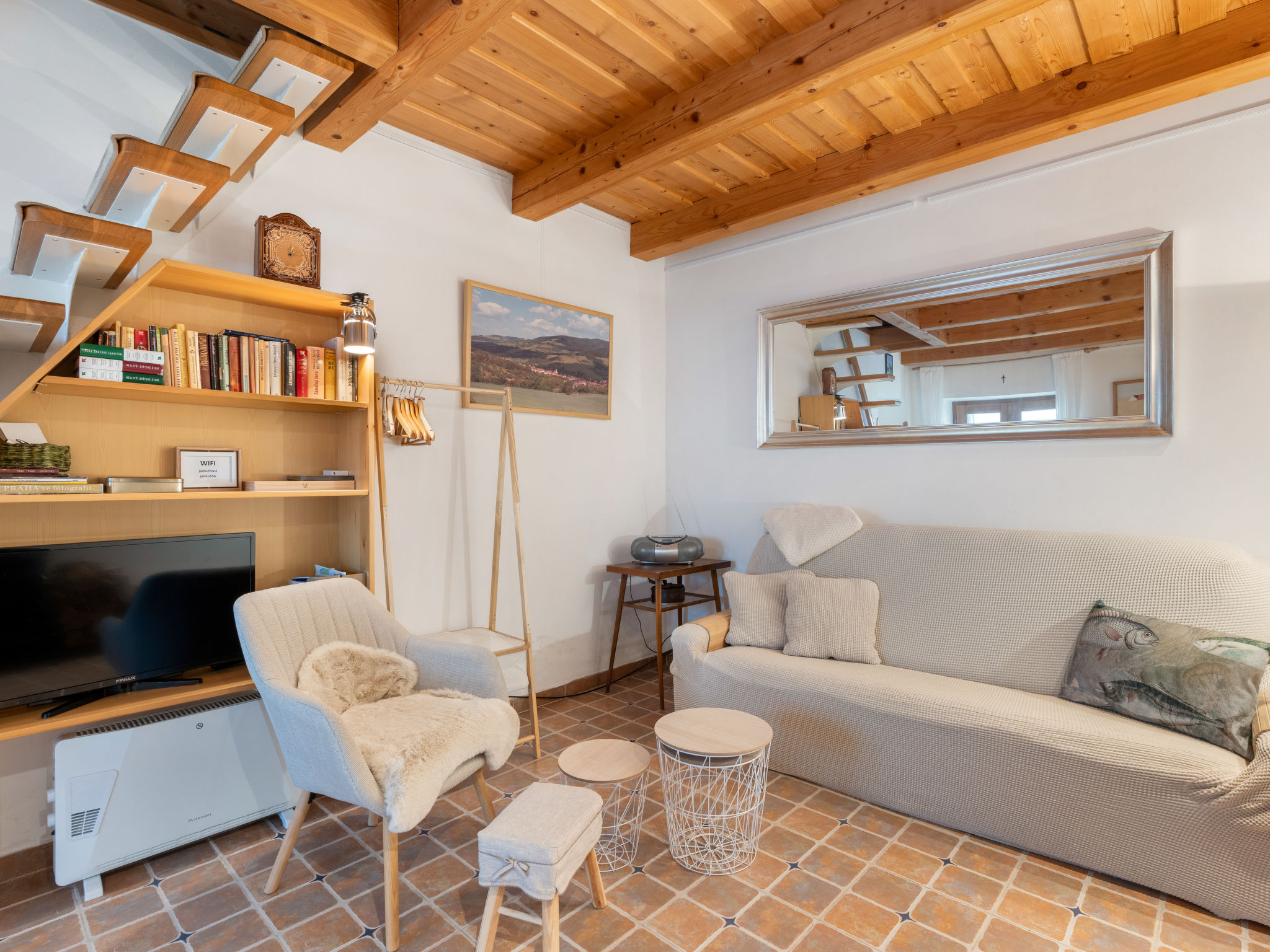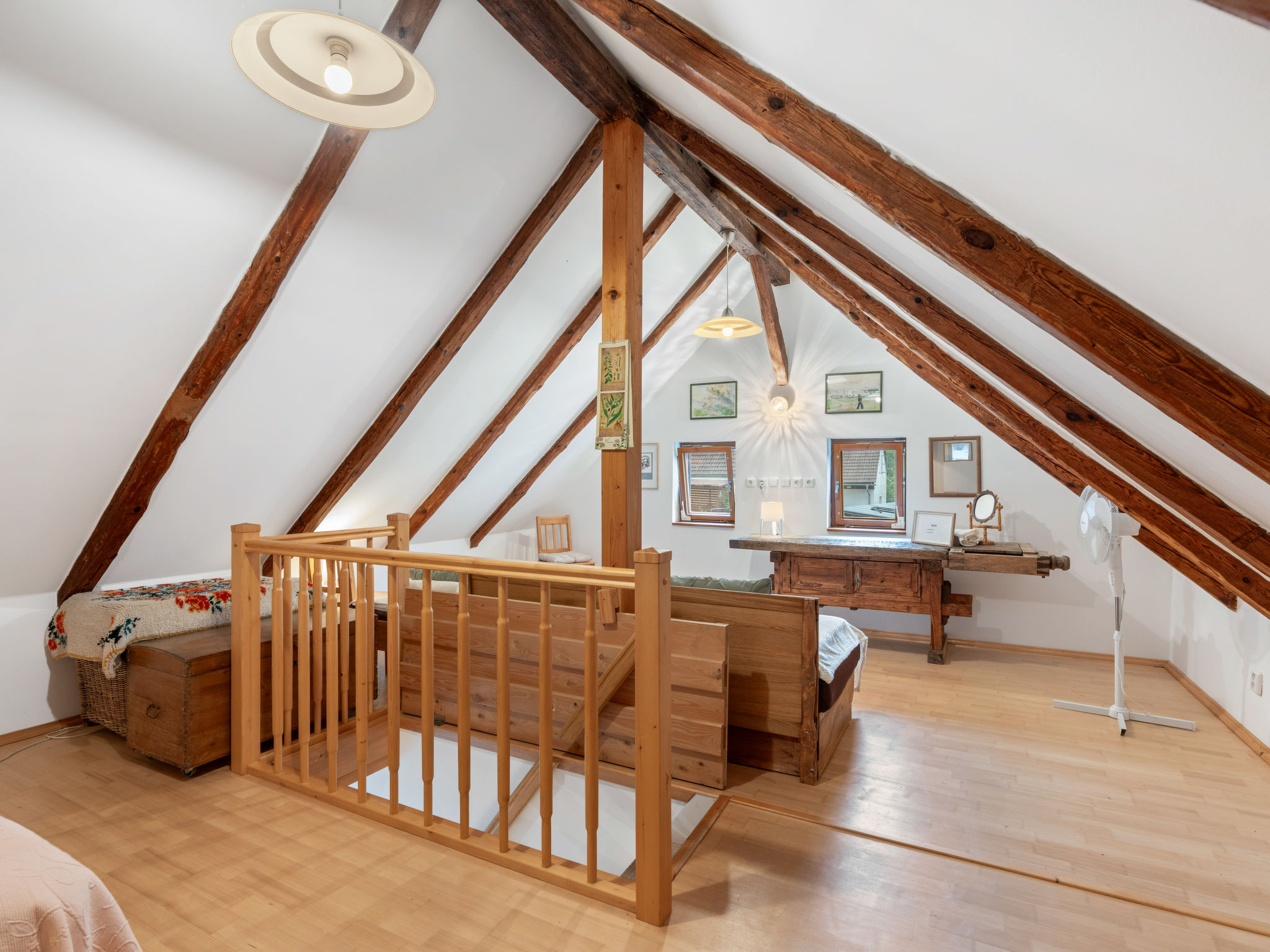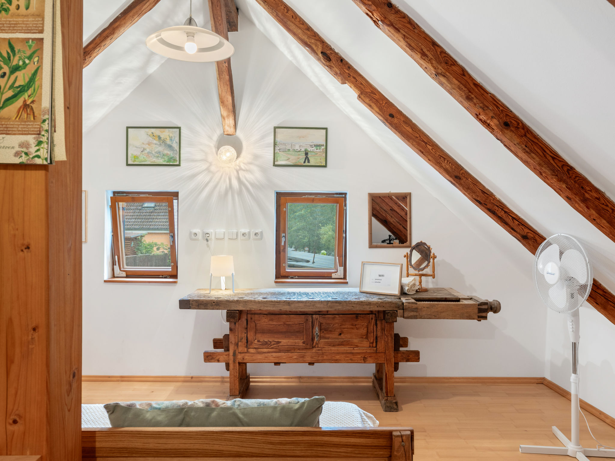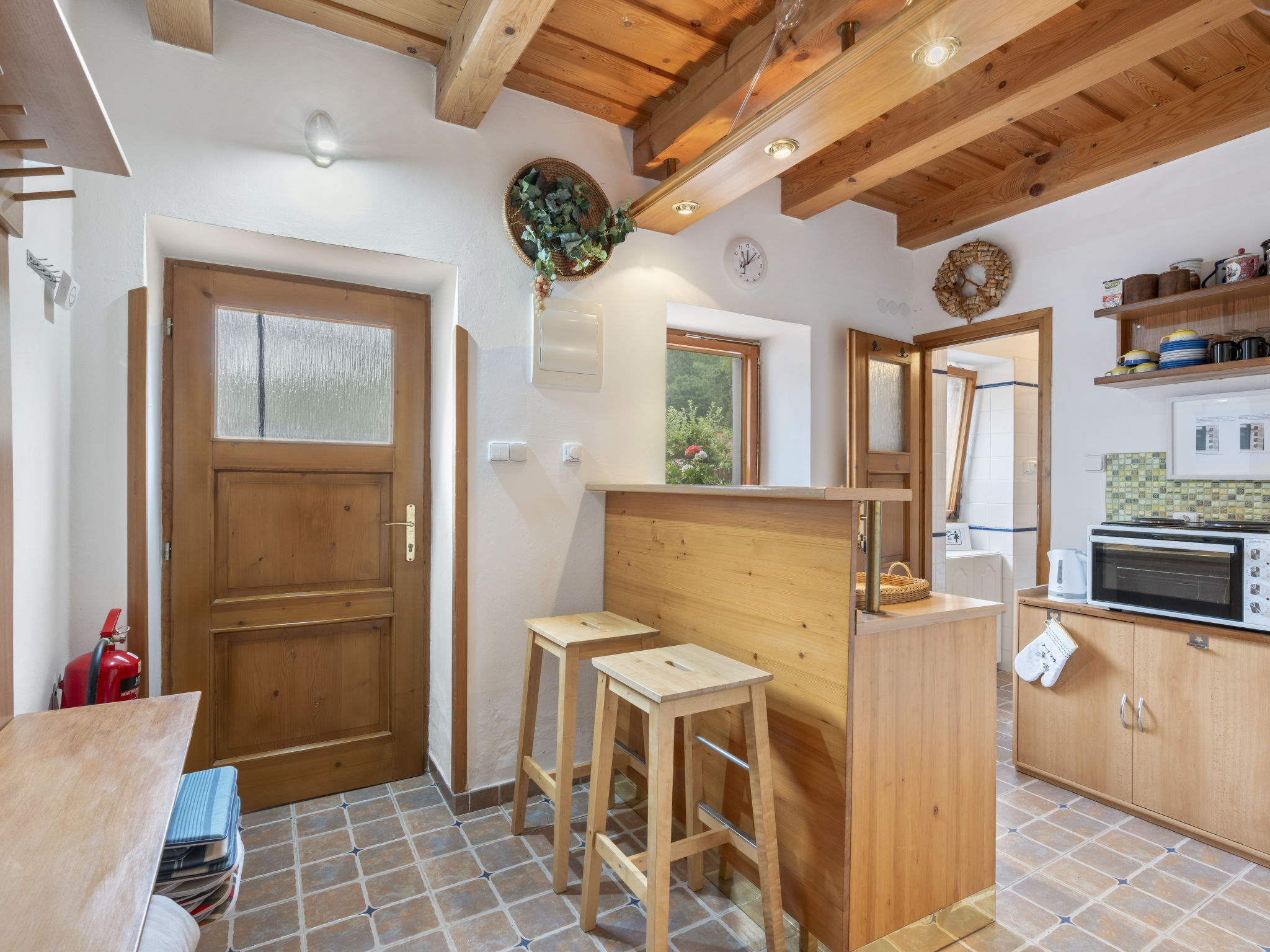 2-Zimmer-Haus 60 m2 auf 2 Stockwerken. Teilweise abgeschrägt, sehr schön und gemütlich eingerichtet: Wohn-/Esszimmer mit 1 Doppeldiwanbett, Sat-TV und Radio. Kleine Küche (2 Kochplatten, Backofen, Mikrowelle). Dusche/WC. Bodenheizung, Boiler (60 Liter). Obergeschoss: abgeschrägt 1 Zimmer mit 2 Betten und 1 franz. Bett. Terrasse. Zur Verfügung: Internet (Wireless LAN, gratis). Bitte beachten: Nichtraucher-Unterkunft.