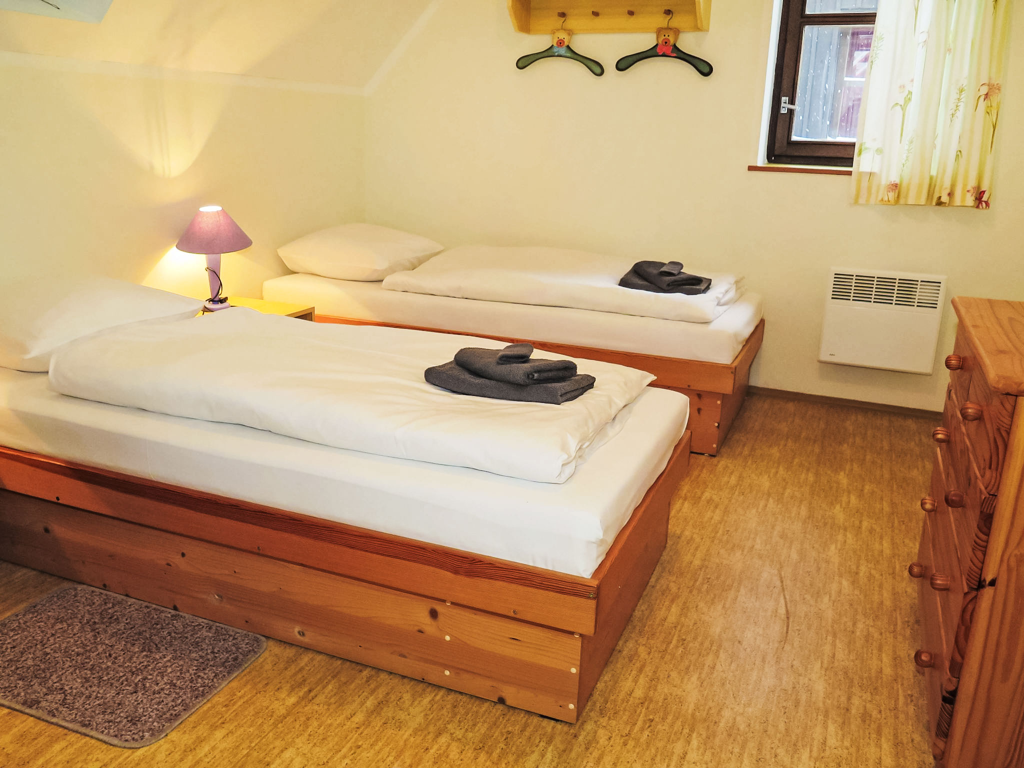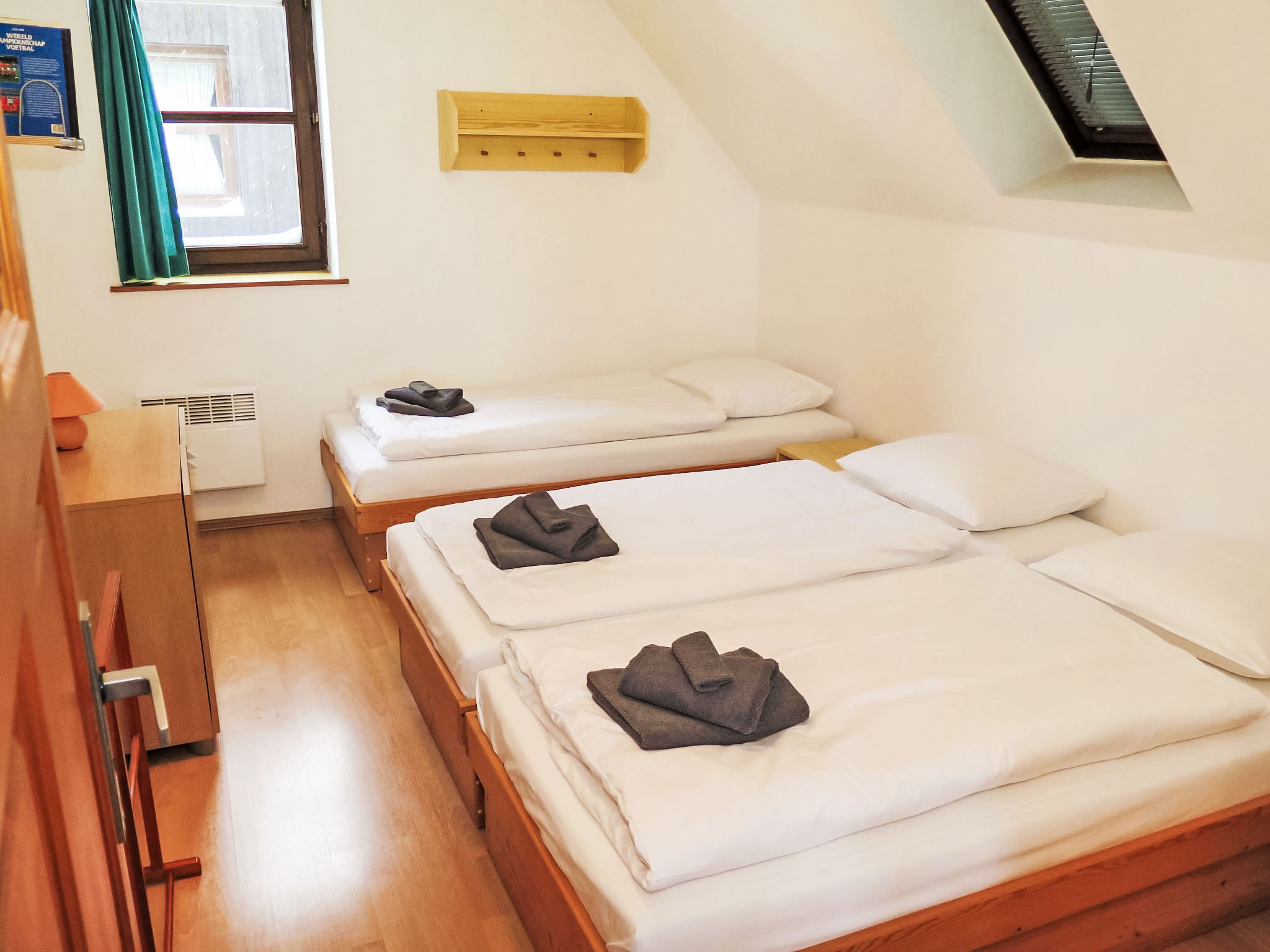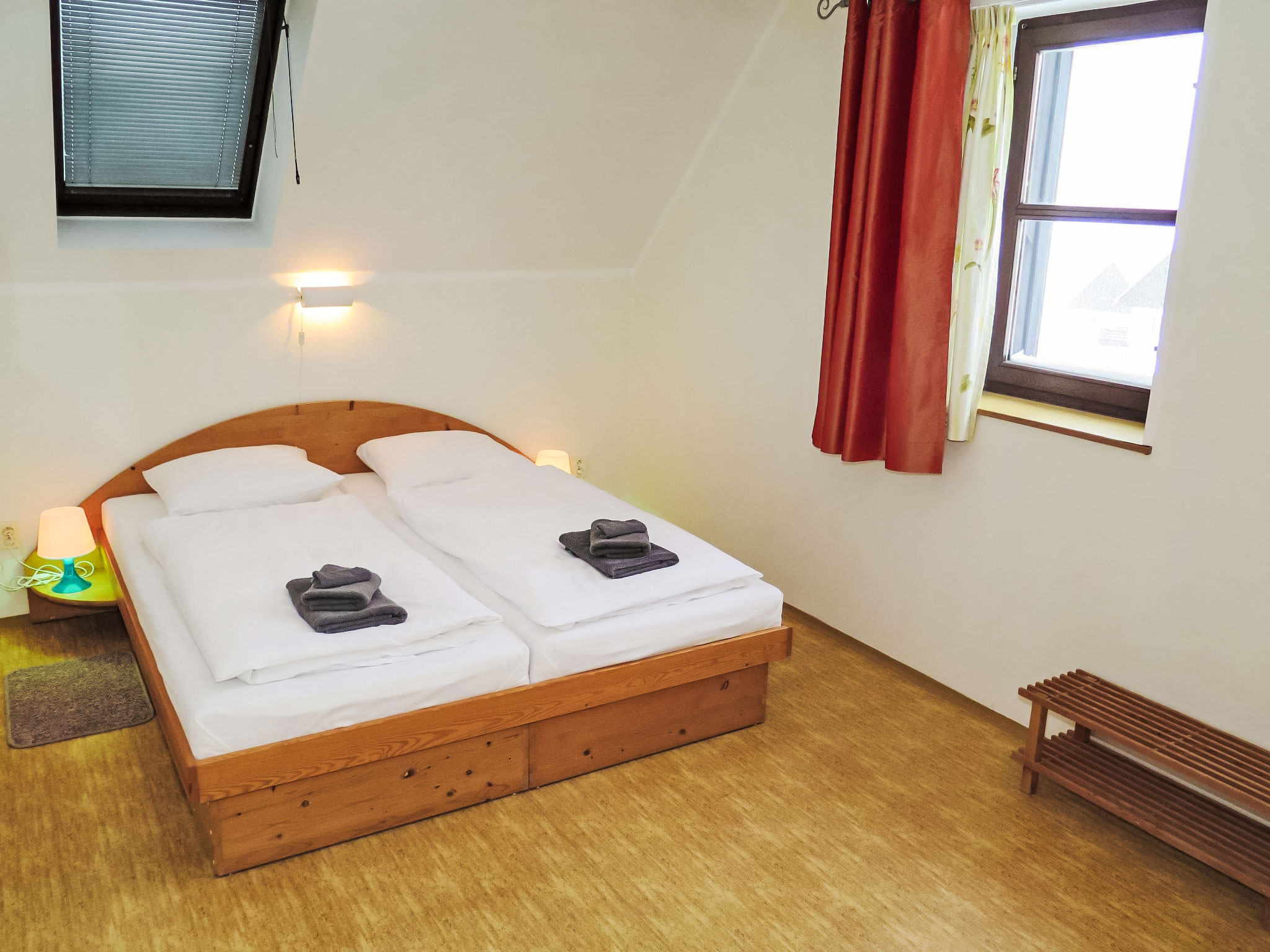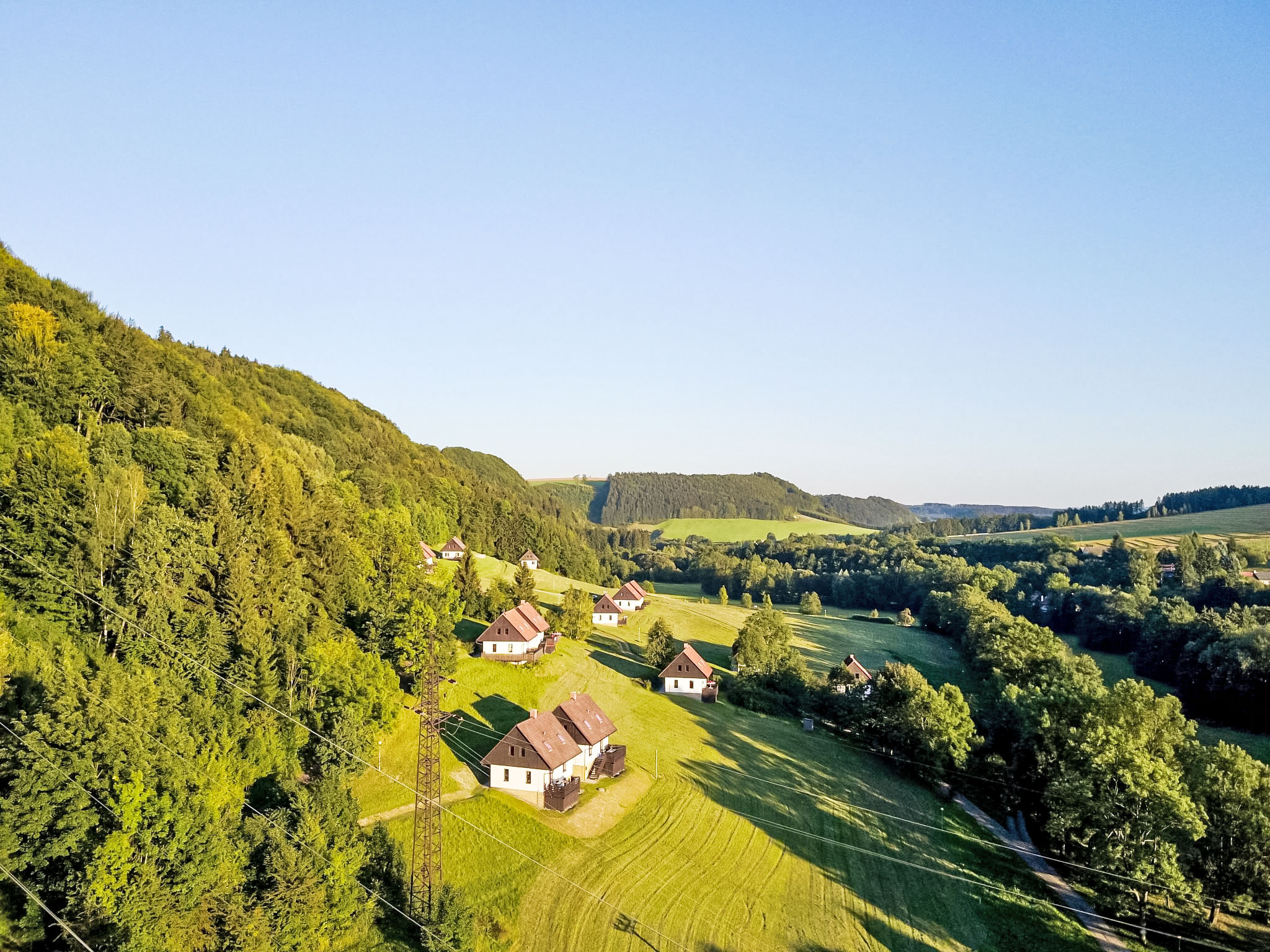 Stárkov 18 km von Náchod: Ferienanlage "Stárkov", 450 m.ü.M., Baujahr 1997, umgeben von Wiesen. 22 Häuser im Ferienresort. Am Ortsrand, sonnige, erhöhte Lage am Hang, direkt am Waldrand, 24 km vom See, 10 km vom Skigebiet, im Grünen. Zur Mitbenutzung: Grundstück 10 ha, Wiese, Teich, Schwimmbad (8 x 4 m, 150 cm tief, saisonale Verfügbarkeit: 15.Jun.-16.Sep.). Tischtennis, Volleyball, Badminton, Volleyballfeld, Beachvolleyball, Sitzplatz, Grill, Feuerstelle, Kinderspielplatz (Rutschbahn, Schaukel, Sandkasten). In der Anlage: Empfang, Aufenthaltsraum, Bistro, Massage (extra). Billard, Spielzimmer, Tischfussball, Trampolin, Kiosk, Einstellraum für Fahrräder, Wäscherei (extra), Fahrradverleih. Wäschewechsel (zusätzlich extra). Handtuchwechsel (zusätzlich extra). Wohnungsreinigung möglich (extra). Brötchenservice möglich auf Anfrage. Einkaufsservice vor Anreise möglich. Zufahrt bis 200 m zum Haus. Zentralparkplätze. Lebensmittelgeschäft 1 km, Supermarkt 8 km, Restaurant 1 km, Café 10 m, Bushaltestelle "Stárkov, mlékárna" 50 m, Bahnstation "Hronov" 8 km, Hallenbad 18 km. Golfplatz (9 Loch) 26 km, Segelschule 26 km, Tennis 500 m, Minigolf, Reitstall, Wanderwege ab Haus, Radweg 10 m, Skilift 6 km, Skischule 17 km, Langlaufloipe 100 m, Eisfeld 8 km, Kinderspielplatz 10 m. Nahe gelegene Sehenswürdigkeiten: Adršpašsko-teplické skály 15 km, Náchod 17 km, Broumovské stěny 17 km, Ratibořice a Babiččino údolí 22 km, Broumov 24 km, Relaxpark Pec pod Sněžkou 50 km. Bekannte Skigebiete sind gut erreichbar: Radvanice 10 km, Petříkovice 17 km, Mladé Buky 36 km. Bekannte Seen in der Umgebung sind gut erreichbar: vodní nádrž Rozkoš 26 km. Bitte beachten: geeignet für Familien, Babyausstattung auf Anfrage (inkl.). Be- und Entladen am Ferienhaus möglich. Das Foto ist nur ein Hausbeispiel. Alle Häuser/Wohnungen sind individuell eingerichtet.