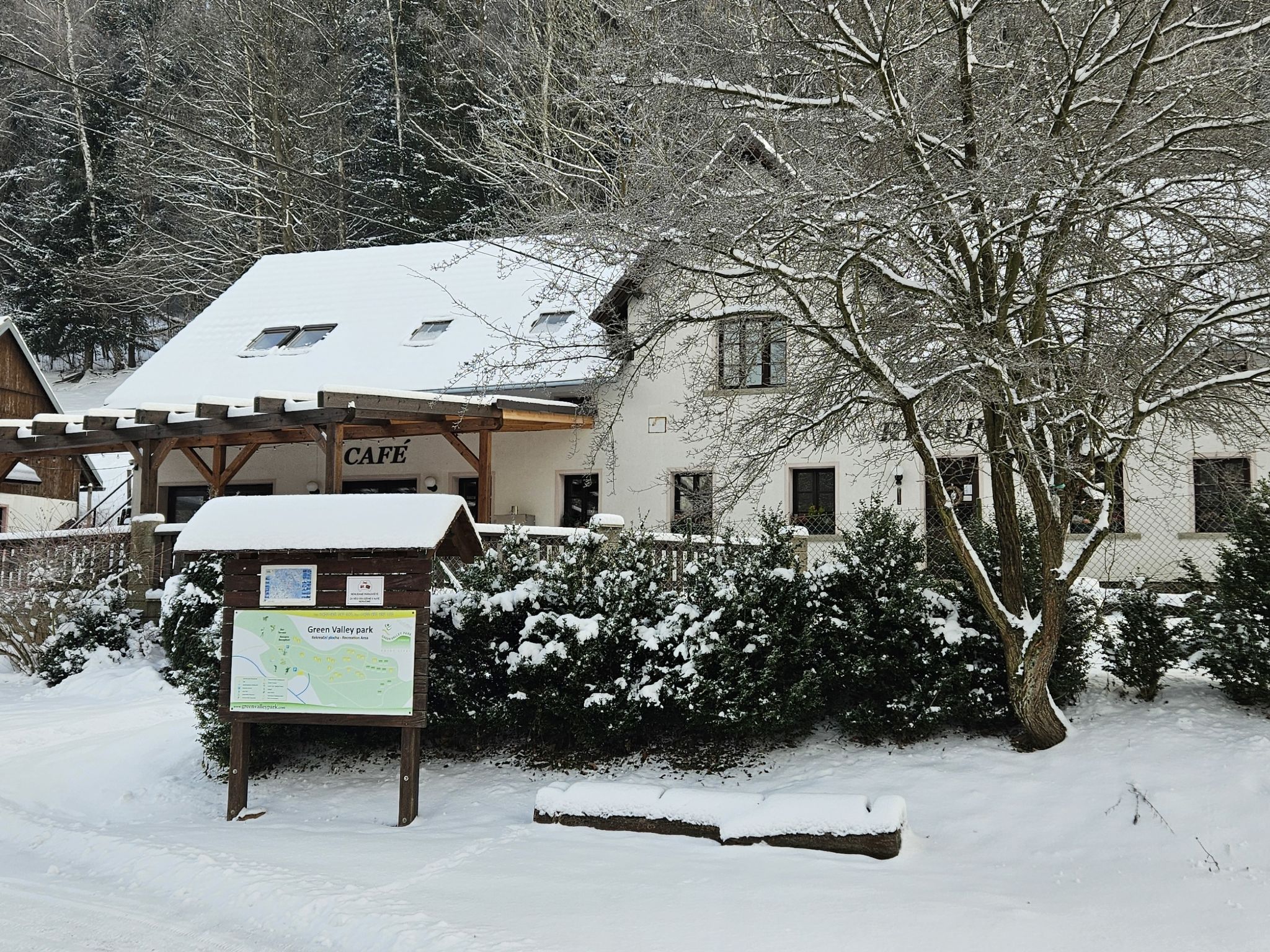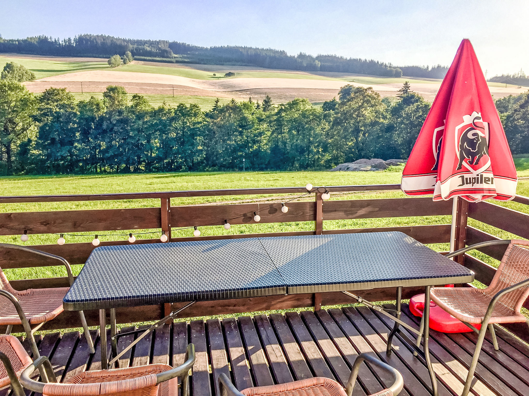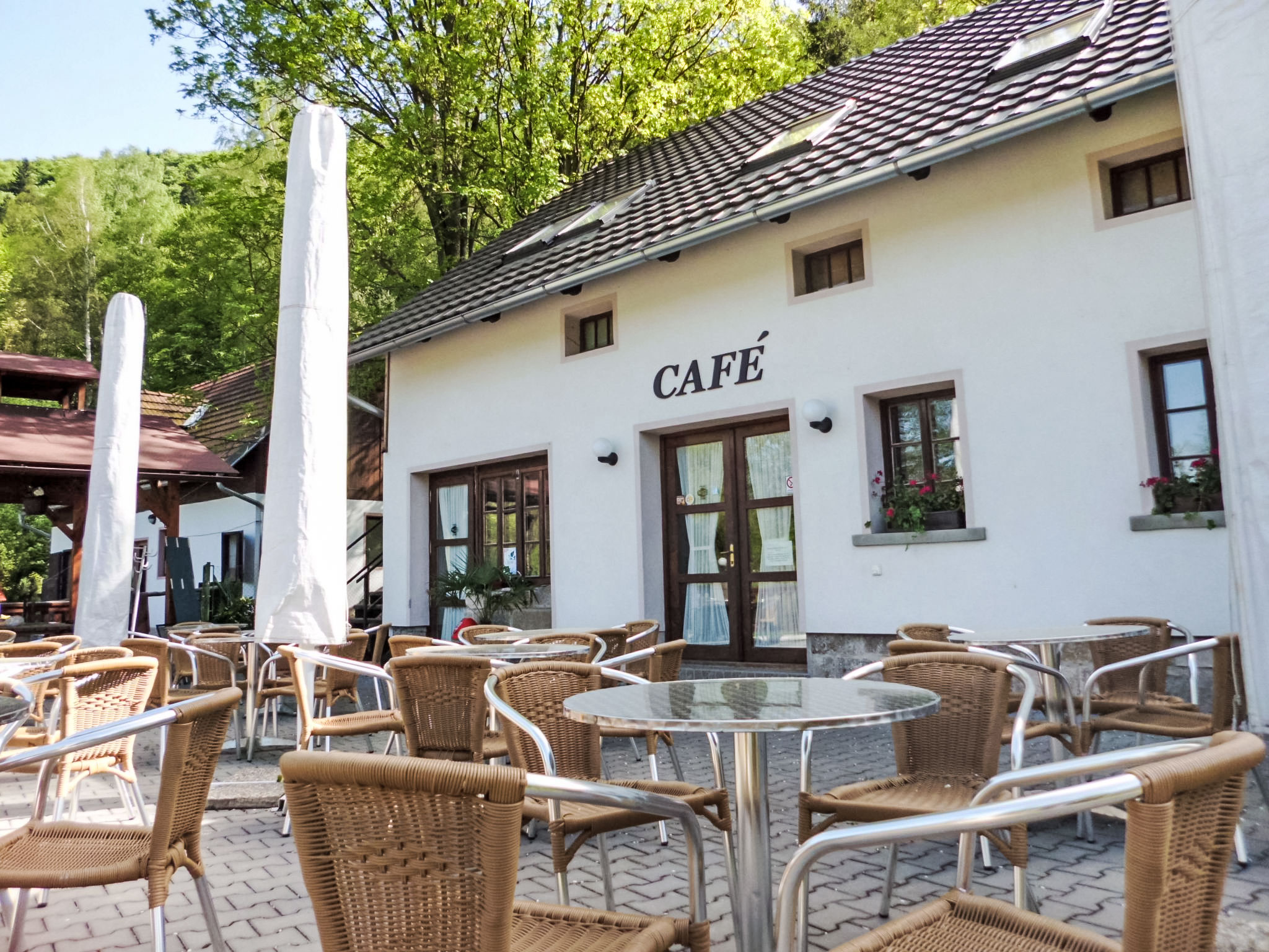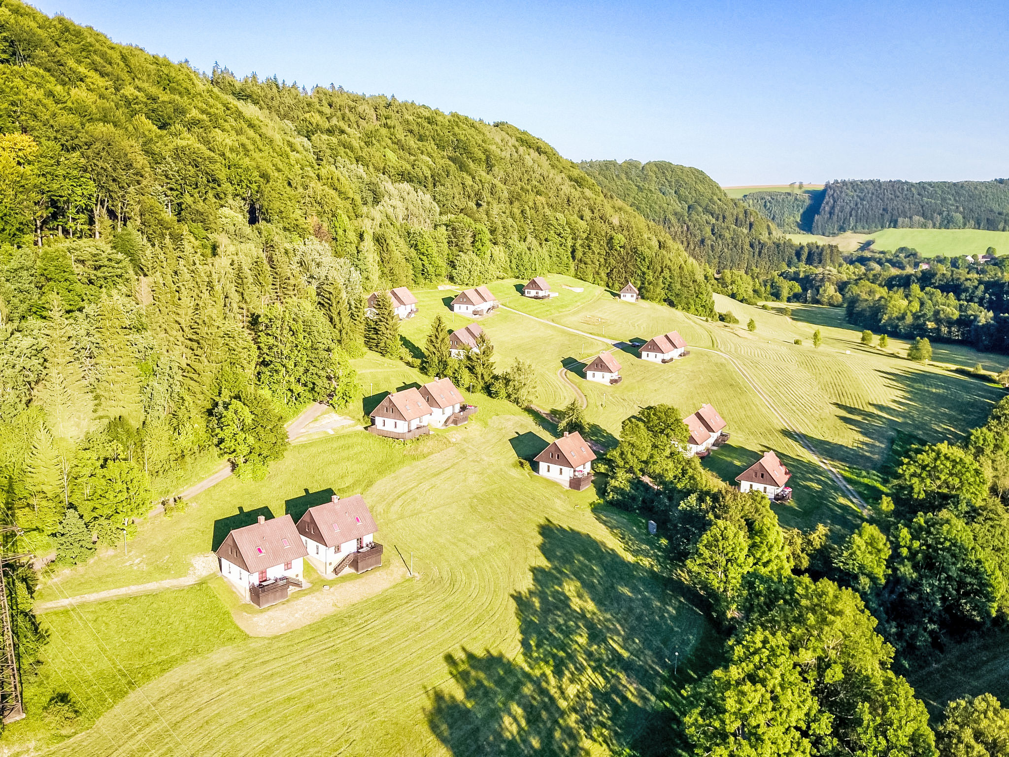 Stárkov 18 km von Náchod: Ferienanlage "Stárkov", 450 m.ü.M., Baujahr 1997, umgeben von Wiesen. 22 Häuser im Ferienresort. Am Ortsrand, sonnige, erhöhte Lage am Hang, direkt am Waldrand, 24 km vom See, 10 km vom Skigebiet, im Grünen. Zur Mitbenutzung: Grundstück 10 ha, Wiese, Teich, Schwimmbad (8 x 4 m, 150 cm tief, saisonale Verfügbarkeit: 15.Jun.-16.Sep.). Tischtennis, Volleyball, Badminton, Volleyballfeld, Beachvolleyball, Sitzplatz, Grill, Feuerstelle, Kinderspielplatz (Rutschbahn, Schaukel, Sandkasten). In der Anlage: Empfang, Aufenthaltsraum, Bistro, Massage (extra). Billard, Spielzimmer, Tischfussball, Trampolin, Kiosk, Einstellraum für Fahrräder, Wäscherei (extra), Fahrradverleih. Wäschewechsel (zusätzlich extra). Handtuchwechsel (zusätzlich extra). Wohnungsreinigung möglich (extra). Brötchenservice möglich auf Anfrage. Einkaufsservice vor Anreise möglich. Zufahrt bis 200 m zum Haus. Zentralparkplätze. Lebensmittelgeschäft 1 km, Supermarkt 8 km, Restaurant 1 km, Café 10 m, Bushaltestelle "Stárkov, mlékárna" 50 m, Bahnstation "Hronov" 8 km, Hallenbad 18 km. Golfplatz (9 Loch) 26 km, Segelschule 26 km, Tennis 500 m, Minigolf, Reitstall, Wanderwege ab Haus, Radweg 10 m, Skilift 6 km, Skischule 17 km, Langlaufloipe 100 m, Eisfeld 8 km, Kinderspielplatz 10 m. Nahe gelegene Sehenswürdigkeiten: Adršpašsko-teplické skály 15 km, Náchod 17 km, Broumovské stěny 17 km, Ratibořice a Babiččino údolí 22 km, Broumov 24 km, Relaxpark Pec pod Sněžkou 50 km. Bekannte Skigebiete sind gut erreichbar: Radvanice 10 km, Petříkovice 17 km, Mladé Buky 36 km. Bekannte Seen in der Umgebung sind gut erreichbar: vodní nádrž Rozkoš 26 km. Bitte beachten: geeignet für Familien, Babyausstattung auf Anfrage (inkl.). Be- und Entladen am Ferienhaus möglich. Das Foto ist nur ein Hausbeispiel. Alle Häuser/Wohnungen sind individuell eingerichtet.