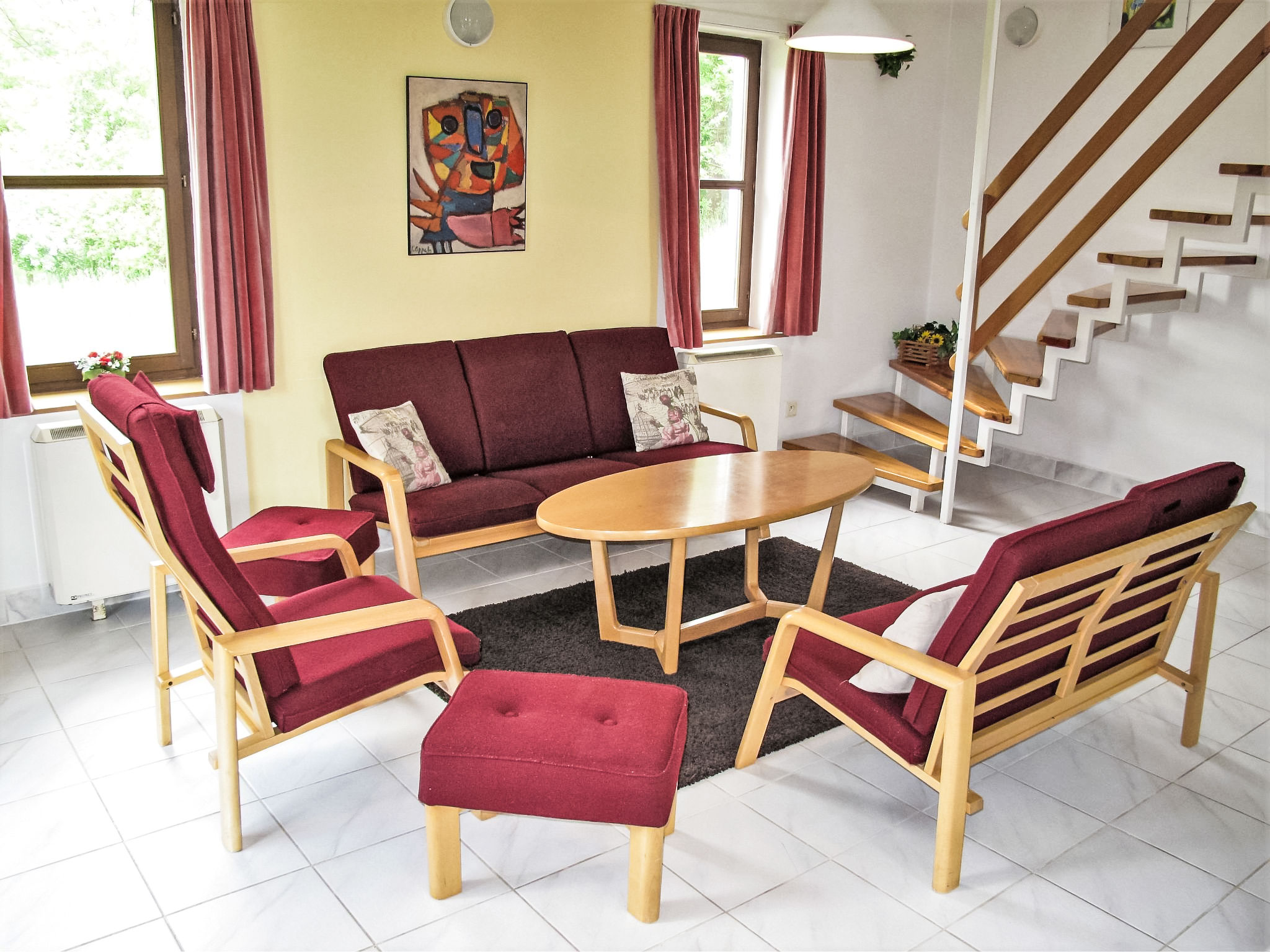 4-Zimmer-Haus 100 m2 auf 2 Stockwerken. Hell, gemütlich eingerichtet: Wohnzimmer mit Sat-TV und Flachbildschirm. Ausgang zur Terrasse. Offene Küche (4 Kochplatten, Toaster, Wasserkocher, Mikrowelle, Tiefkühler, elektrische Kaffeemaschine) mit Esstisch. Sep. WC, Bad oder Dusche/WC. E-Heizung. Obergeschoss: 1 Zimmer mit 3 Betten. 1 Zimmer mit 3 Betten. 1 Zimmer mit 1 Doppelbett. Terrasse 11 m2. Terrassenmöbel. Schöne Panoramasicht auf das Tal und die Landschaft. Zur Verfügung: Bügeleisen, Kinderhochstuhl, Babybett (extra). Internet (Wireless LAN, extra). Bitte beachten: geeignet für Familien. Nichtraucher-Haus. 2 Haustiere/Hunde erlaubt.