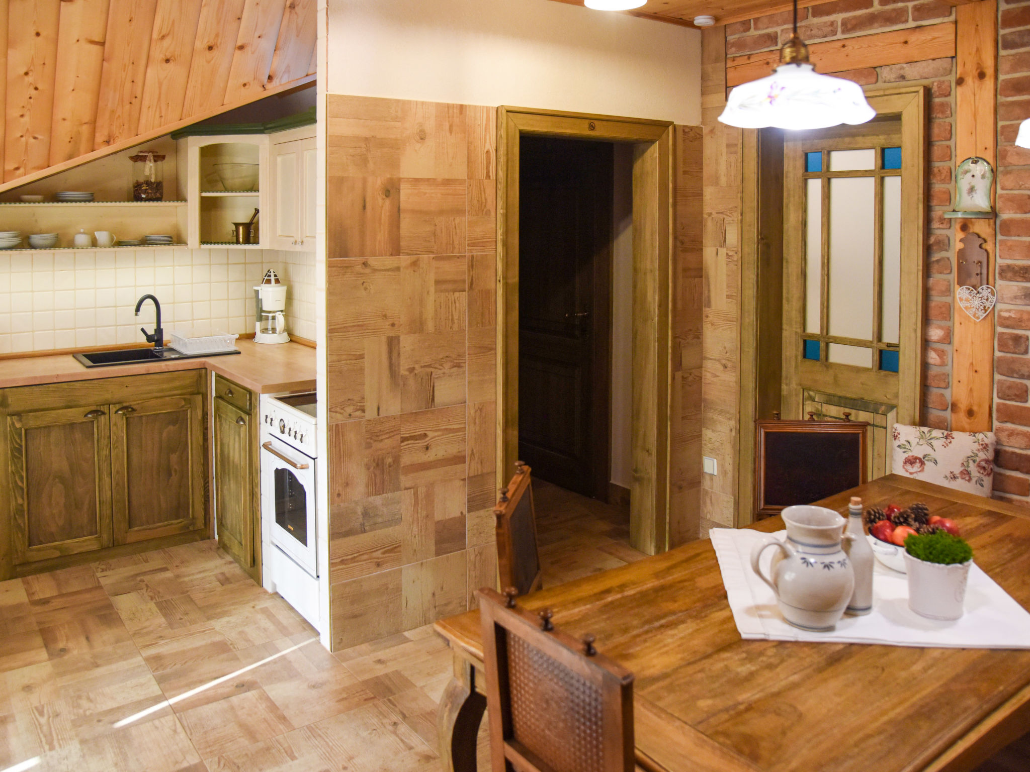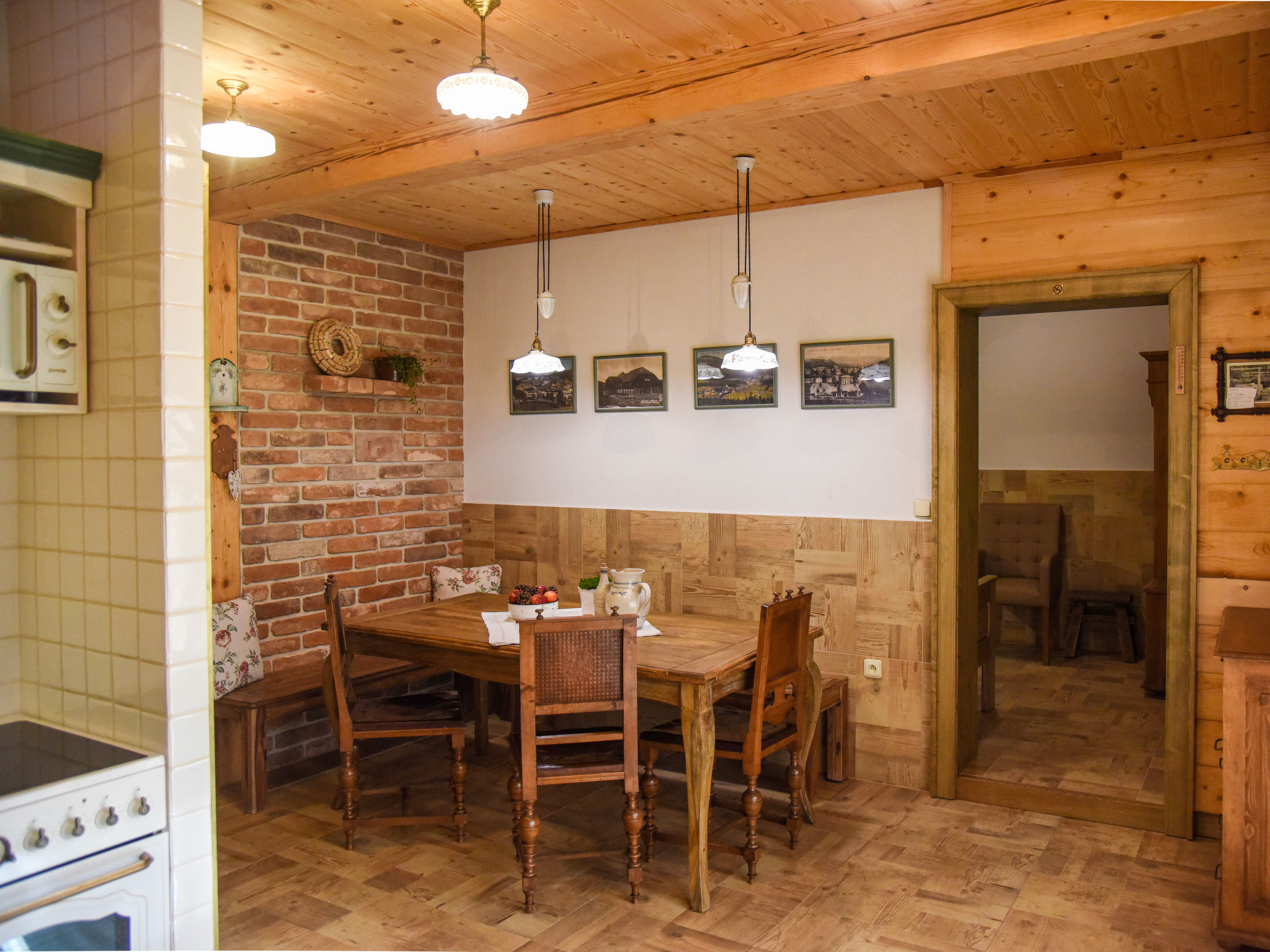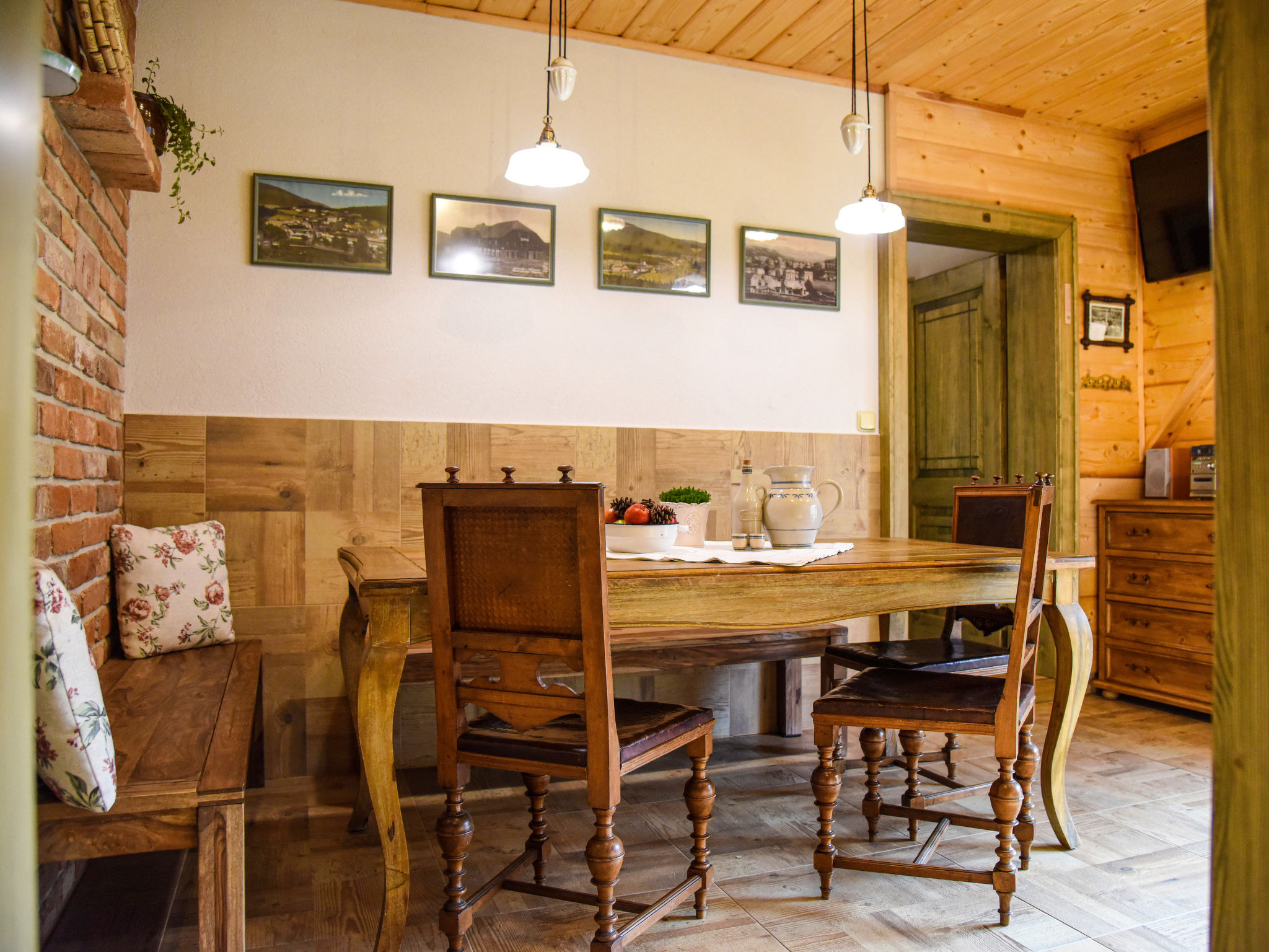Komfortables Chalet 770 m.ü.M., auf 2 Stockwerken, renoviert im Jahre 2017. 5 Wohnungen im Ferienhaus. 50 m vom Zentrum von Pec pod Sněžkou, am Ortsrand, 2.6 km vom Zentrum von Velká Úpa, 24 km vom Zentrum von Černý Důl, zentrale Lage, 500 m vom Skigebiet, 5 m vom Fluss. Zur Mitbenutzung: Grundstück 300 m2. Im Hause: Zentralheizung. Parkplatz (beschränkte Anzahl) auf dem Grundstück. Einkaufsgeschäft, Supermarkt 200 m, Einkaufszentrum 13 km, Bushaltestelle "Pec pod Sněžkou" 200 m, Freibad 20 km, Hallenbad 200 m. Golfplatz (18 Loch) 15 km, Tennis 200 m, Skilift 500 m, Sessellift 900 m, Skipisten 500 m, Skiverleih 200 m, Skischule, Kinderskischule, Kinderspielplatz 900 m. Nahe gelegene Sehenswürdigkeiten: Sněžka 8 km, Mladé Buky 15 km, Jánské Lázně 20 km. Bekannte Skigebiete sind gut erreichbar: Pec pod Sněžkou 500 m. Bekannte Seen in der Umgebung sind gut erreichbar: Dolce 20 km. Bitte beachten: Der Besitzer wohnt im selben Haus.