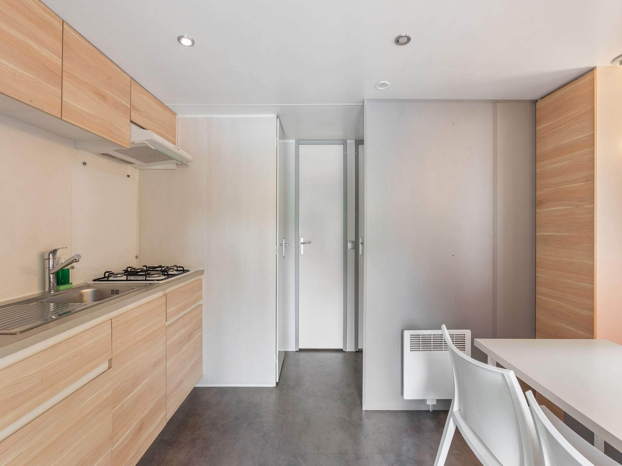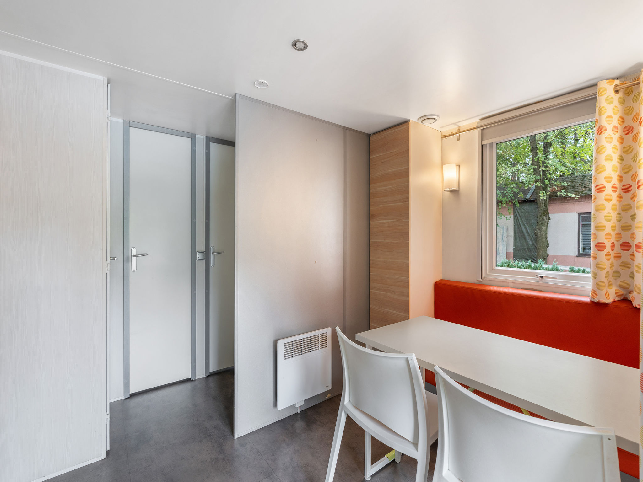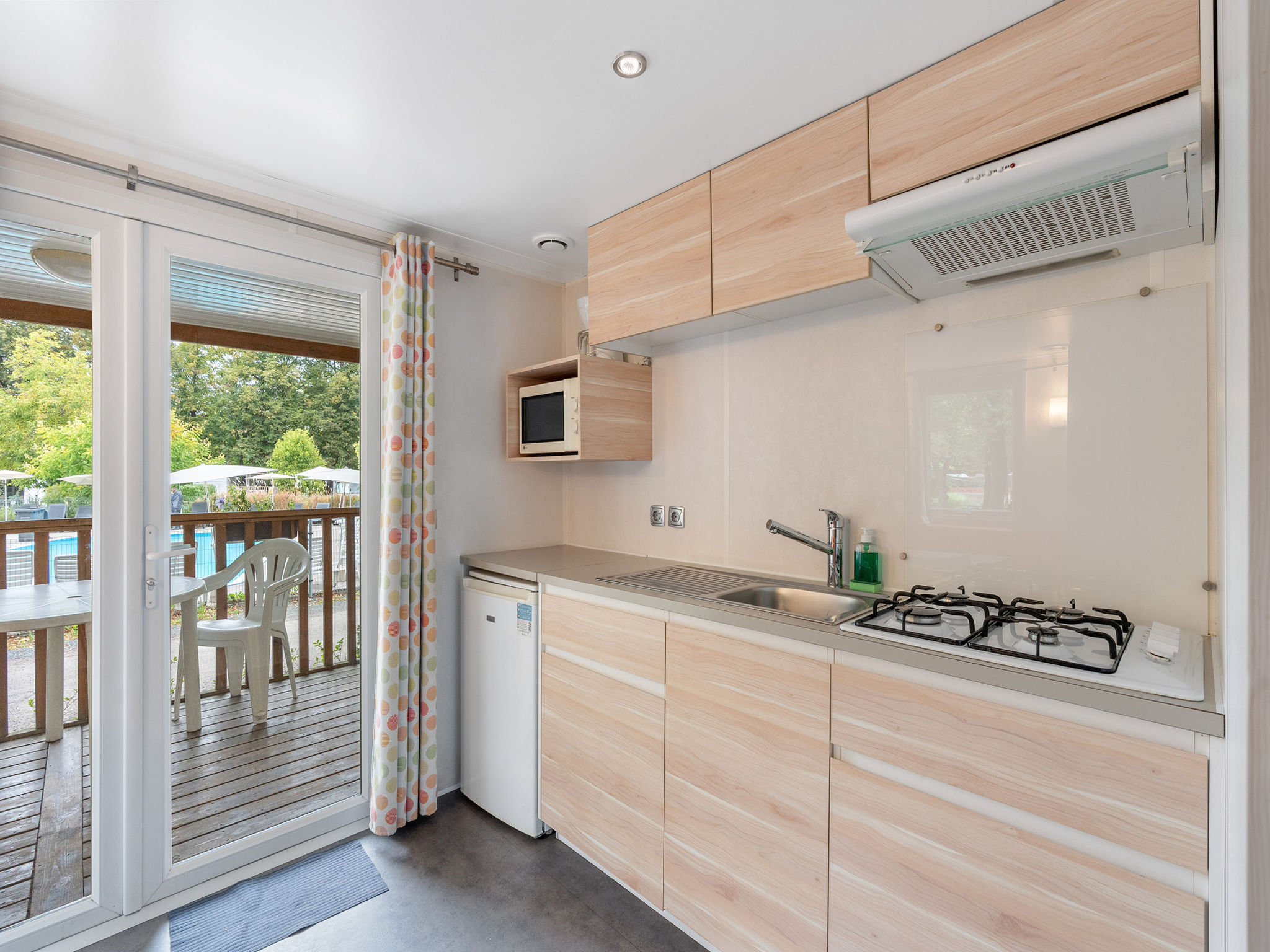 "Sunset Terrace", 3-Zimmer-Mobilheim 32 m2. Wohnzimmer mit Esstisch. 1 Zimmer mit 1 Doppelbett. 1 Zimmer mit 2 Betten. Küche (4 Flammen, Mikrowelle, Tiefkühler, elektrische Kaffeemaschine). Dusche, sep. WC. Terrasse. Terrassenmöbel. Zur Verfügung: Internet (Wireless LAN, gratis). Maximal 1 Haustier/Hund erlaubt.