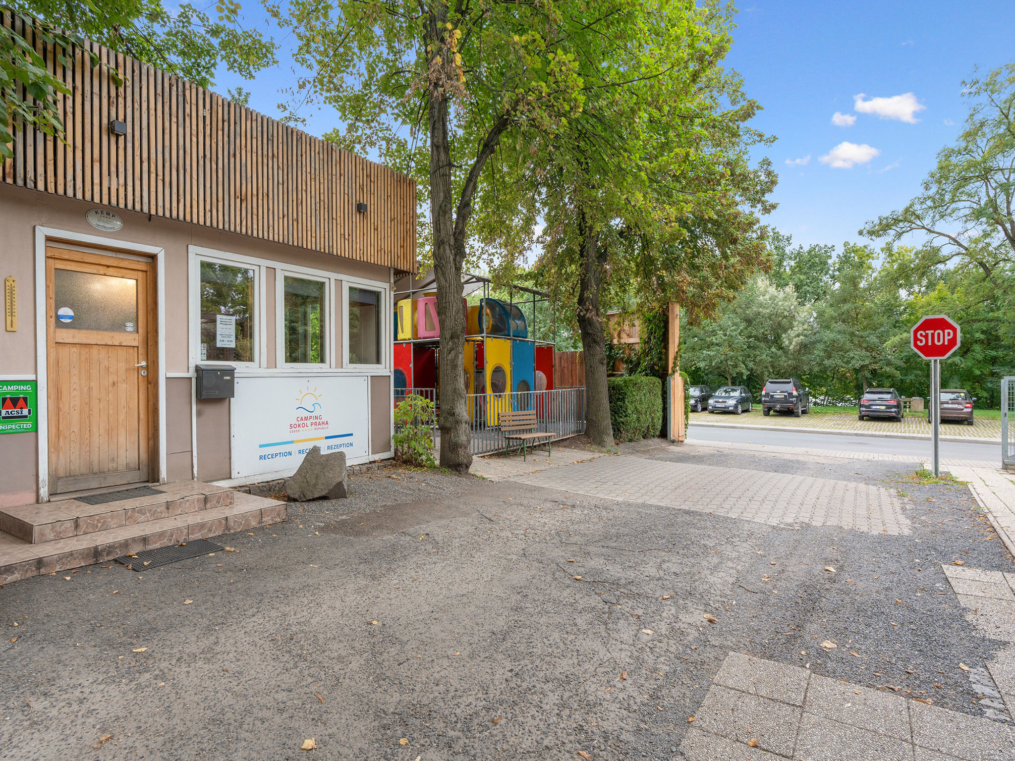 Praha/Dolní Počernice: Kinderfreundliche, gemütliche, komfortable Feriensiedlung "Camping Sokol", umgeben von Bäumen. Am Ortsrand, sonnige Lage, im Grünen. Zur Mitbenutzung: Grundstück (eingezäunt), Schwimmbad (15 x 8 m, saisonale Verfügbarkeit: 11.Mai.-07.Sep.). Kinderbecken, Kinderspielplatz. In der Anlage: Empfang, Restaurant, Wireless LAN, Tischtennis, Trampolin, Einkaufsmöglichkeit, Fahrradverleih. Parkplatz beim Haus. Einkaufsgeschäft, Lebensmittelgeschäft 10 m, Supermarkt 1 km, Einkaufszentrum 6 km, Restaurant 10 m, Bushaltestelle "Škola Dolní Počernice" 200 m, Bahnstation "Dolní Počernice" 1 km, Badesee "Počernický rybník" 100 m. Golfplatz 2 km, Tennis 5 km. Bitte beachten: Animation in der Saison. Babyausstattung (extra).