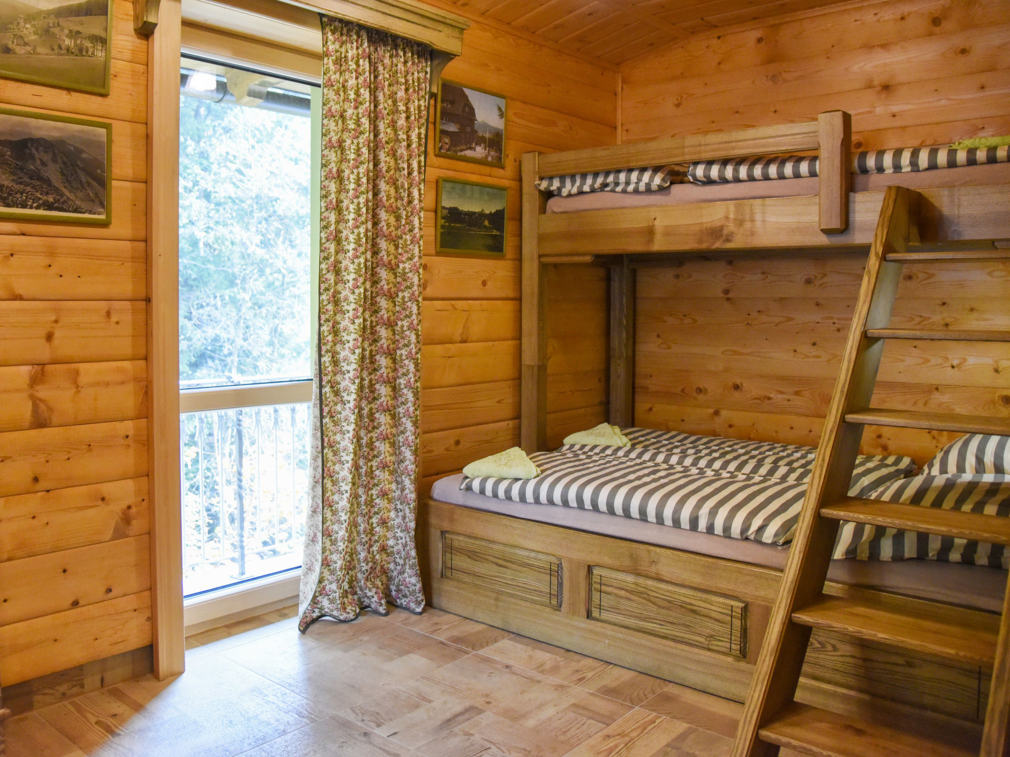 "Stará Huť (PPU114)", 3-Zimmer-Wohnung 60 m2 im 1. Stock. Vollständig renoviert im Jahre 2017, schön und modern eingerichtet: Wohn-/Schlafzimmer mit 1 Bett, 1 Ausziehbett, Esstisch und Sat-TV. 1 Zimmer mit 1 x 1 Etagenbetten, 1 Doppelbett. 1 Zimmer mit 1 x 1 Etagenbetten, 1 Doppelbett. Ausgang zum Balkon. Kochnische (Backofen, 4 Glaskeramikherd Platten, Toaster, Wasserkocher, Mikrowelle, elektrische Kaffeemaschine). Dusche/WC. E-Heizung. Balkon. Schöne Sicht auf den Fluss und den Wald. Zur Verfügung: Kinderhochstuhl, Babybett. Internet (Wireless LAN, gratis). Bitte beachten: Nichtraucher-Unterkunft. 2 kleine Haustiere/Hunde erlaubt.