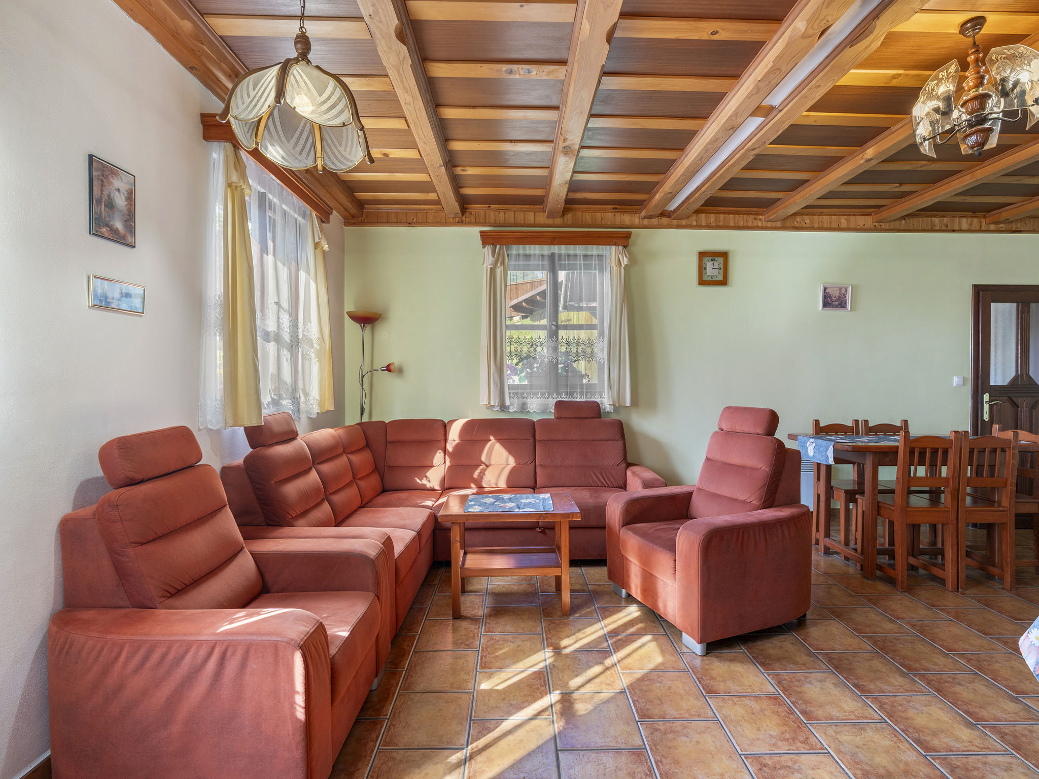 "Loukov u Semil", 4-Zimmer-Haus 144 m2 auf 2 Stockwerken. Wohnzimmer mit 1 Diwanbett, Schwedenofen und Sat-TV. Offene Küche (Backofen, Geschirrspüler, 4 Glaskeramikherd Platten, Toaster, Wasserkocher, Mikrowelle, elektrische Kaffeemaschine) mit Esstisch. Bad/Dusche, Bidet, sep. WC. Obergeschoss: 1 Zimmer mit 1 Bett und 1 Doppelbett. 1 Zimmer mit 1 Bett und 1 Doppelbett. 1 Zimmer mit 2 Betten. Sep. WC. E-Heizung, Holzheizung. 2 Terrassen. Terrassenmöbel. Schöne Sicht auf die Landschaft. Zur Verfügung: Holz (gratis). Internet (Wireless LAN, gratis). Bitte beachten: Nichtraucher-Haus. 2 Haustiere/Hunde erlaubt.