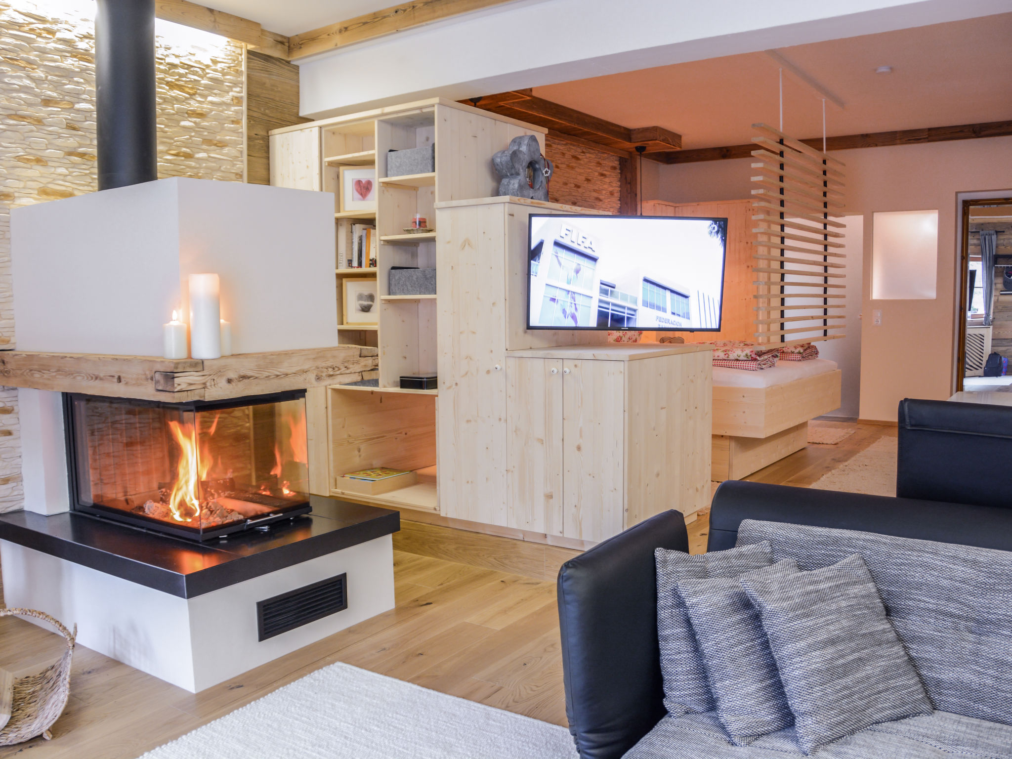 "Apart Fassern", 1-Zimmer-Studio 75 m2, im Erdgeschoss. Objekt geeignet für 2 Erwachsene + 2 Kinder. Sehr gemütlich eingerichtet: Eingang. Studio mit 1 Bett, 1 Diwanbett, 1 Doppelbett, Esstisch, Küchenblock, Dusche/WC, TV und Holzofen. Küche (Backofen, Geschirrspüler, 4 Glaskeramikherd Platten, Tiefkühler, elektrische Kaffeemaschine). Kleine Terrasse. Terrassenmöbel, Gartengrill. Zur Verfügung: Internet (Wireless LAN). Garage (1 Auto). Bitte beachten: Nichtraucher-Unterkunft. Bei Belegung mit weniger Personen als der maximalen Personenzahl stehen nicht alle Wohneinheiten zur Verfügung.