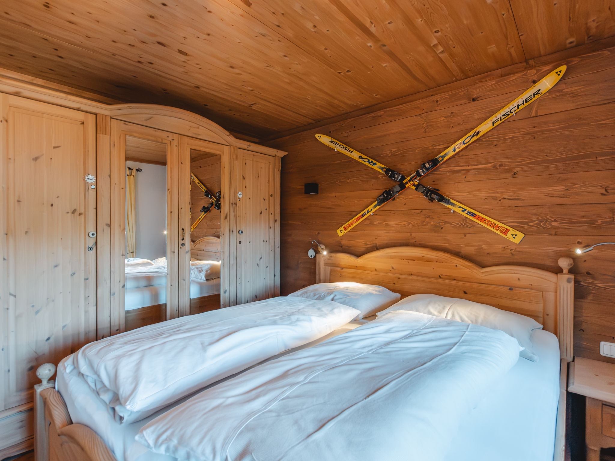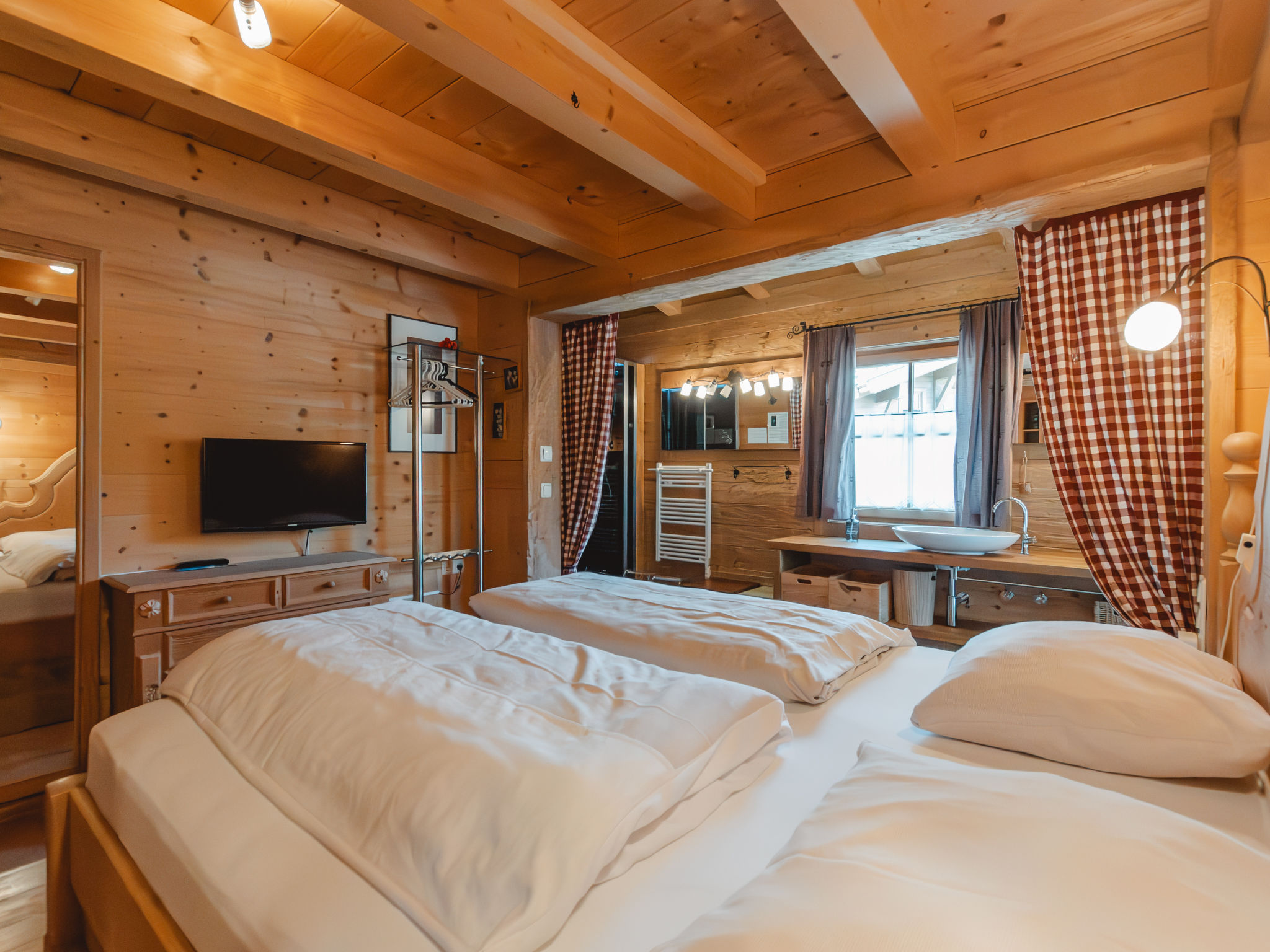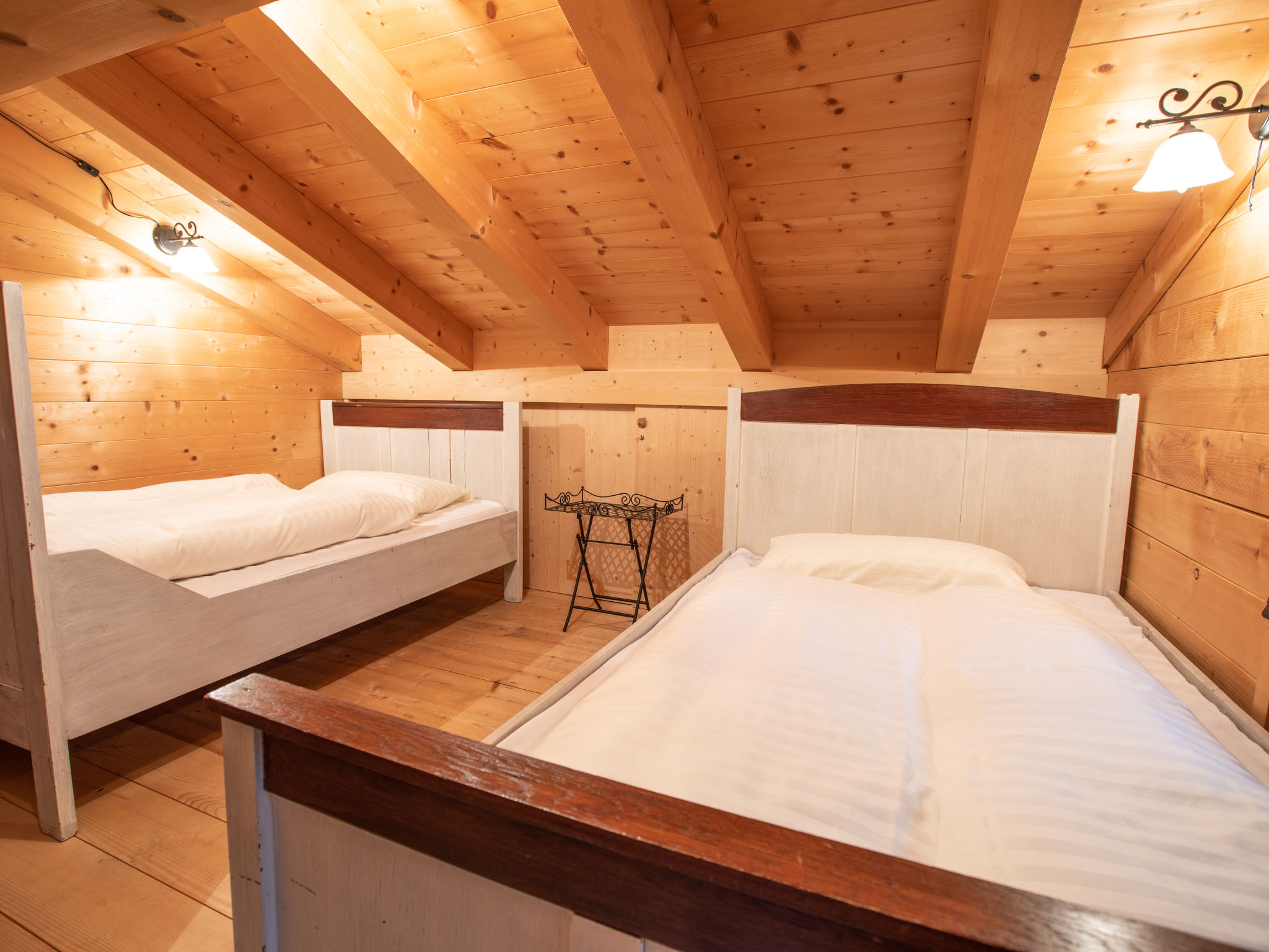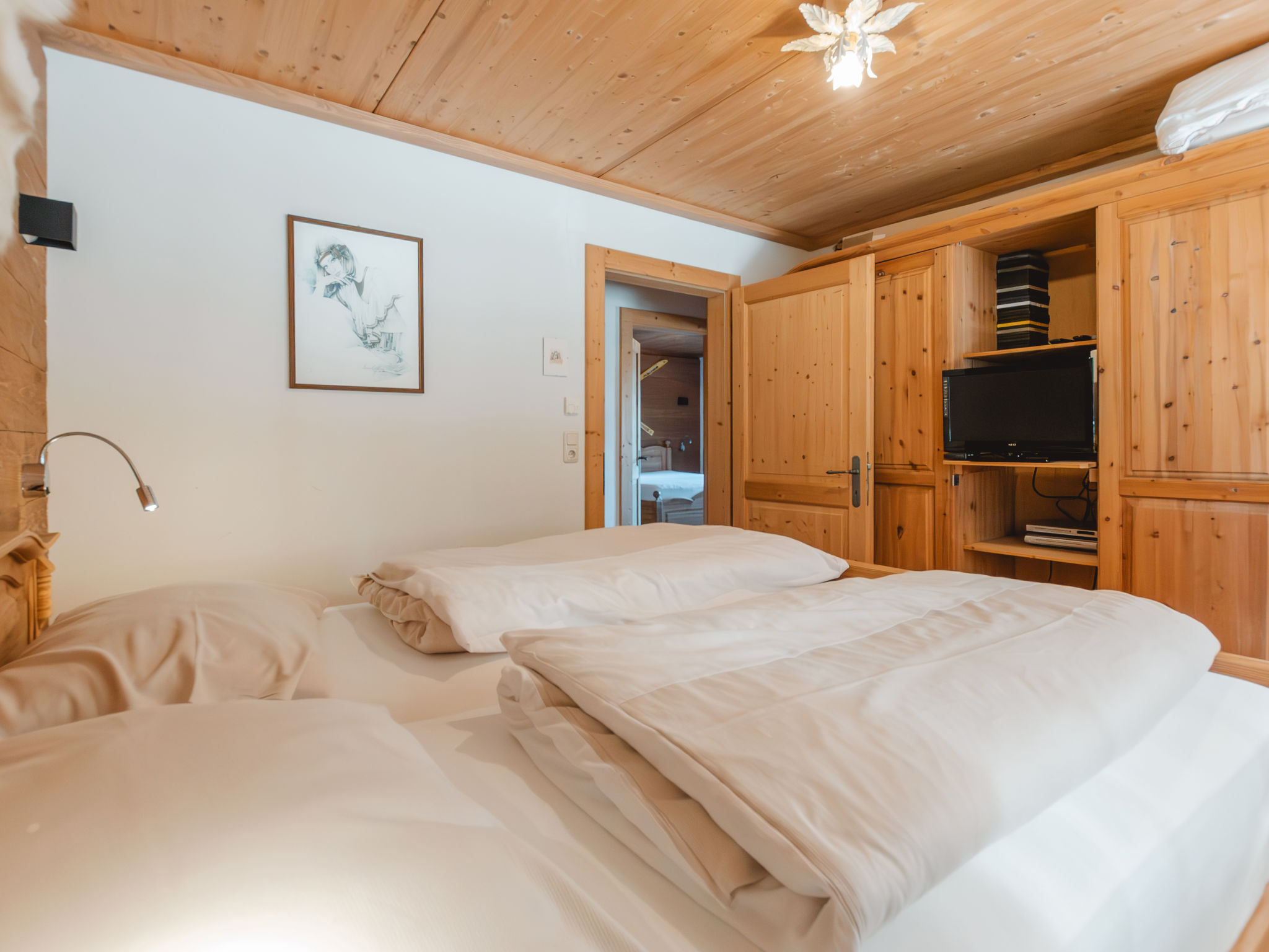 6-Zimmer-Haus 110 m2. Luxuriös und mit viel Holz eingerichtet: 2 Doppelzimmer, jedes Zimmer mit Flachbildschirm. 1 Doppelzimmer mit Kabel-TV. Bad/WC, sep. WC. Obergeschoss: 1 Doppelzimmer mit Waschbecken, Dampfdusche und Flachbildschirm. Grosses Wohn-/Esszimmer mit offenem Kamin und Kabel-TV (Flachbildschirm), Video und Radio. Ausgang zum Balkon. Grosse, offene Küche (Backofen, Geschirrspüler, 4 Glaskeramikherd Platten, Mikrowelle, Tiefkühler) mit Essecke. Dusche/WC. Dachgeschoss: 1 abgeschrägtes Zimmer mit 2 Betten (110 cm, Länge 200 cm). Grosser Balkon, grosse Terrasse 120 m2, 2 kleine Terrassen. Gartengrill, Liegestühle. Schöne Sicht auf die Berge. Zur Verfügung: Waschmaschine, Wäschetrockner, Kinderhochstuhl, Haartrockner. Internet (Wireless LAN, gratis). Parkplatz. Bitte beachten: Nichtraucher-Unterkunft. Im luxuriösen Bad gibt es eine grosse, runde Badewanne. Die Dampfdusche im Oberschoss ist eine Dampfsauna mit integrierter Dusche.