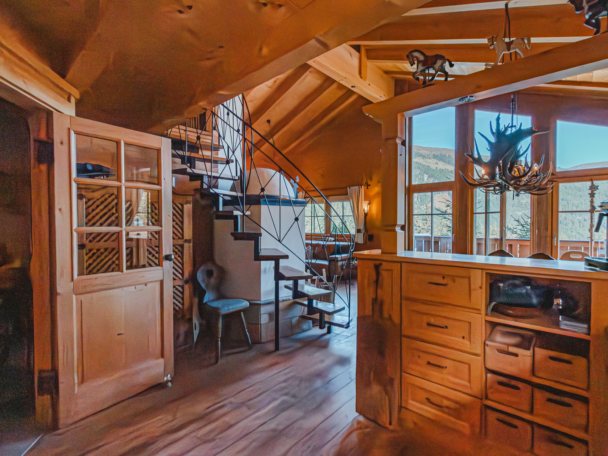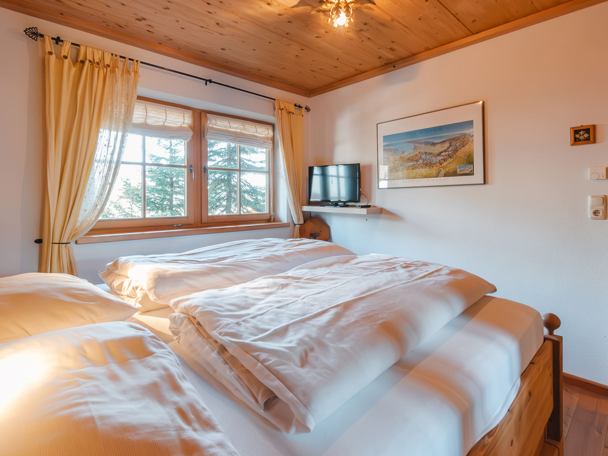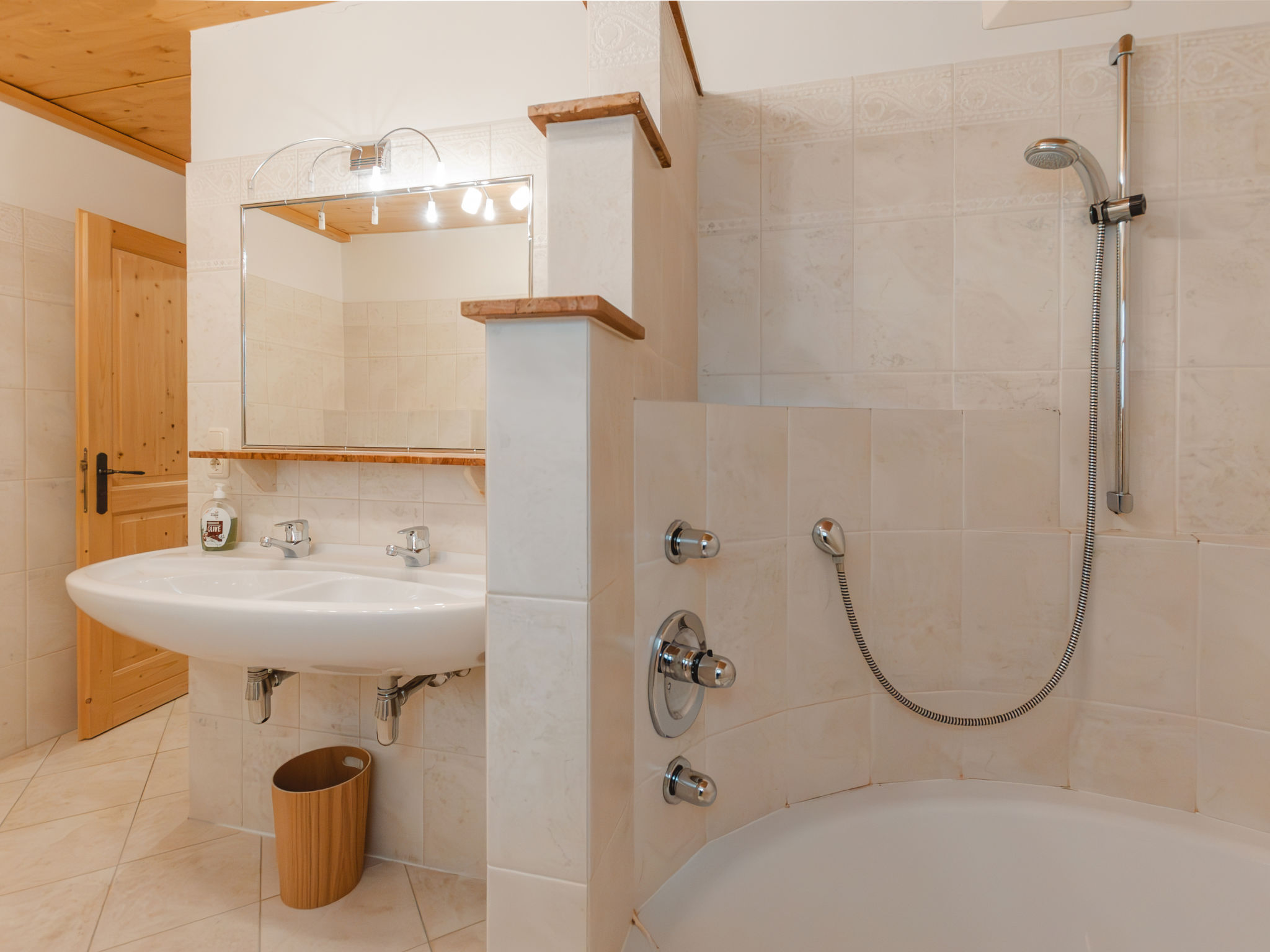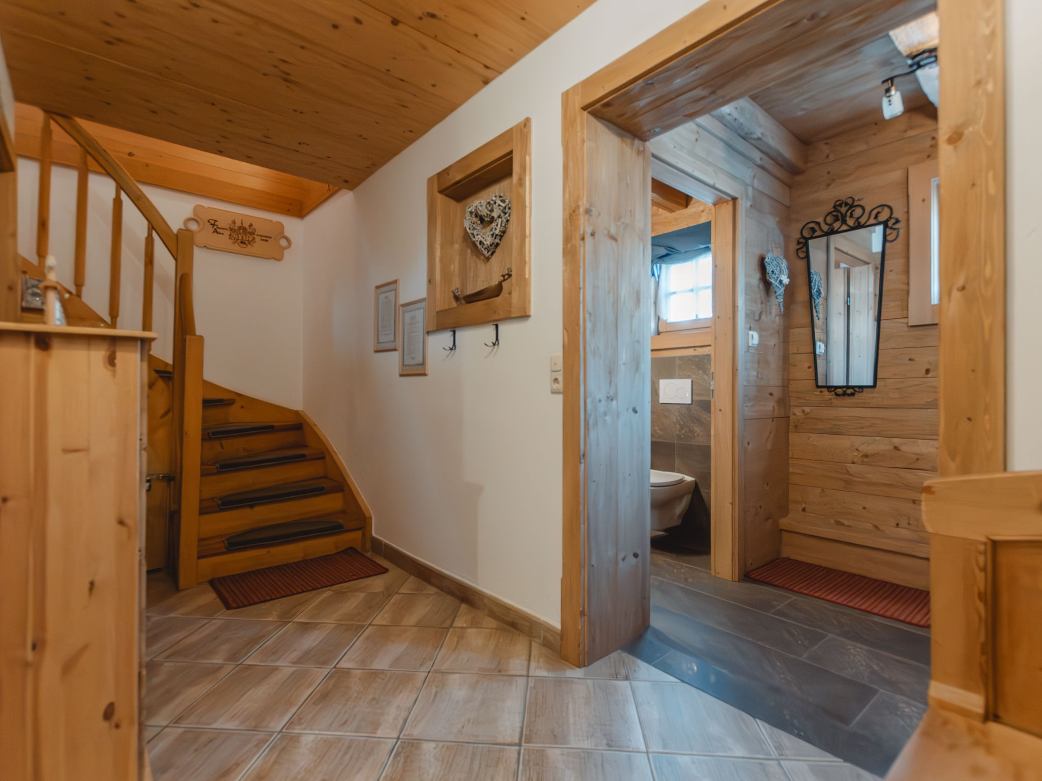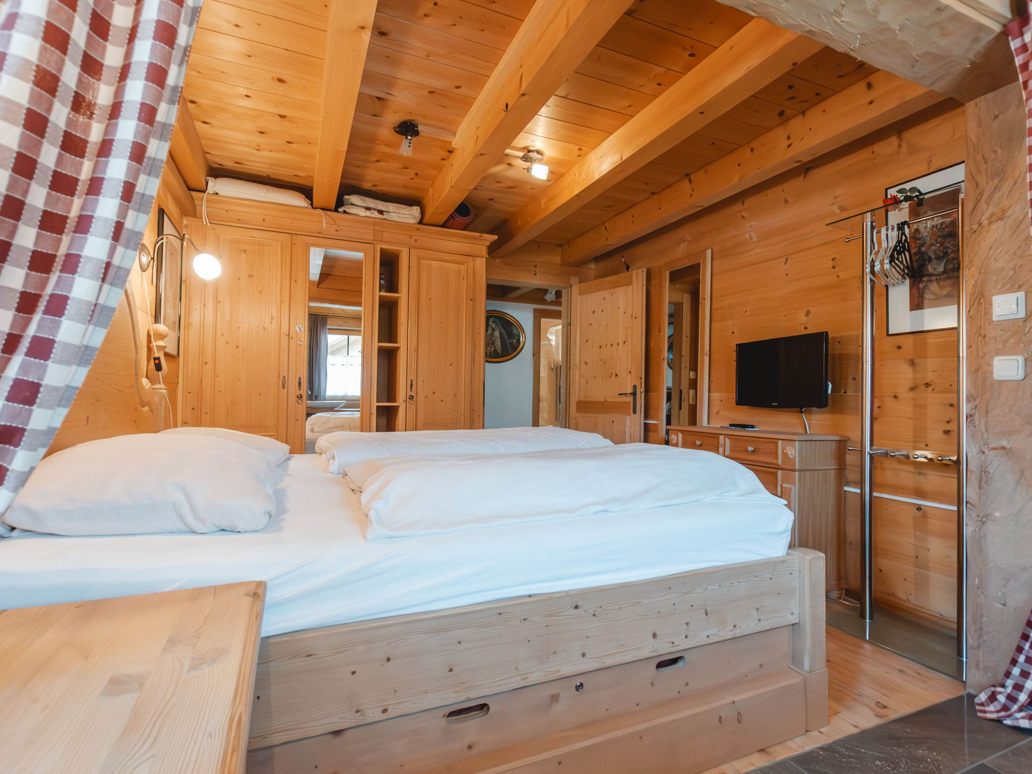 6-Zimmer-Haus 110 m2. Luxuriös und mit viel Holz eingerichtet: 2 Doppelzimmer, jedes Zimmer mit Flachbildschirm. 1 Doppelzimmer mit Kabel-TV. Bad/WC, sep. WC. Obergeschoss: 1 Doppelzimmer mit Waschbecken, Dampfdusche und Flachbildschirm. Grosses Wohn-/Esszimmer mit offenem Kamin und Kabel-TV (Flachbildschirm), Video und Radio. Ausgang zum Balkon. Grosse, offene Küche (Backofen, Geschirrspüler, 4 Glaskeramikherd Platten, Mikrowelle, Tiefkühler) mit Essecke. Dusche/WC. Dachgeschoss: 1 abgeschrägtes Zimmer mit 2 Betten (110 cm, Länge 200 cm). Grosser Balkon, grosse Terrasse 120 m2, 2 kleine Terrassen. Gartengrill, Liegestühle. Schöne Sicht auf die Berge. Zur Verfügung: Waschmaschine, Wäschetrockner, Kinderhochstuhl, Haartrockner. Internet (Wireless LAN, gratis). Parkplatz. Bitte beachten: Nichtraucher-Unterkunft. Im luxuriösen Bad gibt es eine grosse, runde Badewanne. Die Dampfdusche im Oberschoss ist eine Dampfsauna mit integrierter Dusche.