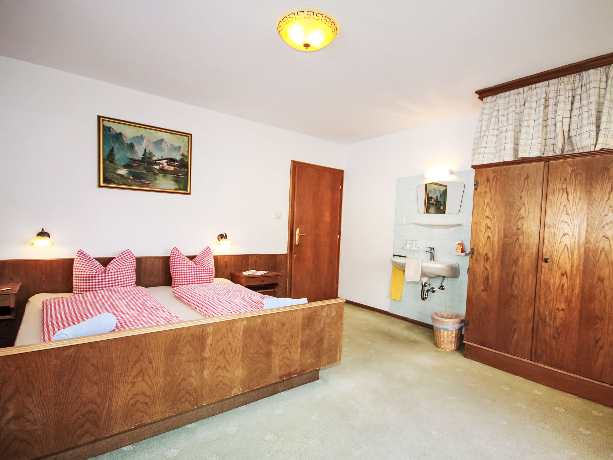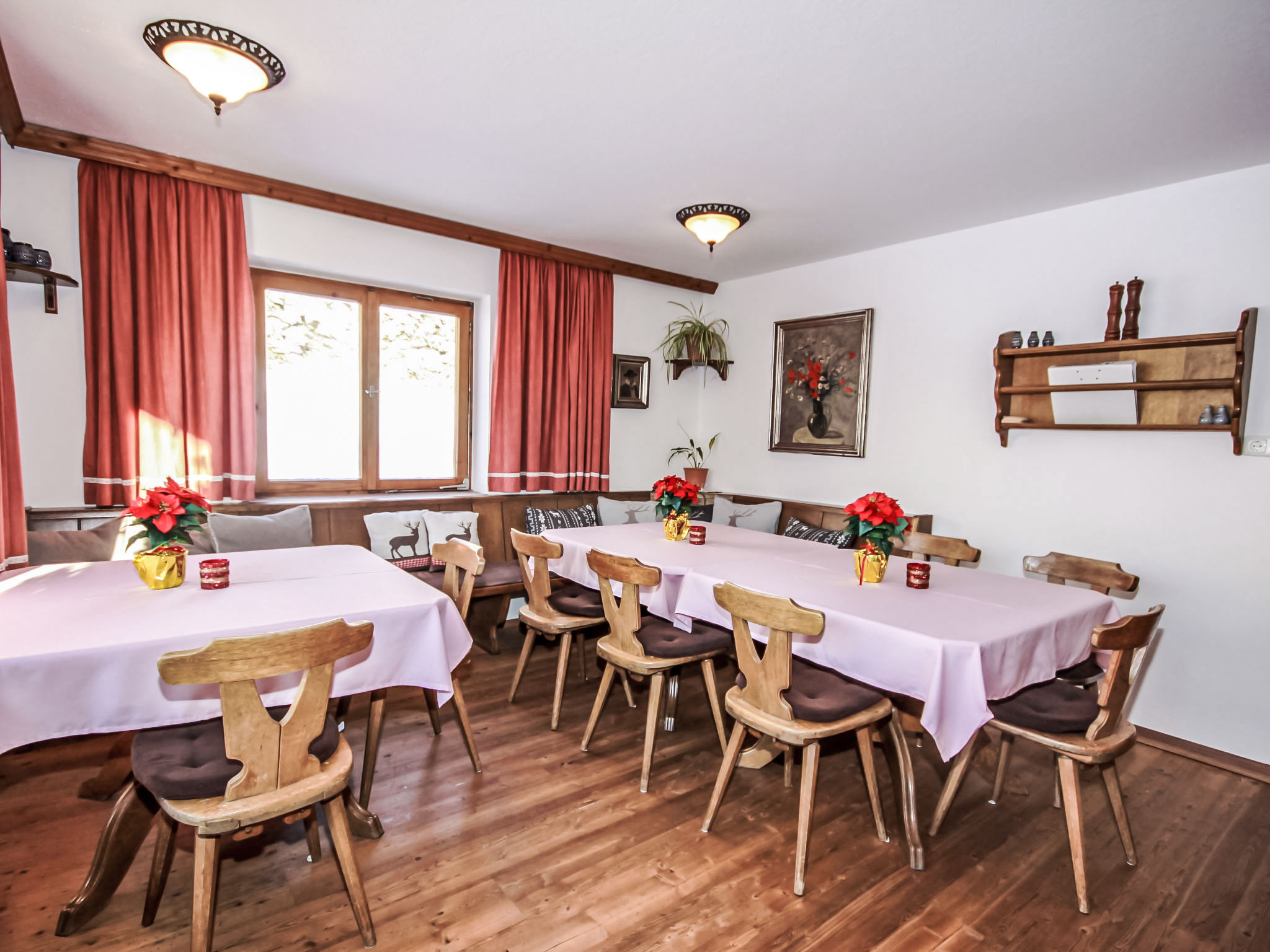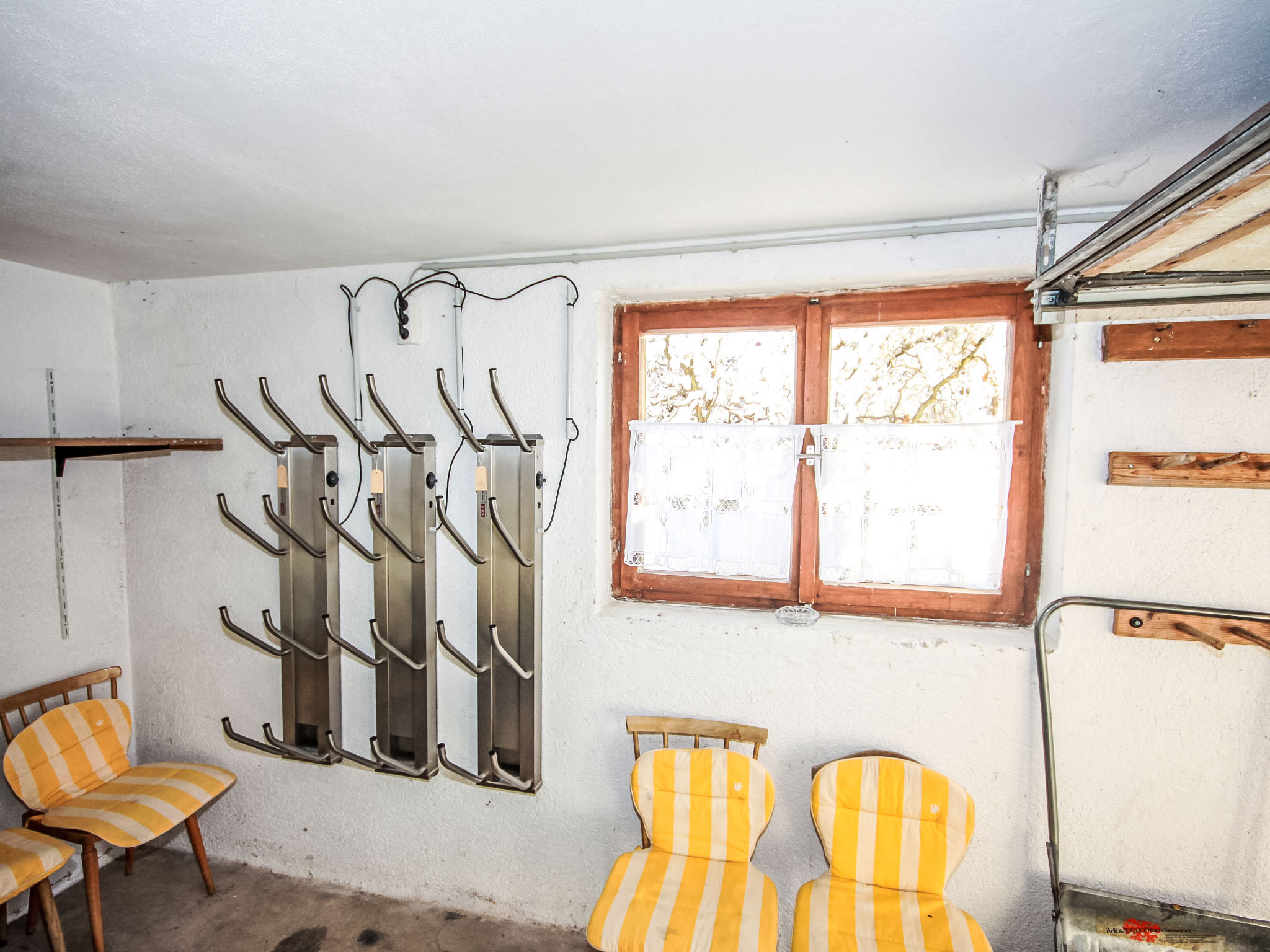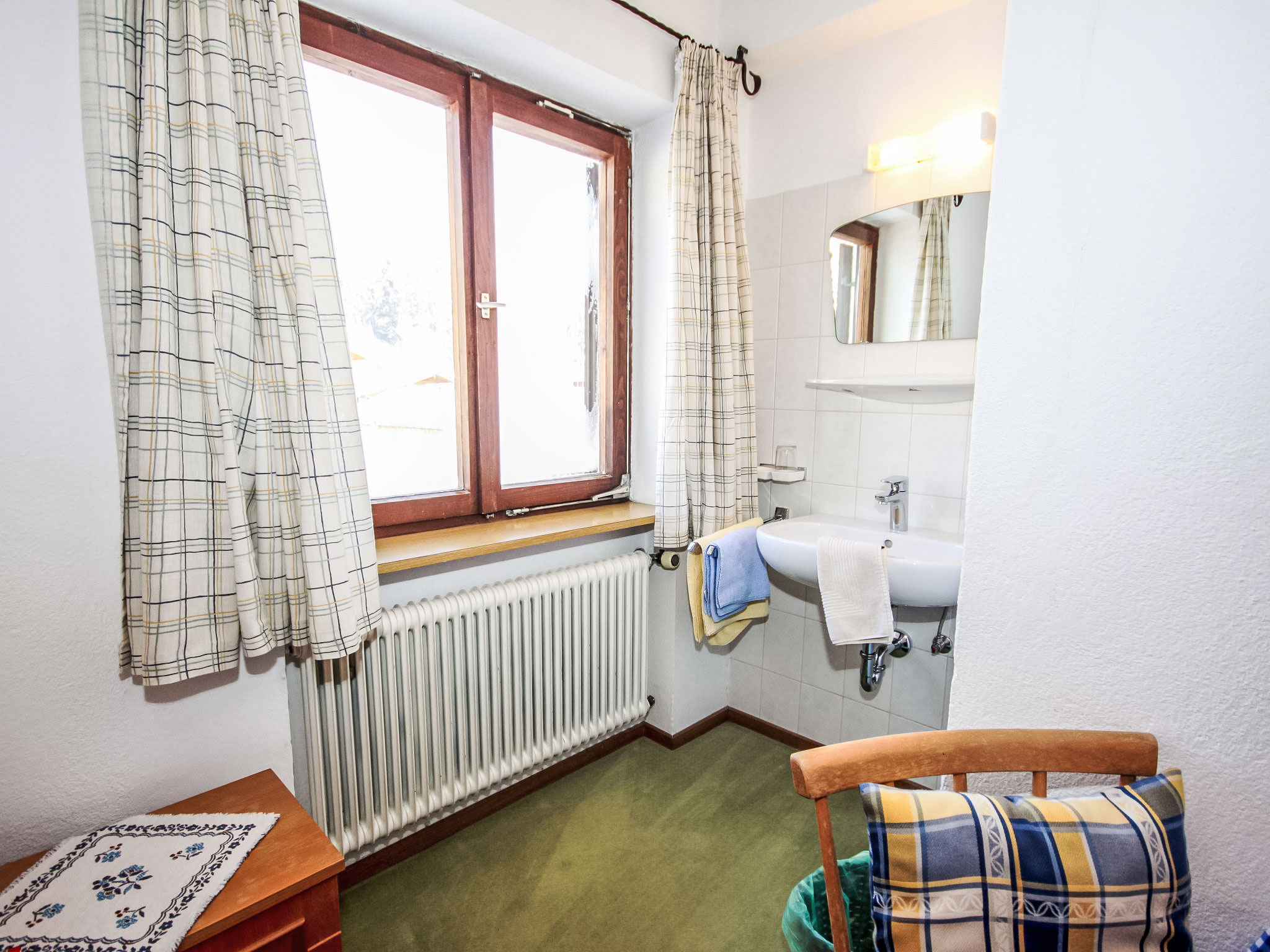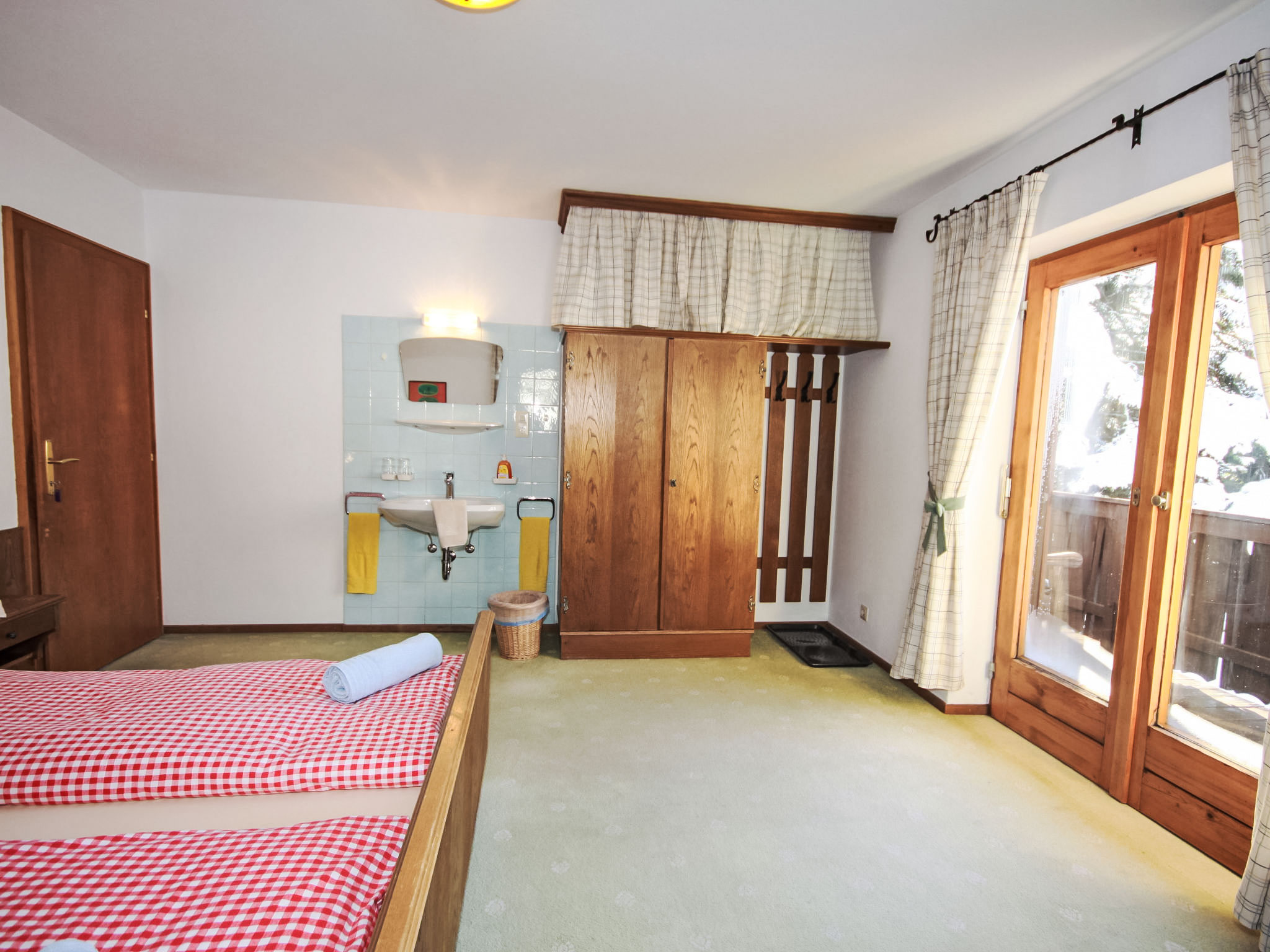 "Fliegerklause", 8-Zimmer-Haus 180 m2 auf 3 Stockwerken. Rustikal eingerichtet: Eingang. Wohnzimmer mit Sat-TV und Flachbildschirm. Küche (Backofen, Geschirrspüler, 5 Glaskeramikherd Platten, Wasserkocher, Mikrowelle, Tiefkühler, elektrische Kaffeemaschine) mit Essecke. Bad/Dusche, sep. WC. Unteres Geschoss: 1 Doppelzimmer mit 1 Doppelbett (2 x 90 cm, Länge 190 cm), Waschbecken. Obergeschoss: 2 Doppelzimmer, jedes Zimmer mit 1 Doppelbett (2 x 90 cm, Länge 190 cm), Waschbecken. Ausgang zum Balkon. 1 Doppelzimmer mit 1 Doppeldiwanbett (2 x 90 cm, Länge 200 cm), Waschbecken. 1 Doppelzimmer mit 1 Doppelbett (2 x 90 cm, Länge 190 cm), Waschbecken. 1 Zimmer mit 1 Bett (90 cm, Länge 190 cm), Waschbecken. Dusche/WC, sep. WC. Grosser Balkon. Abstellkammer. Schöne Sicht auf die Berge und die Landschaft. Zur Verfügung: Internet (Wireless LAN, gratis). Bitte beachten: geeignet für Familien. Nichtraucher-Haus. 1 kleines Haustier/Hund erlaubt. Pro Buchung ist ein 120 Liter Restmüllsack inkludiert. Weitere Müllsäcke können beim Schlüsselhalter um 7,50€ pro Sack erworben werden. Eine detaillierte Hausordnung wird allen Gästen bei Anreise übergeben und ist verpflichtender Teil der Buchung. Ein Hund bis 15 Kg wird kostenpflichtig (75 € pro Aufenthalt) akzeptiert.