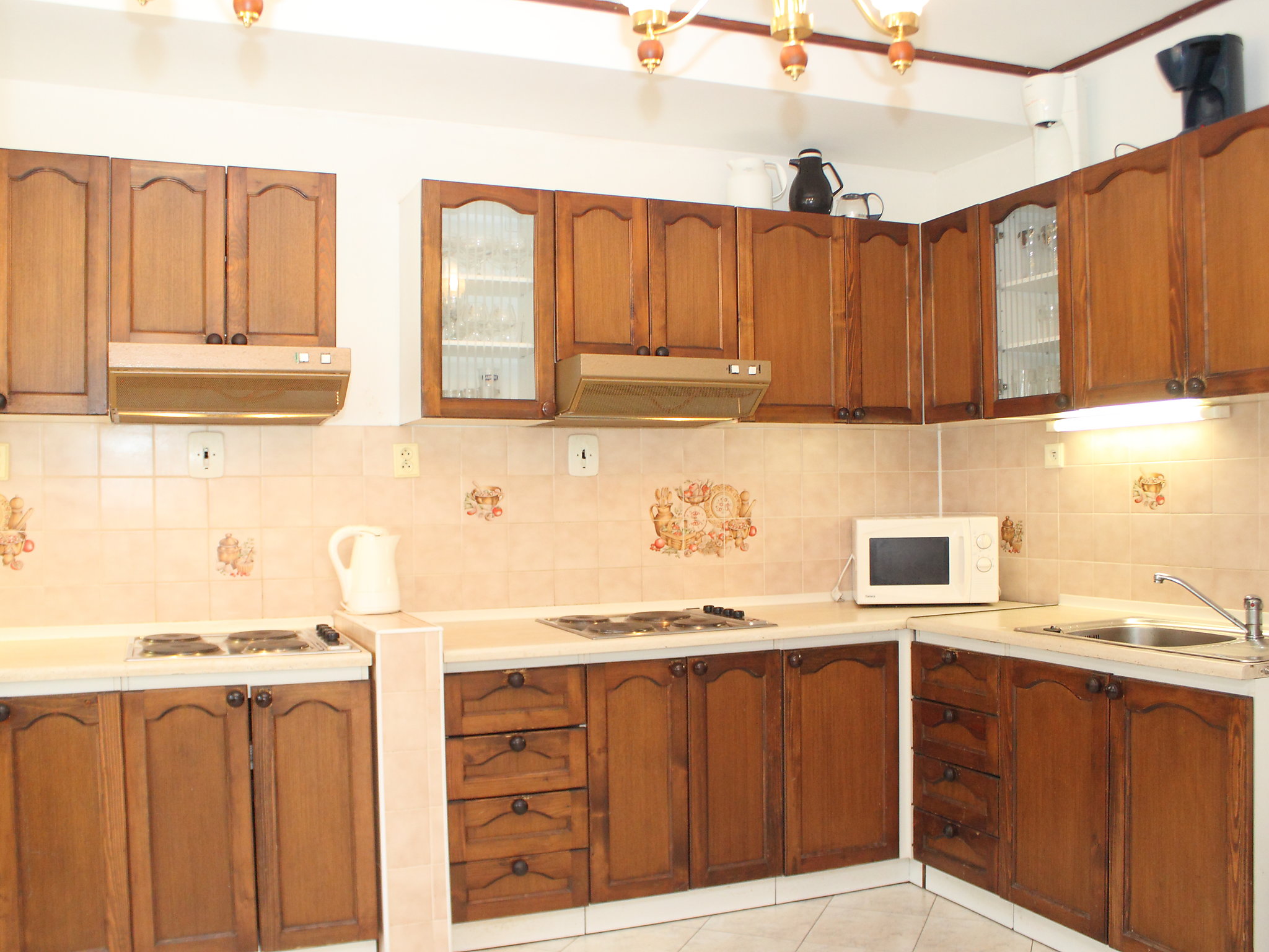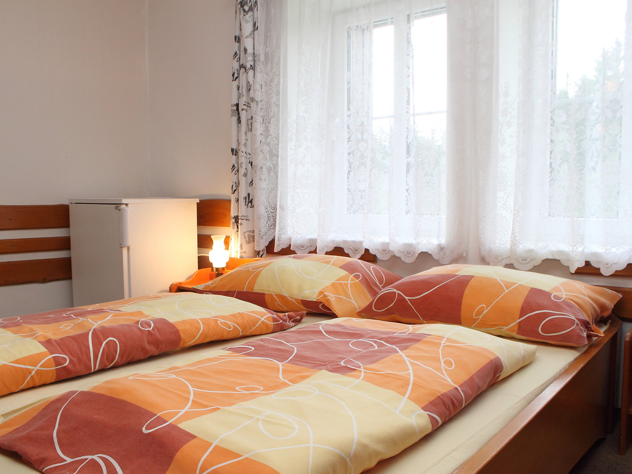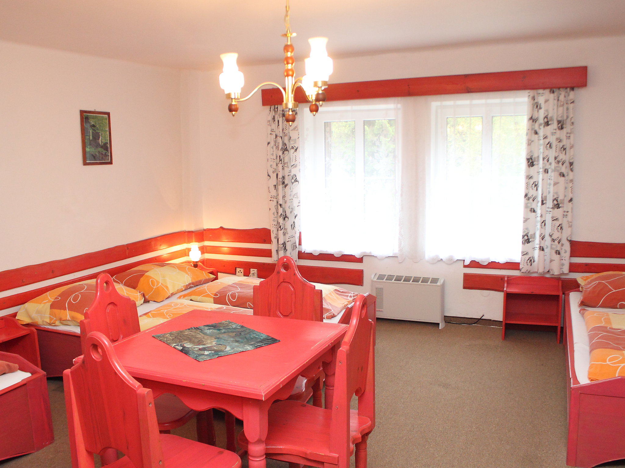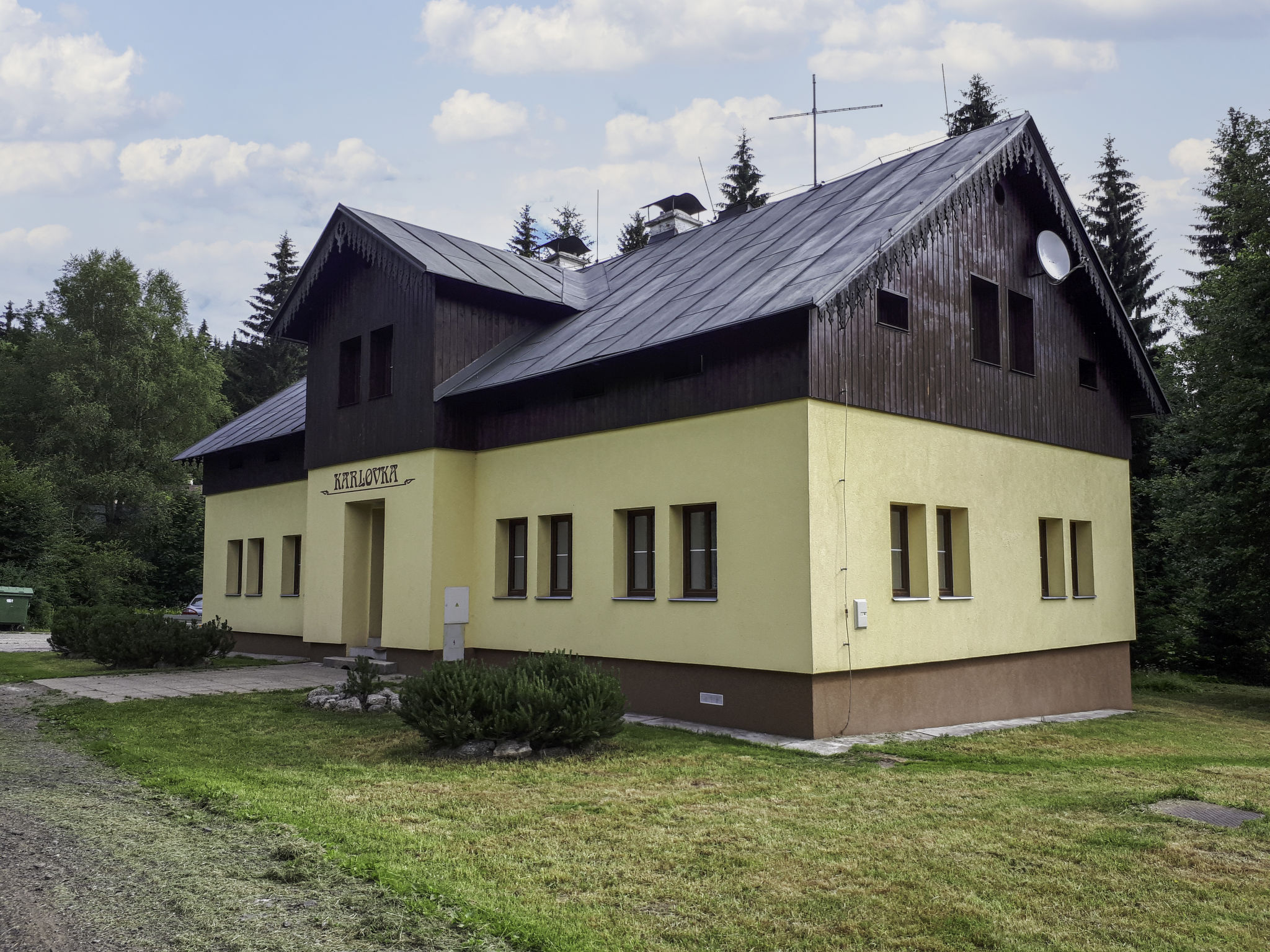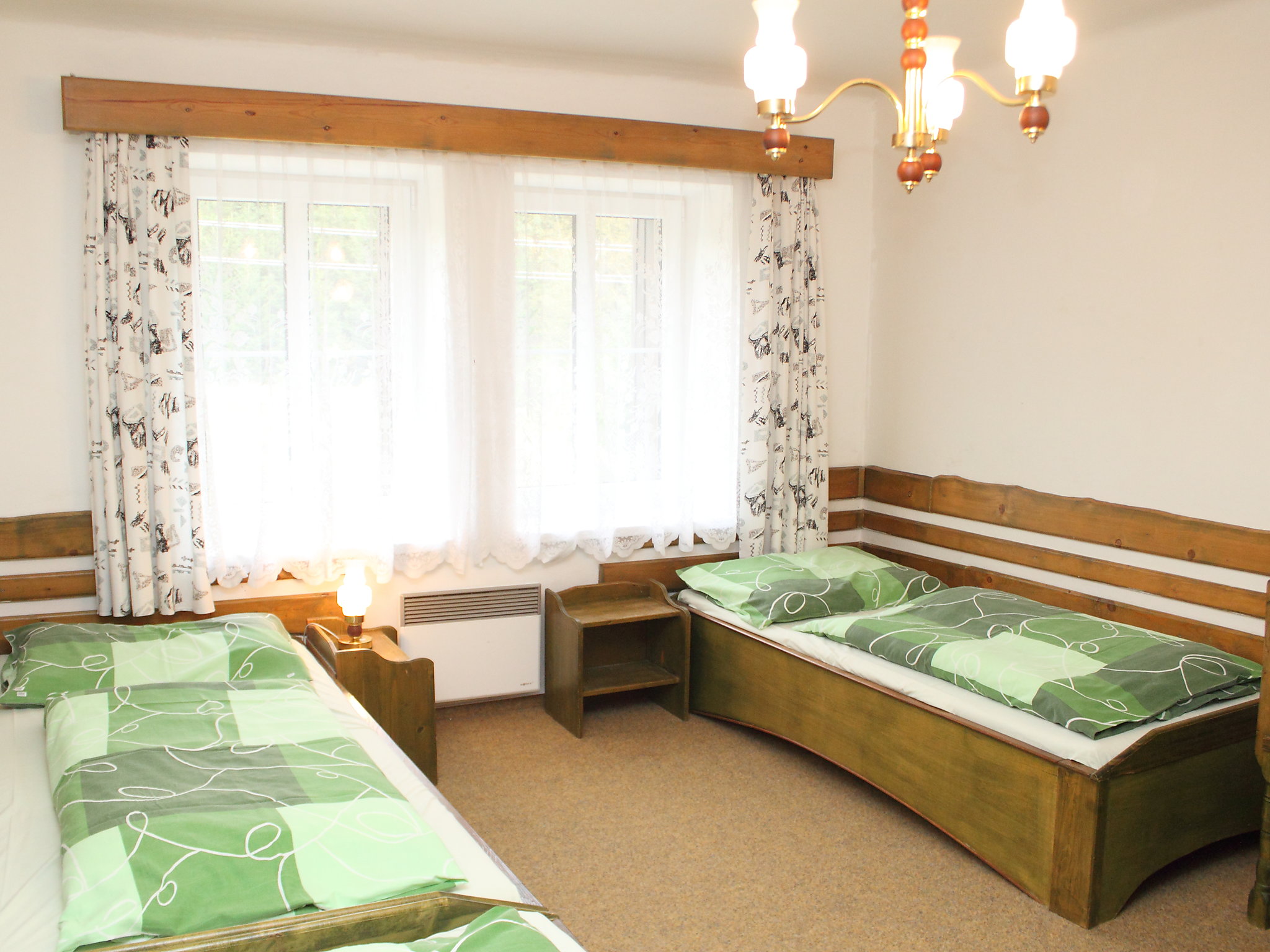 "Karlovka", 8-Zimmer-Haus 220 m2. Einfach und mit viel Holz eingerichtet: Esszimmer 40 m2 mit TV. 1 Zimmer mit 2 Betten, 1 Doppelbett, Waschbecken und sep. WC. 1 Zimmer mit 4 Betten und Dusche/WC. Küche (8 Kochplatten, Wasserkocher, Mikrowelle). Dusche, Dusche/WC, 2 sep. WC's. Obergeschoss: Dusche/WC. 2. Obergeschoss: 2 Zimmer, jedes Zimmer mit 2 Betten und Waschbecken. 1 Zimmer mit 2 Betten, 1 Doppelbett und Waschbecken. 1 Zimmer mit 3 Betten und Waschbecken. 1 Zimmer mit 4 Betten. E-Heizung. Sicht auf den Wald. Zur Verfügung: Internet (Wireless LAN, gratis). Parkplatz. In der Küche 2 Geschirrspülbecken, grosser Kühlschrank. Kleiderraum. Jedes Zimmer in eigener Farbe und in allen Zimmern (ausser in den Zweibettzimmern) befindet sich ein Kühlschrank. Im Zwischengeschoss Dusche/WC. Skiraum. Wifi ist bis zu 10 GB kostenlos, dann gegen eine Gebühr von 15 EUR pro Tag.