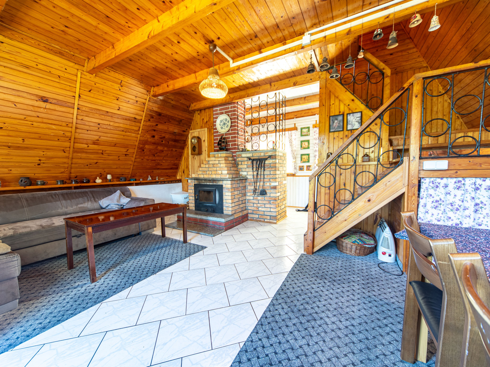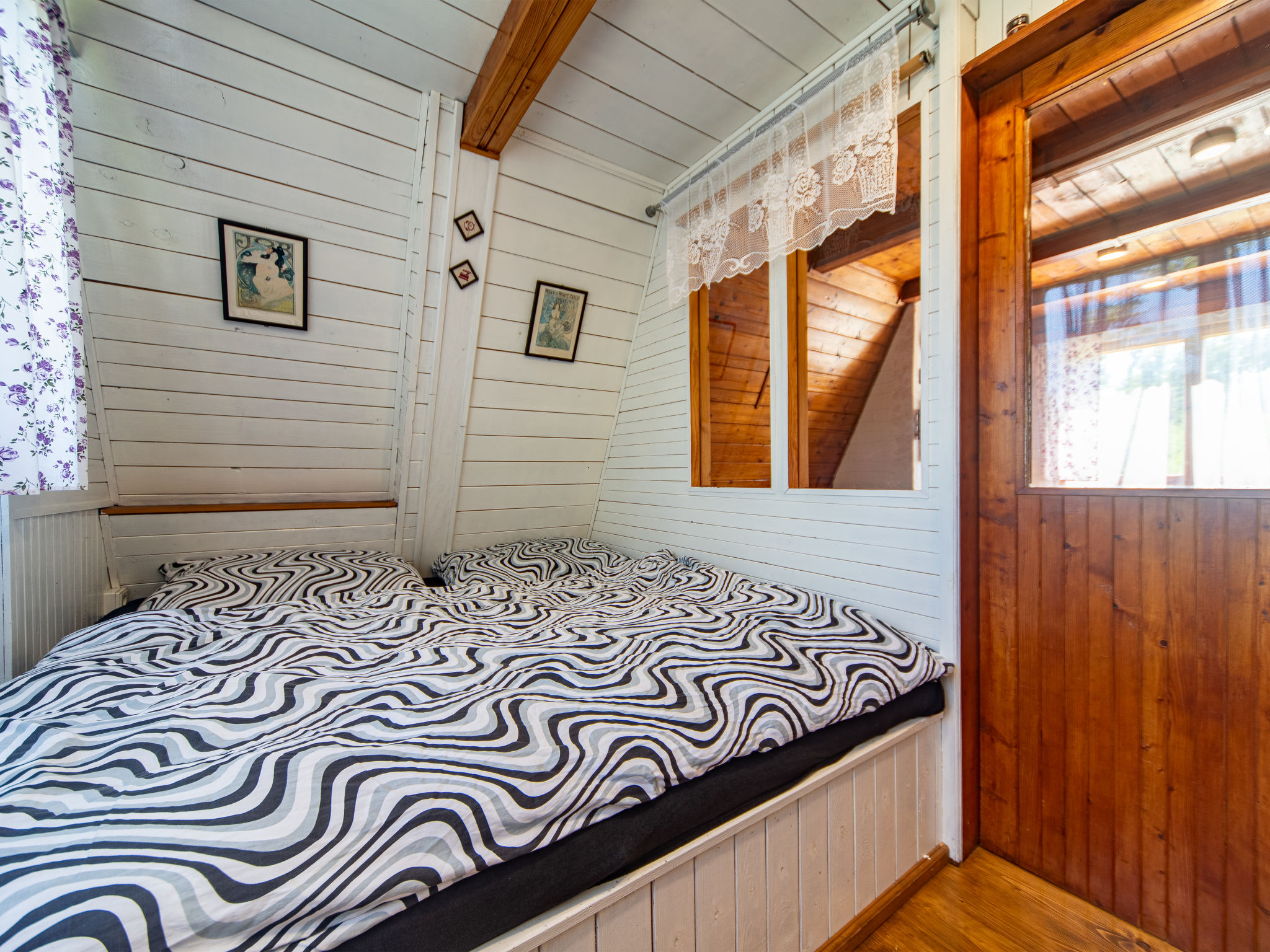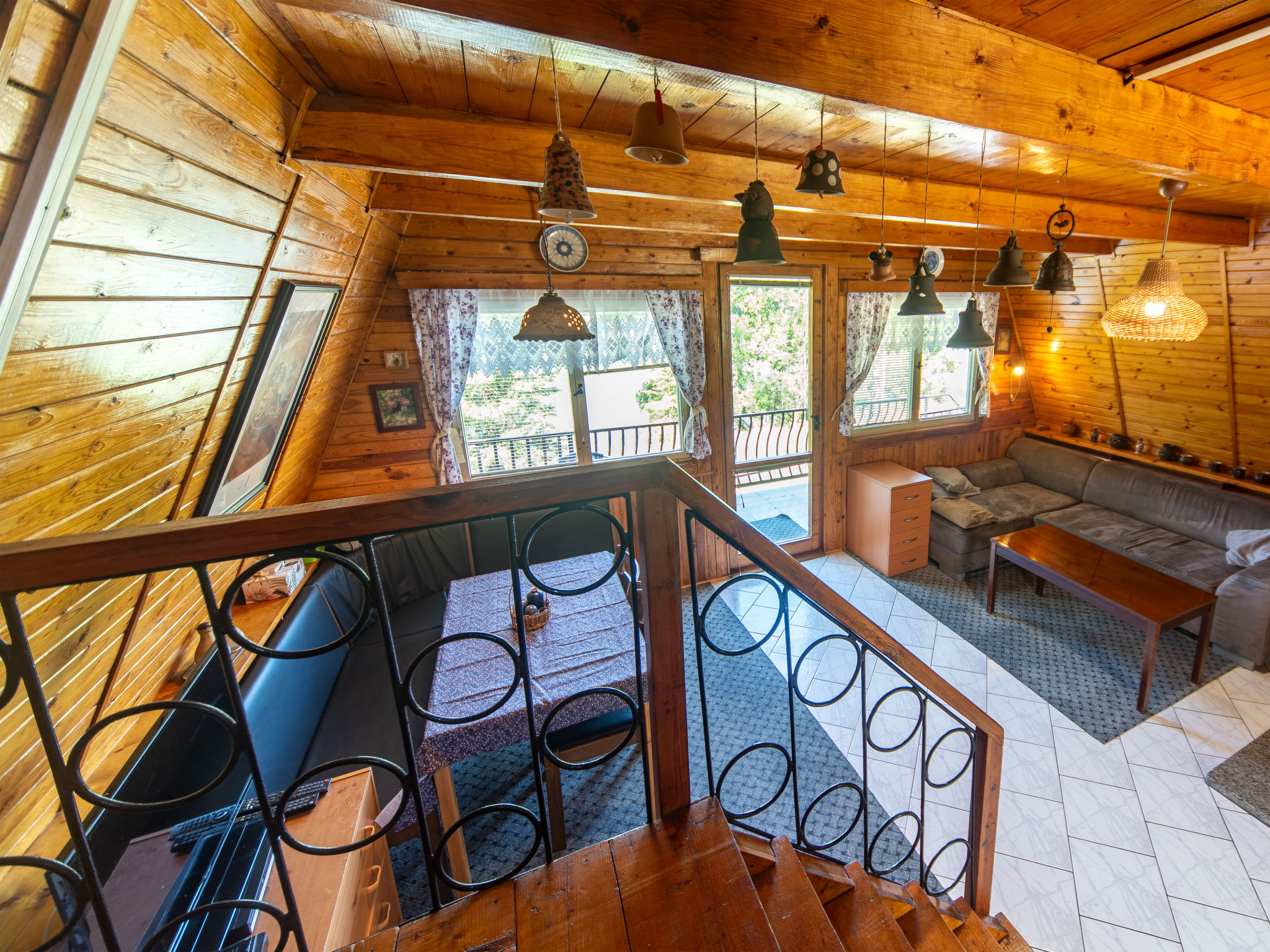 4-Zimmer-Haus 70 m2 auf 3 Stockwerken. Gemütlich eingerichtet: Wohnzimmer mit Sat-TV. Bad/Dusche/WC. Obergeschoss: Wohn-/Schlafzimmer mit 1 Doppeldiwanbett, offenem Kamin, Esstisch, Sat-TV, Radio und DVD. Ausgang zum Balkon. Offene Küche (4 Kochplatten, Backofen, Toaster, Wasserkocher, Mikrowelle, Tiefkühler, elektrische Kaffeemaschine). Dachgeschoss: abgeschrägtes kleines Durchgangszimmer mit 1 Doppelbett. 1 abgeschrägtes kleines Zimmer mit 1 Doppelbett. Grosser Balkon. Balkonmöbel, Gartengrill. Herrliche Sicht auf den See. Zur Verfügung: Kinderhochstuhl, Babybett (extra). Internet (Wireless LAN, gratis). Maximal 3 Haustiere/Hunde erlaubt.