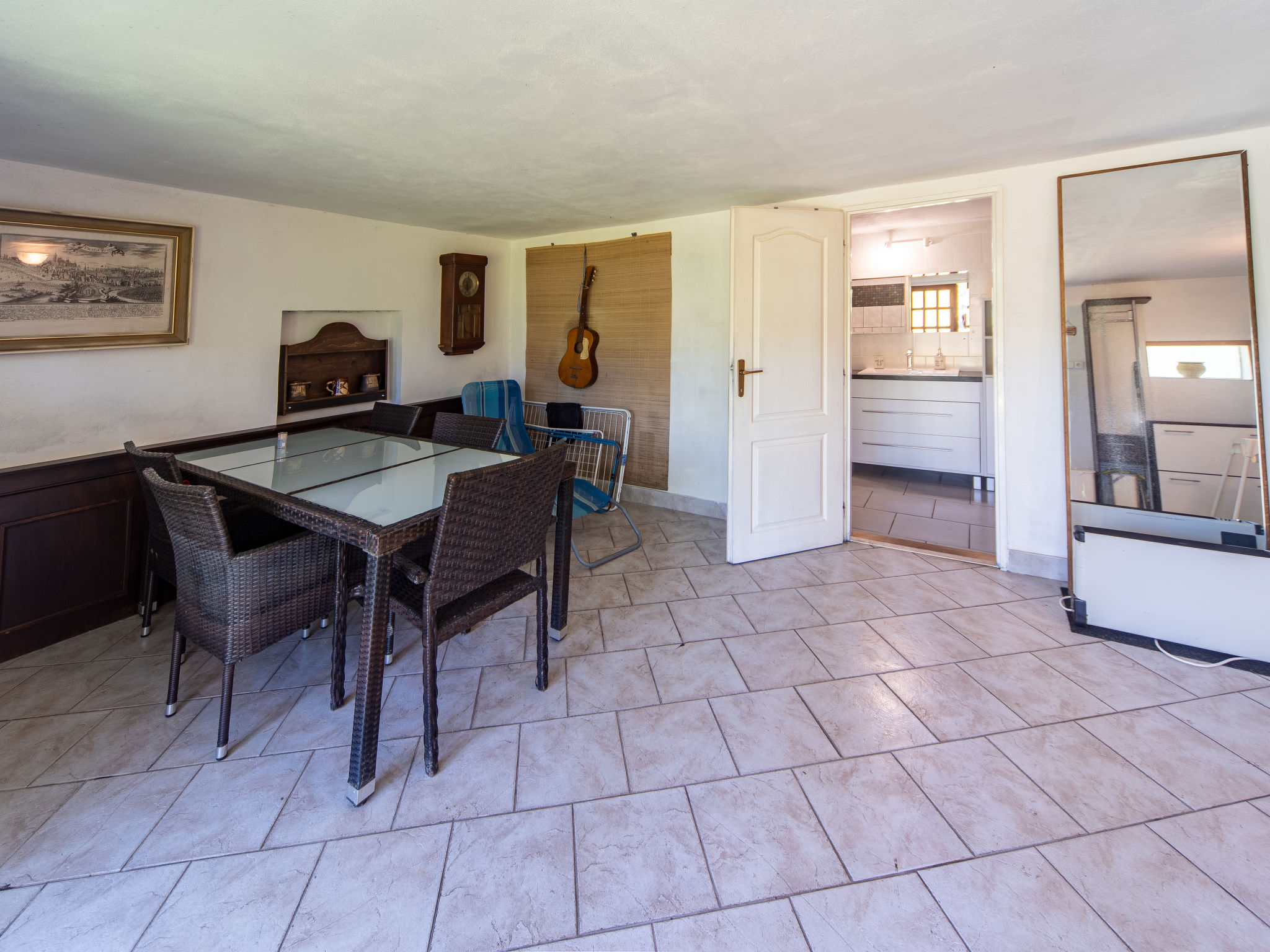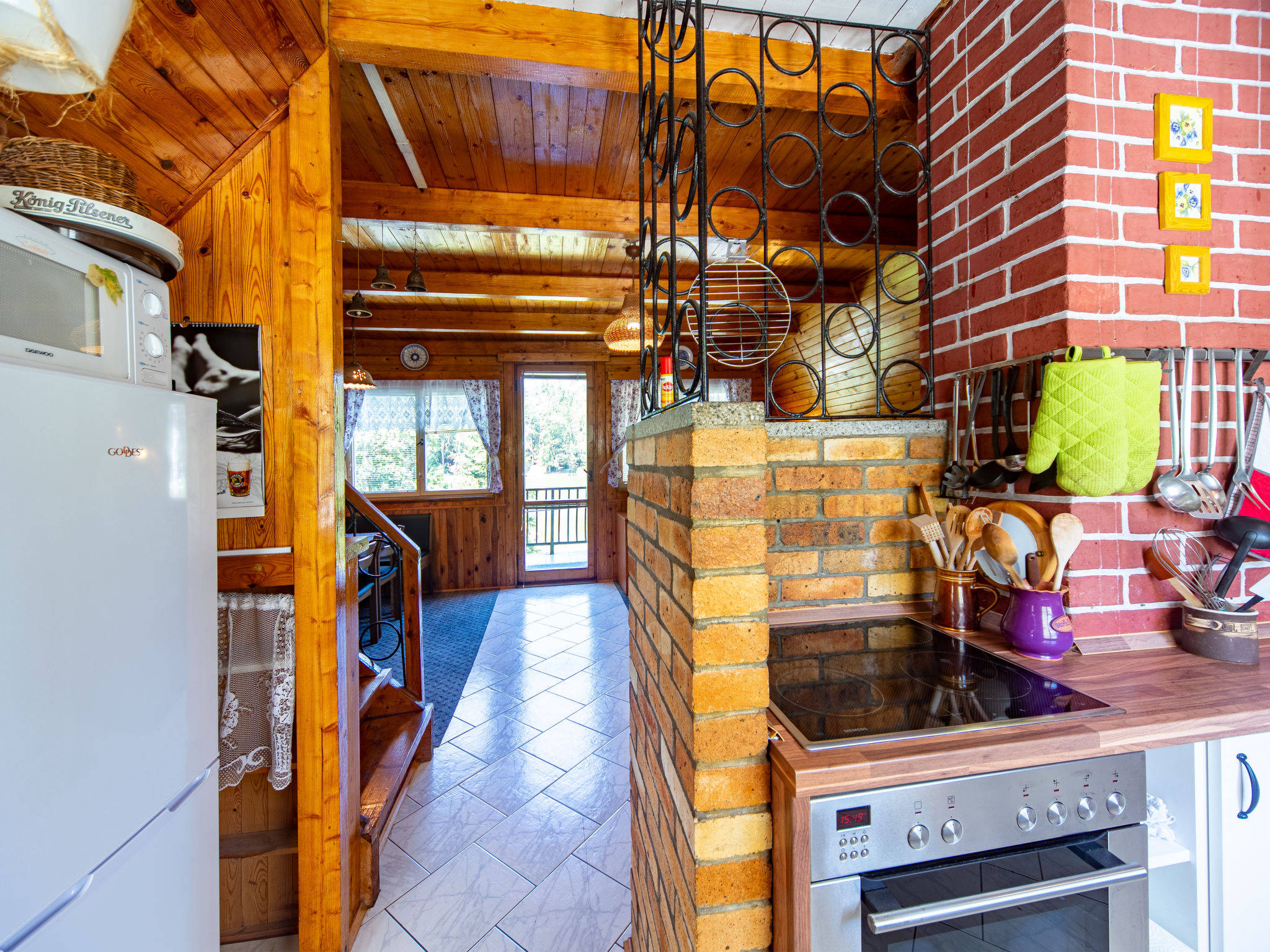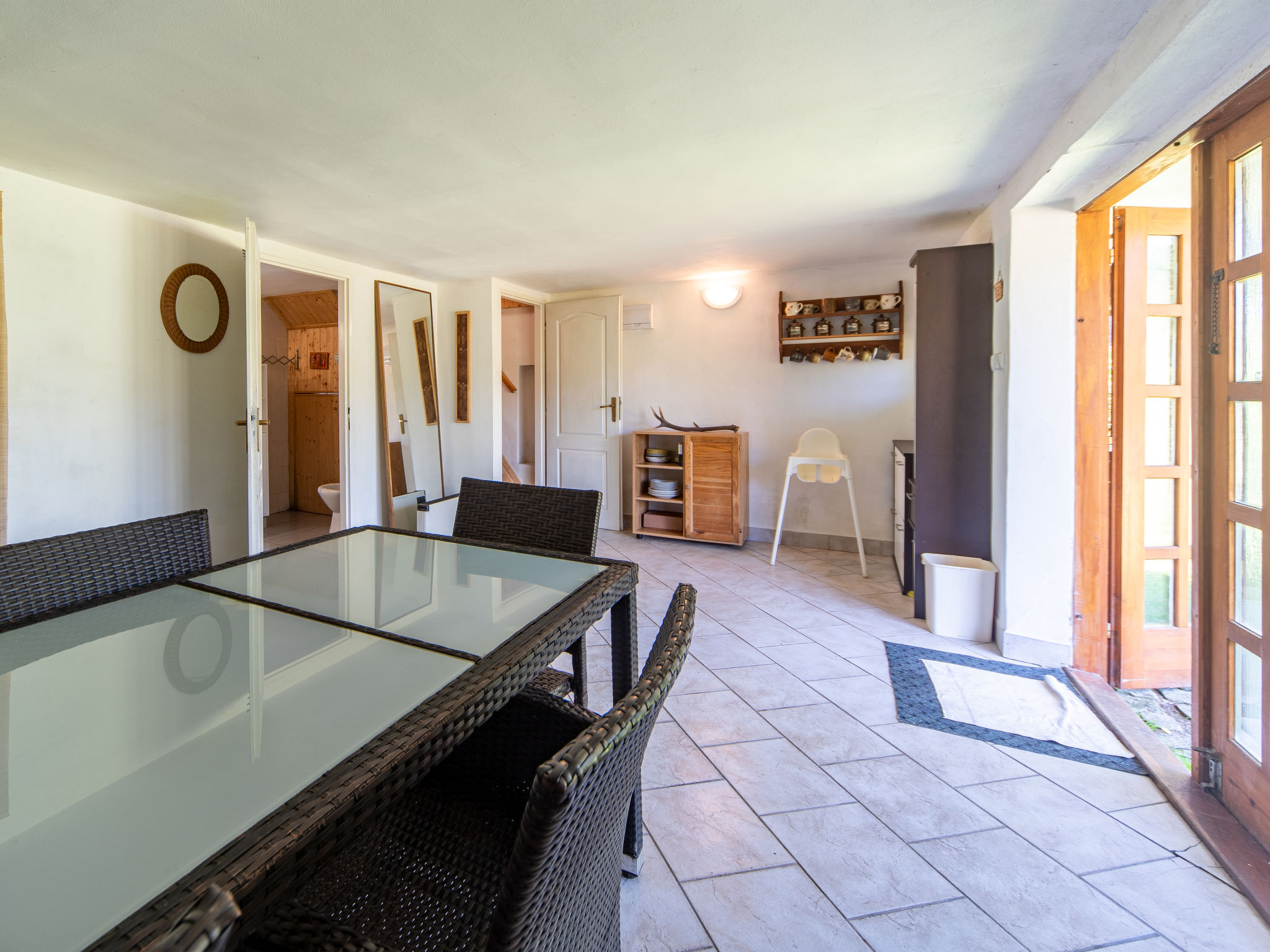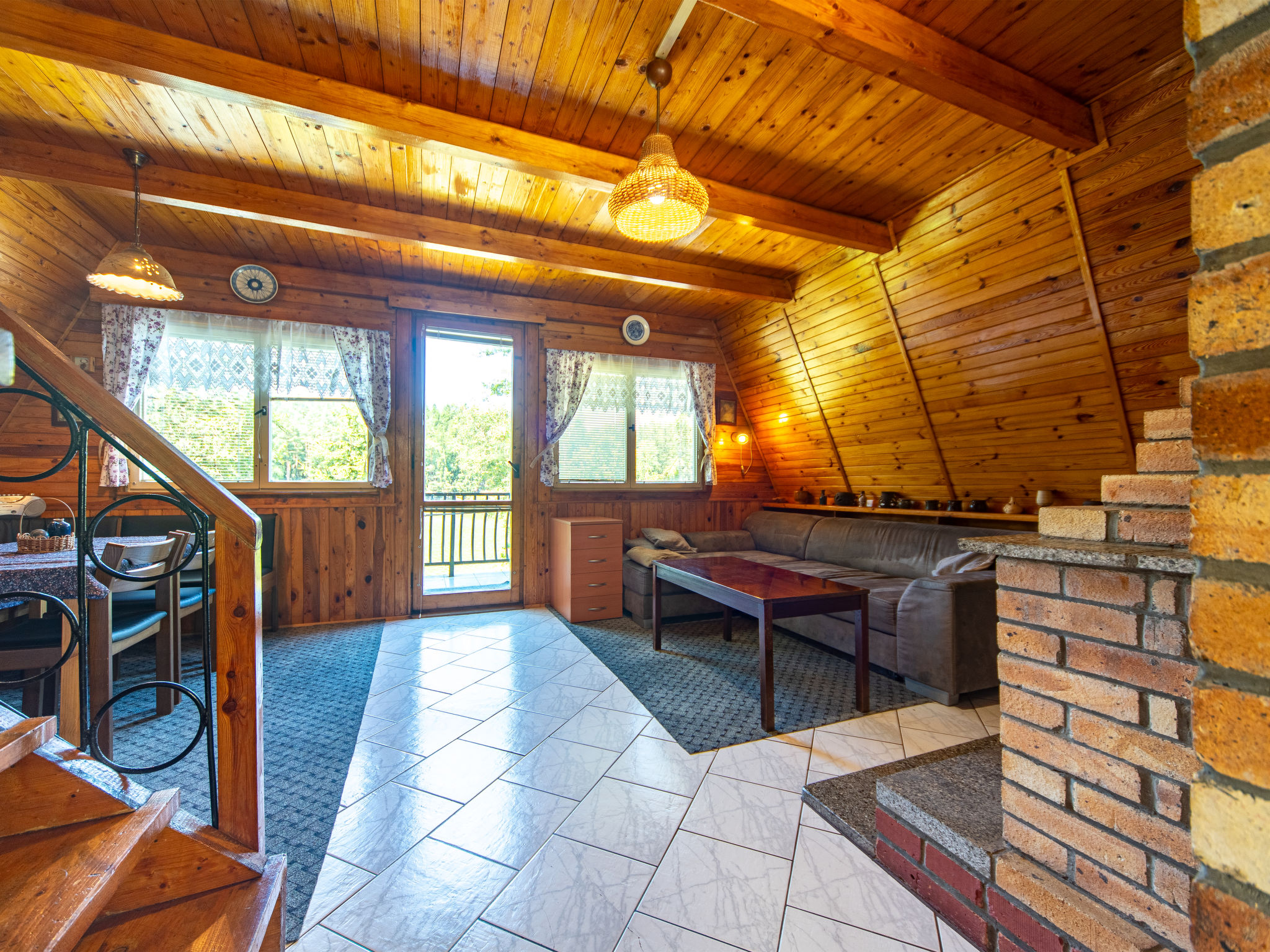 4-Zimmer-Haus 70 m2 auf 3 Stockwerken. Gemütlich eingerichtet: Wohnzimmer mit Sat-TV. Bad/Dusche/WC. Obergeschoss: Wohn-/Schlafzimmer mit 1 Doppeldiwanbett, offenem Kamin, Esstisch, Sat-TV, Radio und DVD. Ausgang zum Balkon. Offene Küche (4 Kochplatten, Backofen, Toaster, Wasserkocher, Mikrowelle, Tiefkühler, elektrische Kaffeemaschine). Dachgeschoss: abgeschrägtes kleines Durchgangszimmer mit 1 Doppelbett. 1 abgeschrägtes kleines Zimmer mit 1 Doppelbett. Grosser Balkon. Balkonmöbel, Gartengrill. Herrliche Sicht auf den See. Zur Verfügung: Kinderhochstuhl, Babybett (extra). Internet (Wireless LAN, gratis). Maximal 3 Haustiere/Hunde erlaubt.