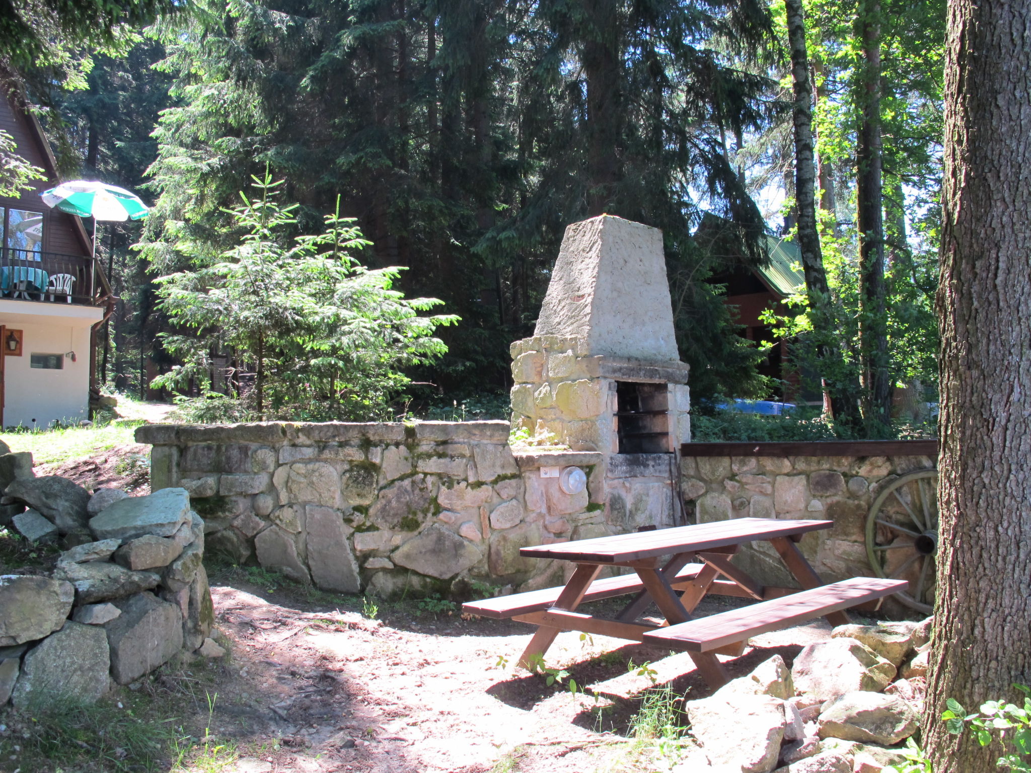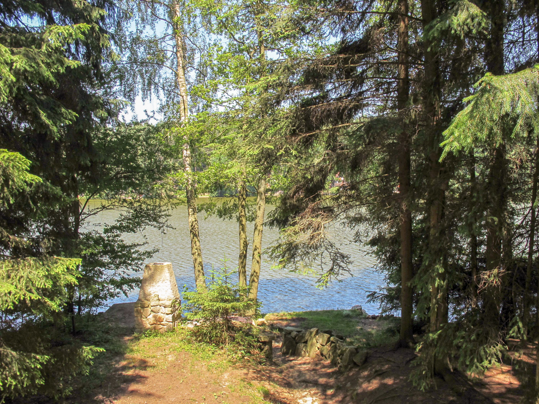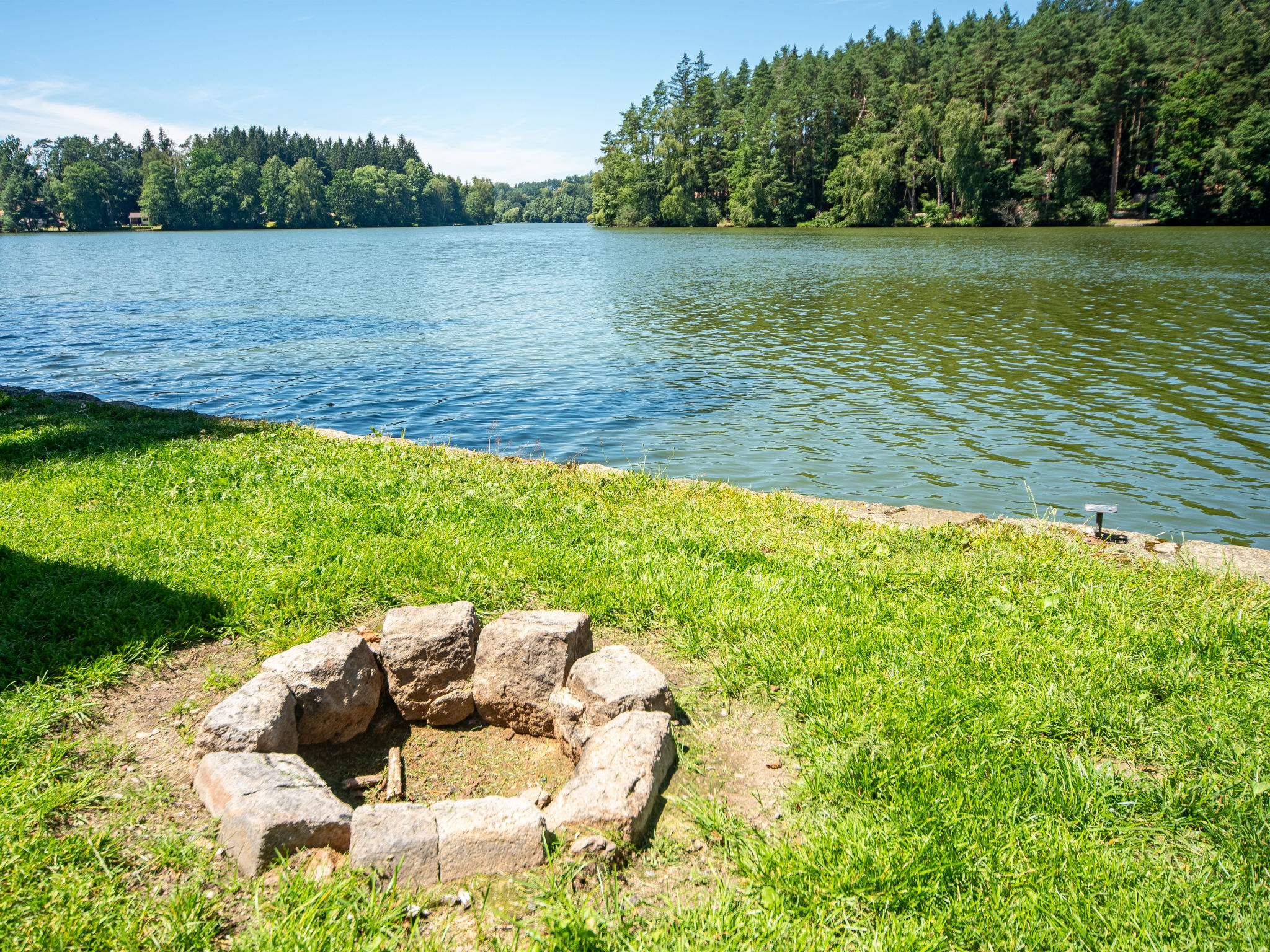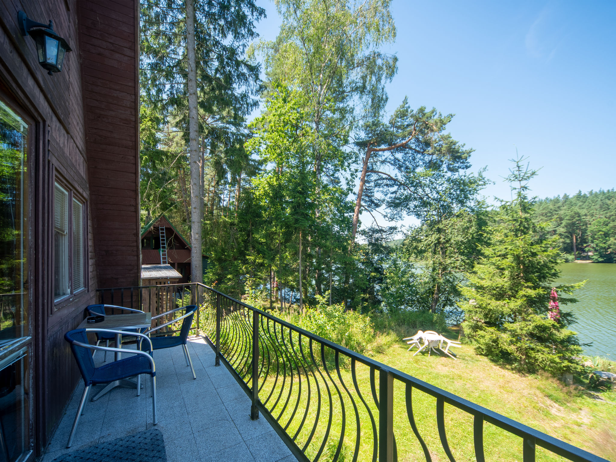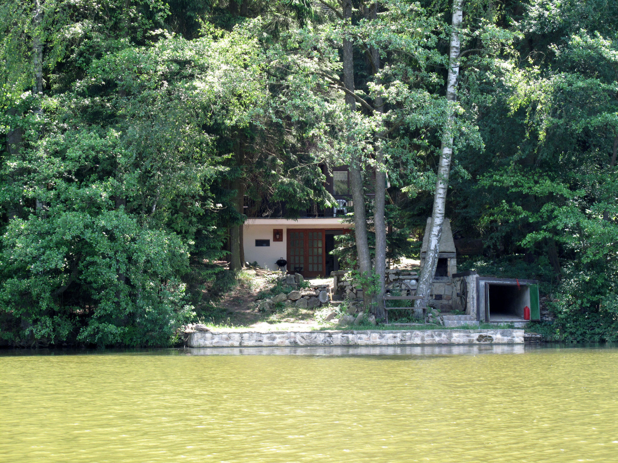 Alleinstehendes Chalet "Bily (SZV100)", 500 m.ü.M., auf 3 Stockwerken, umgeben von Bäumen. 3 km vom Zentrum von Střížovice, 12 km vom Zentrum von Jindřichův Hradec, 35 km vom Zentrum von Třeboň, ruhige Lage, 20 m vom See. Zur Alleinbenutzung: naturbelassenes Grundstück, Garten (nicht eingezäunt) Bäumen. Sitzplatz, Gartenmöbel, Feuerstelle, Badesteg. Im Hause: Fahrradverleih. Zur Verfügung: Kanu, Boot. 350 m lange schmale Zufahrt (350 m Naturweg). Parkplatz (für 2 Autos) auf dem Grundstück. Einkaufsgeschäft 3 km, Supermarkt 12 km, Restaurant 3 km, Bushaltestelle "Střížovice" 3 km, Bahnstation "Střížovice" 500 m, Freibad 12 km, Hallenbad 12 km, Badesee "Ratmírovský rybník" 20 m. Wanderwege ab Haus, Radweg 10 m. Bitte beachten: Babyausstattung (extra).