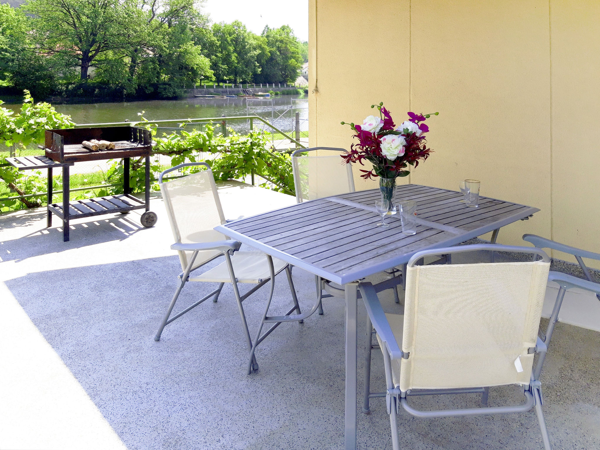 4-Zimmer-Haus 150 m2 auf 2 Stockwerken. Renoviert im Jahre 2012, gemütlich eingerichtet: Wohnzimmer mit Sat-TV, Radio und CD. 1 Zimmer mit 3 Betten. Offene Küche (Backofen, 4 Glaskeramikherd Platten, Toaster, Wasserkocher, Mikrowelle, elektrische Kaffeemaschine) mit Esstisch. Dusche, sep. WC. E-Heizung. Obergeschoss: 1 Zimmer mit 2 Betten und 1 Klappbett. 1 Zimmer mit 2 Betten. Dusche, sep. WC. E-Heizung. Terrasse. Terrassenmöbel, Gartengrill (mobil). Herrliche Sicht auf den Fluss. Zur Verfügung: Kinderhochstuhl, Babybett. Internet (Wireless LAN, gratis). Maximal 2 Haustiere/Hunde erlaubt.