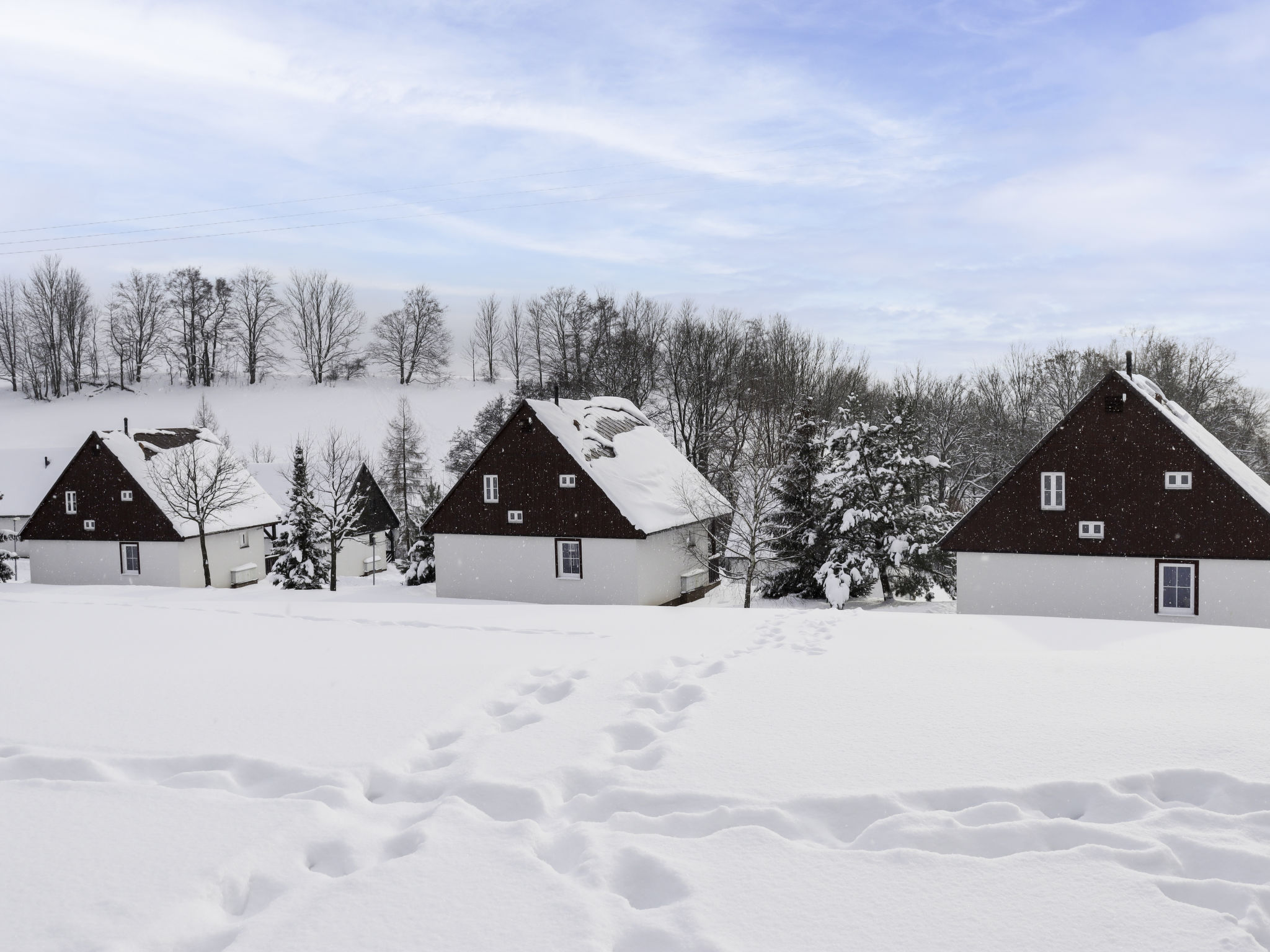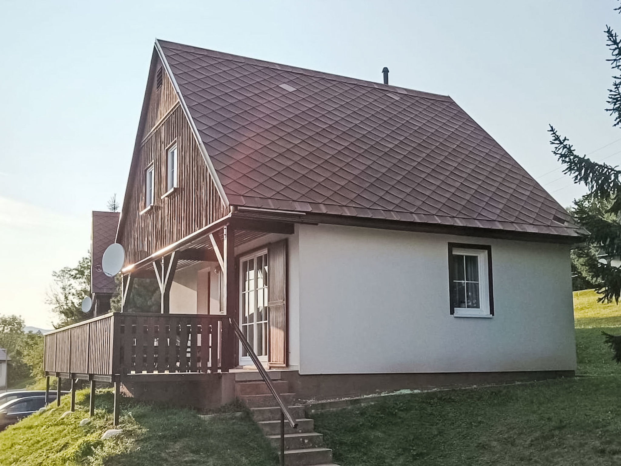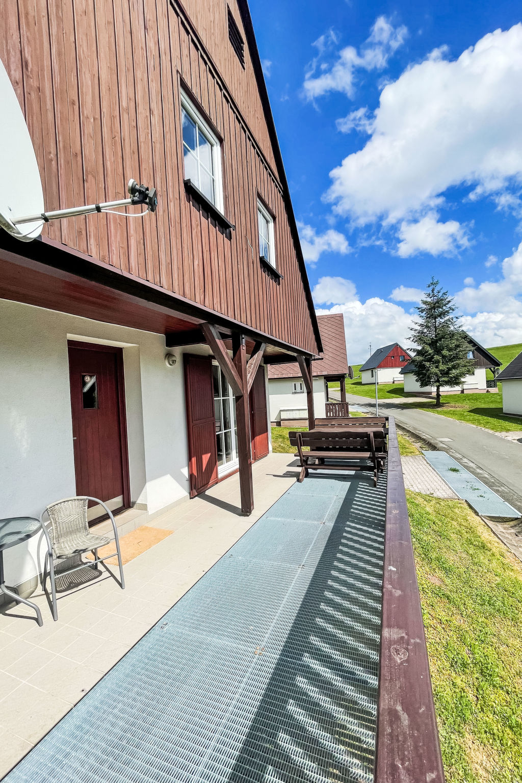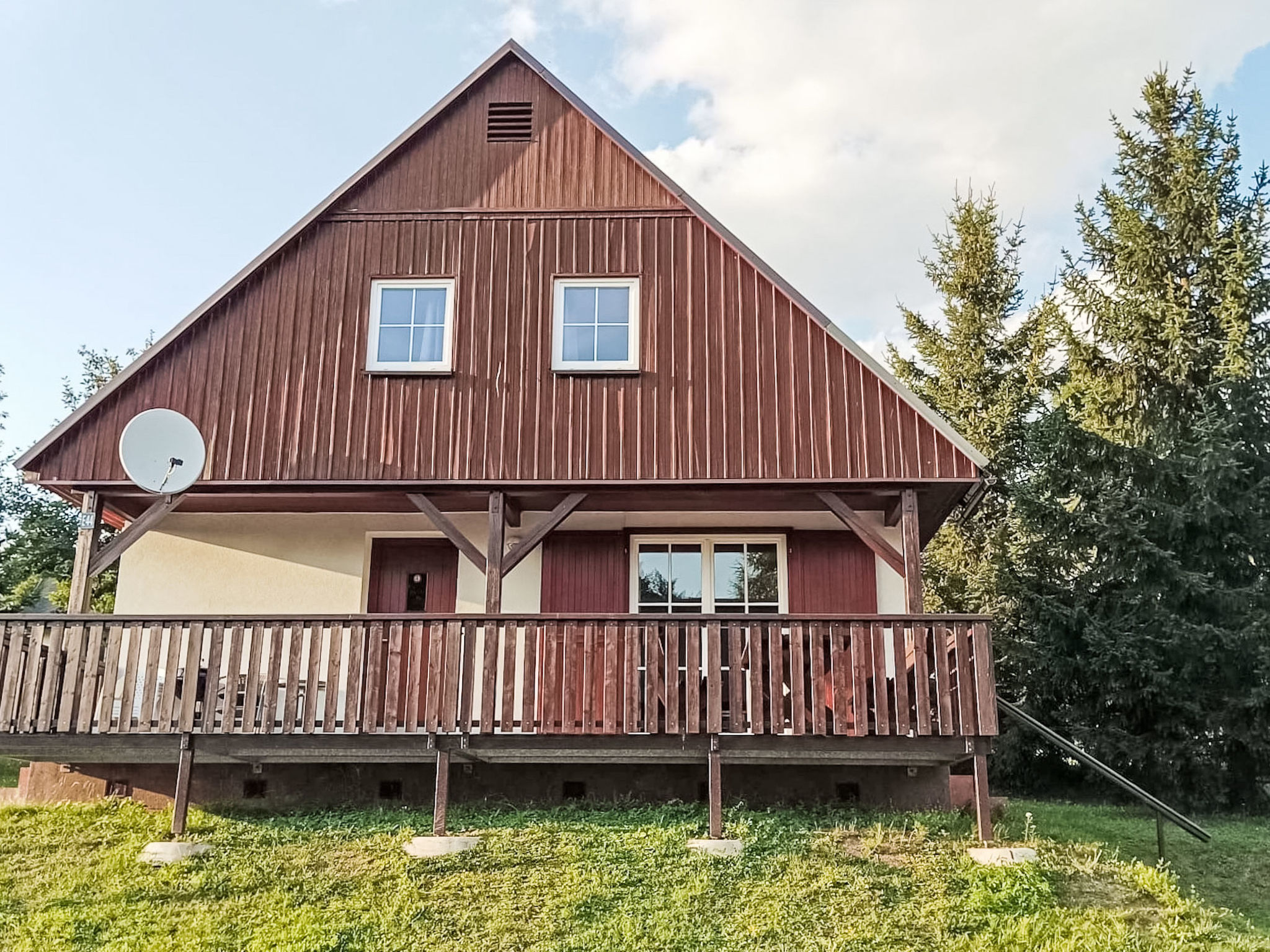Čistá v Krkonoších 2 km von Černý Důl: Kinderfreundliches, schönes, komfortables Feriendorf "Holiday Hill", 500 m.ü.M., umgeben von Bäumen und Wiesen. 43 Häuser im Ferienresort. Am Ortsrand, alleinstehende, ruhige, sonnige Lage, 1.5 km vom See, 3 km vom Skigebiet, im Grünen. Zur Mitbenutzung: Grundstück 6 ha, Wiese, Schwimmbad beheizt (9 x 4 m, 120 cm tief, saisonale Verfügbarkeit: 01.Jun.-26.Sep. Öffnungszeiten Schwimmbad: 09:00-20:00). Dusche/WC im Poolbereich, Tischtennis, Kinderspielplatz (Schaukel, Sandkasten). In der Anlage: Empfang. Parkplatz (für 2 Autos) beim Haus. Einkaufsgeschäft 2.5 km, Lebensmittelgeschäft 2.5 km, Supermarkt 7.5 km, Restaurant 1.6 km, Biergarten 400 m, Bushaltestelle "Černý Důl, Čistá-pošta" 400 m, Sandstrand 1.5 km (klein), Hallenbad 19 km. Golfplatz (18 Loch) 14 km, Tennis 2.5 km, Sportzentrum 2.5 km, Wanderwege ab Haus, Radweg 100 m, Skilift 3 km, Sessellift 3 km, Skipisten 3 km, Skibushaltestelle 100 m, Skischule 3 km, Kinderskischule 3 km, Schlittelbahn 7 km, Langlaufloipe 100 m. Nahe gelegene Sehenswürdigkeiten: Janské Lázně Spa 9 km, Vrchlabí 10 km, Aquapark Trutnov 25 km, Zoo Safari Dvůr Králové 29 km, Bozkovské jeskyně 37 km, Adršpašské skály 44 km. Bekannte Skigebiete sind gut erreichbar: Černý Důl 3 km, Herlíkovice 15 km, Pec pod Sněžkou 22 km. Bekannte Seen in der Umgebung sind gut erreichbar: Čistá 1.5 km, Vrchlabí 9 km. Wandergebiete: Sněžka 25 km.