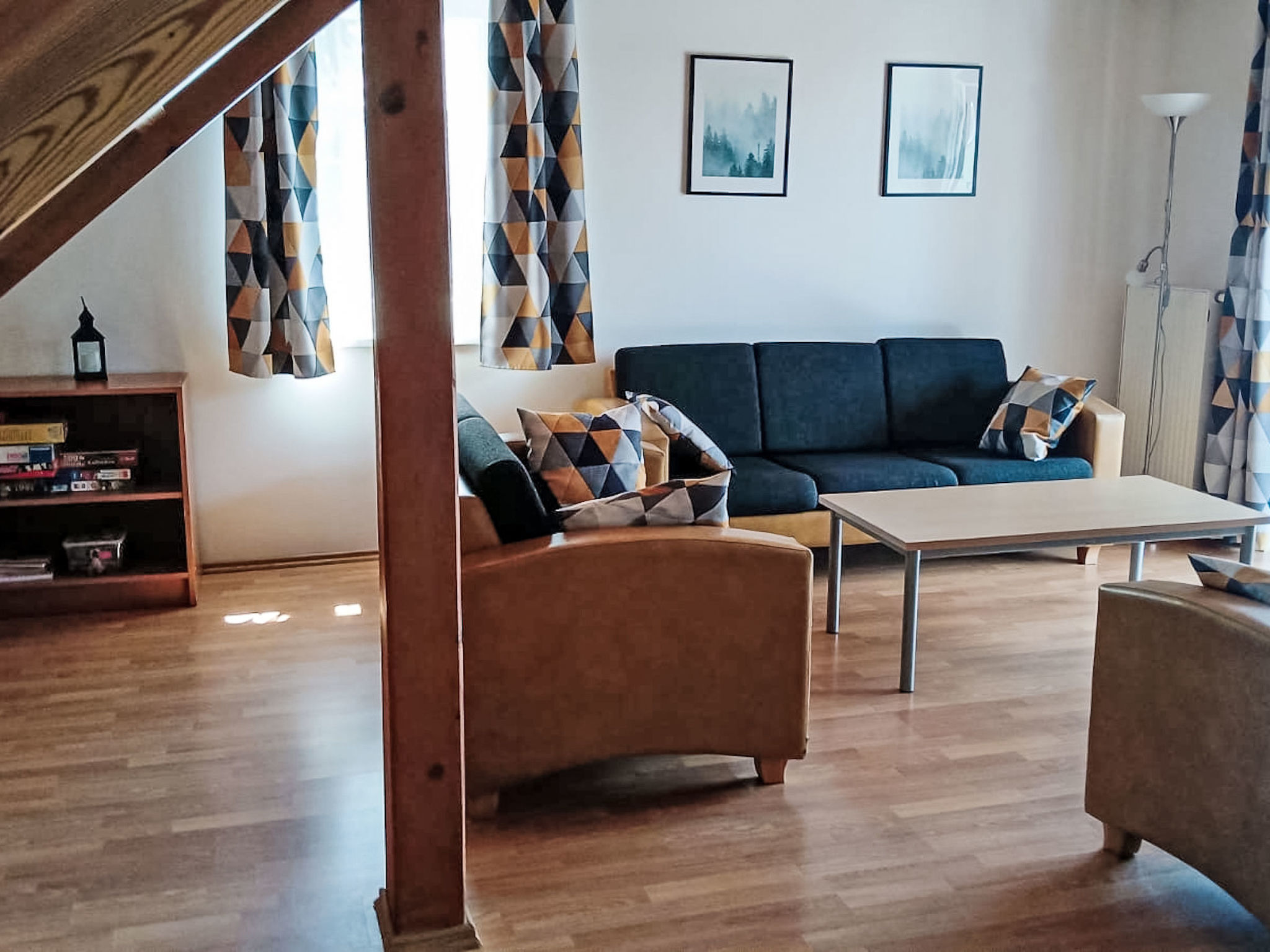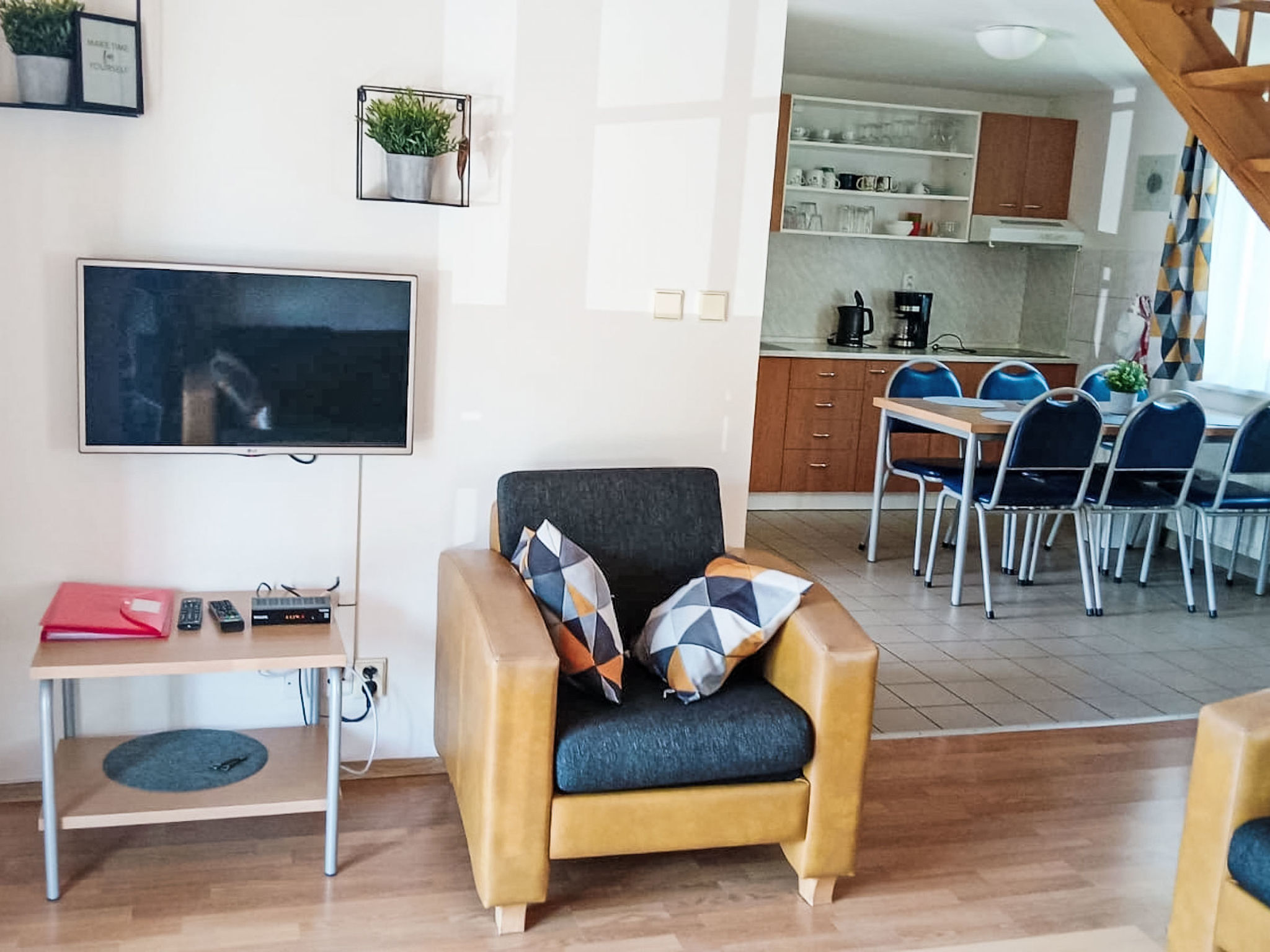 4-Zimmer-Haus 100 m2 auf 2 Stockwerken. Hell, komfortabel und gemütlich eingerichtet: offenes Wohnzimmer mit Sat-TV. Ausgang zur Terrasse. Küche (4 Kochplatten, Toaster, Wasserkocher, Mikrowelle, Tiefkühler, Fondue Set (Käse)) mit Esstisch. Sep. WC. Obergeschoss: 3 Zimmer, jedes Zimmer mit 2 Betten. Bad/WC. Kleine Terrasse. Terrassenmöbel. Zur Verfügung: Waschmaschine, Babybett. Internet (Wireless LAN, gratis). Bitte beachten: geeignet für Familien. Nichtraucher-Haus. 2 Haustiere/Hunde erlaubt.
