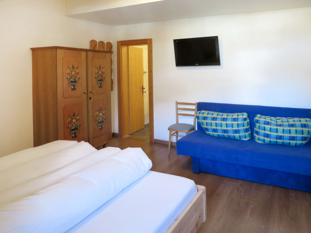 3-Zimmer-Wohnung, 2. Etage (leichte Dachschräge), ca. 55 m². Wohnküche mit Küchenzeile (4 Ceranfelder, Backofen, Kühlschrank, Kaffeemaschine, Wasserkocher), Essplatz (Eckbank) und Balkonausgang. Schlafzimmer mit Doppelbett, Einzelbett und Dusche/WC. Außerhalb der abgeschlossenen Wohnung: Doppelzimmer mit Waschbecken, Dusche/WC. Bei Belegung mit weniger Personen als der maximalen Personenzahl stehen nicht alle Wohneinheiten zur Verfügung.
