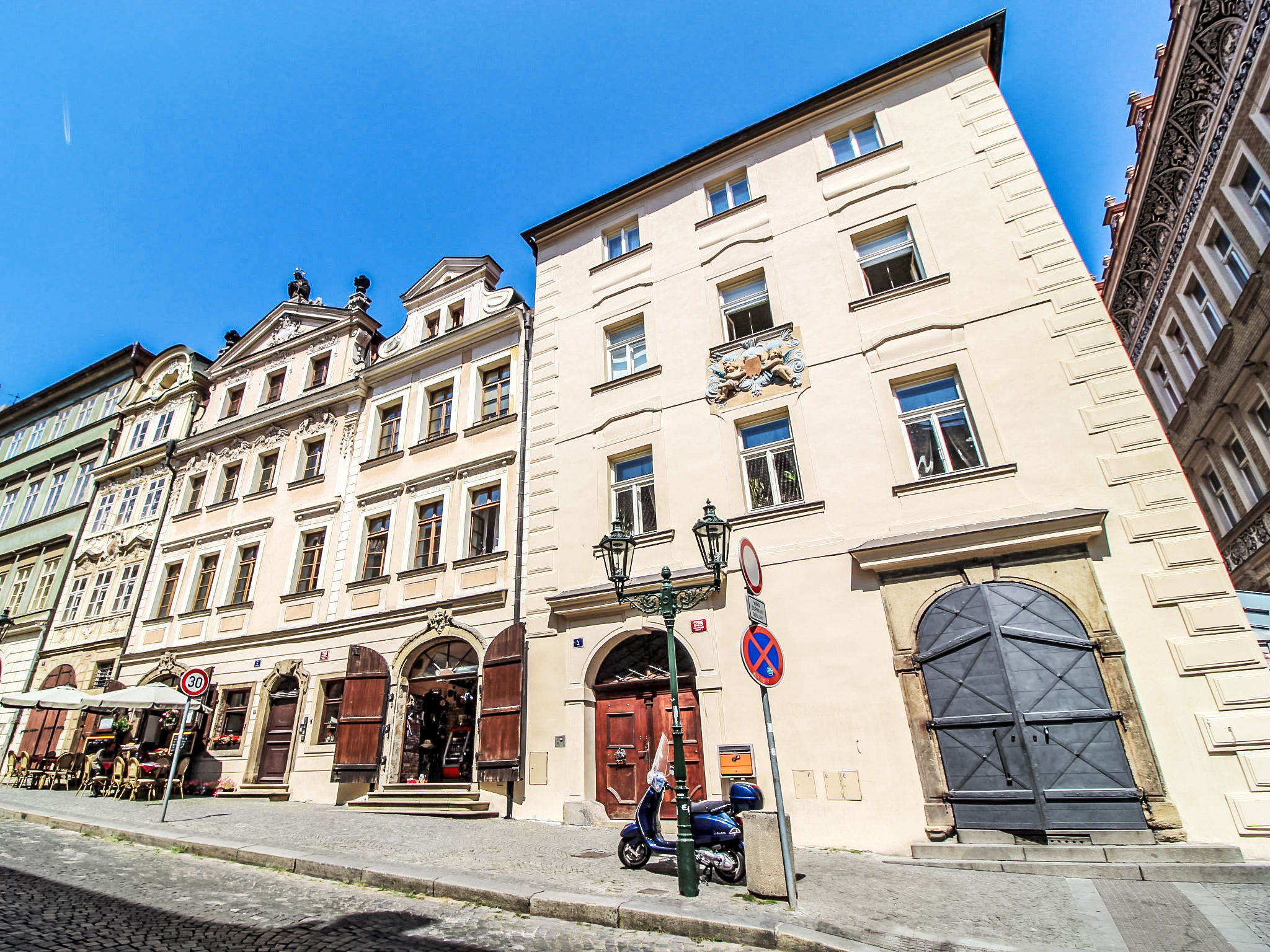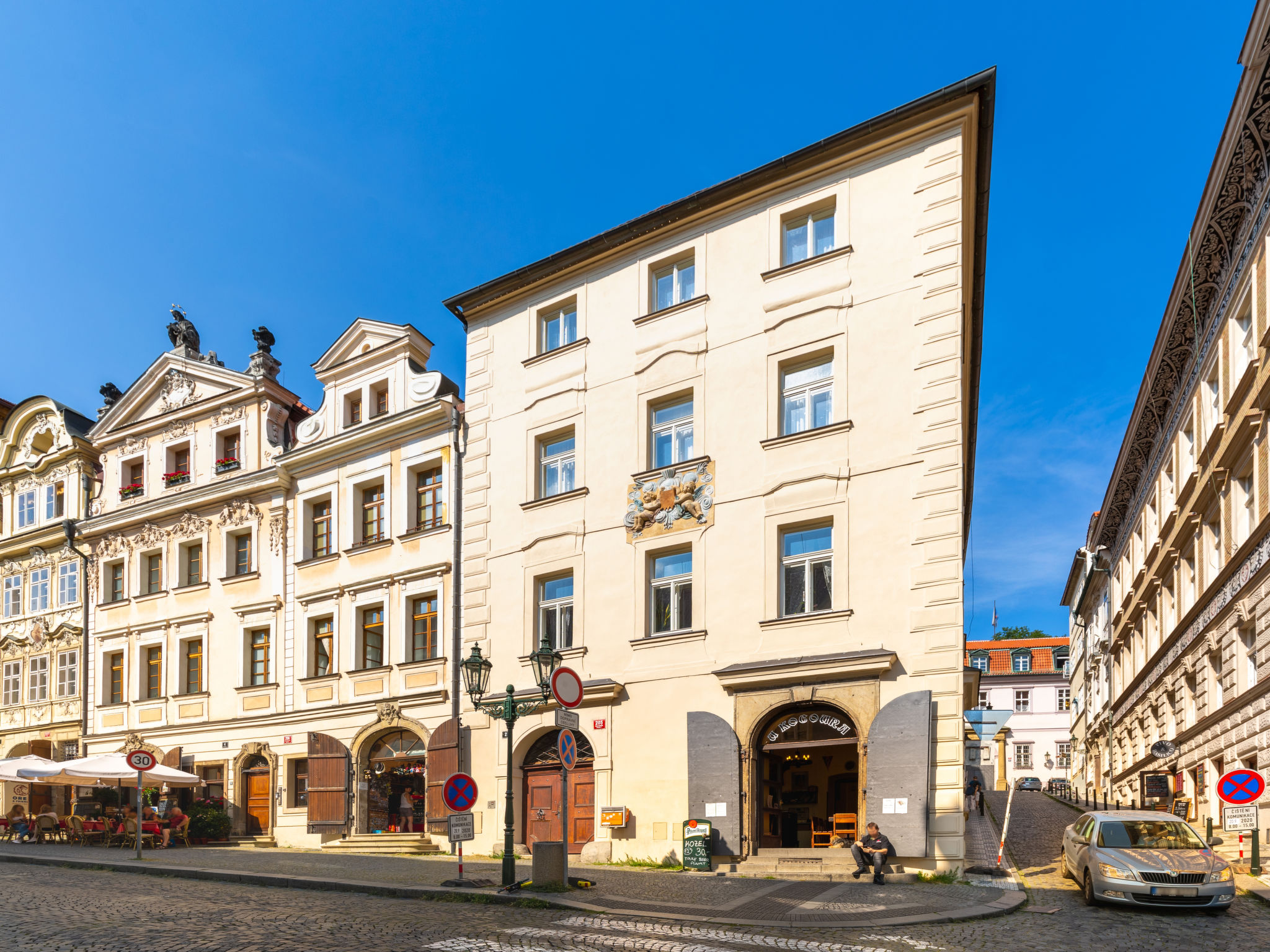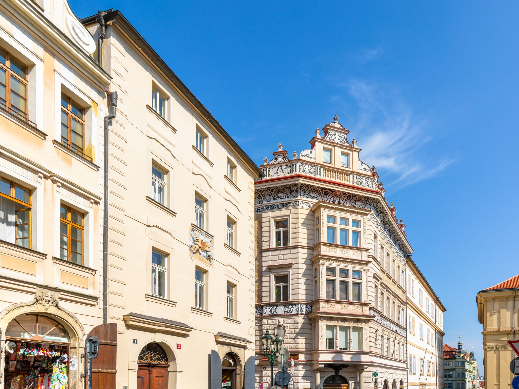 Historisches Appartementhaus. Im Ortsteil Malá Strana, im Ortszentrum von Praha, im Herzen der Stadt, 500 m vom Fluss. Zufahrt bis zum Haus. Öffentliche Parkplätze auf der Strasse extra. Einkaufsgeschäft 50 m, Lebensmittelgeschäft 200 m, Restaurant 10 m, Café 50 m, Straßenbahn "Malostranské náměstí" 200 m, Bushaltestelle "Nerudova" 50 m, U-Bahnstation "Malostranská" 800 m, Freibad 5 km, Hallenbad 2.5 km. Golfplatz 5 km, Tennis 5 km, Sportzentrum 1.4 km, Kinderspielplatz 700 m. Nahe gelegene Sehenswürdigkeiten: Chrám Sv. Mikuláše, Karlův most, Pražský Hrad, Staroměstské náměstí, Petřínská věž, Vyšehrad. Bitte beachten: kein Fahrstuhl vorhanden.