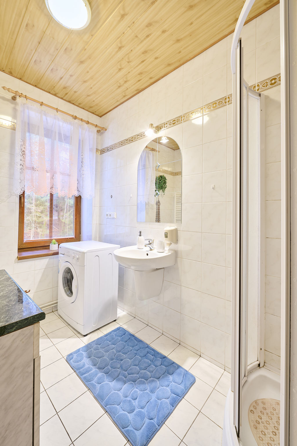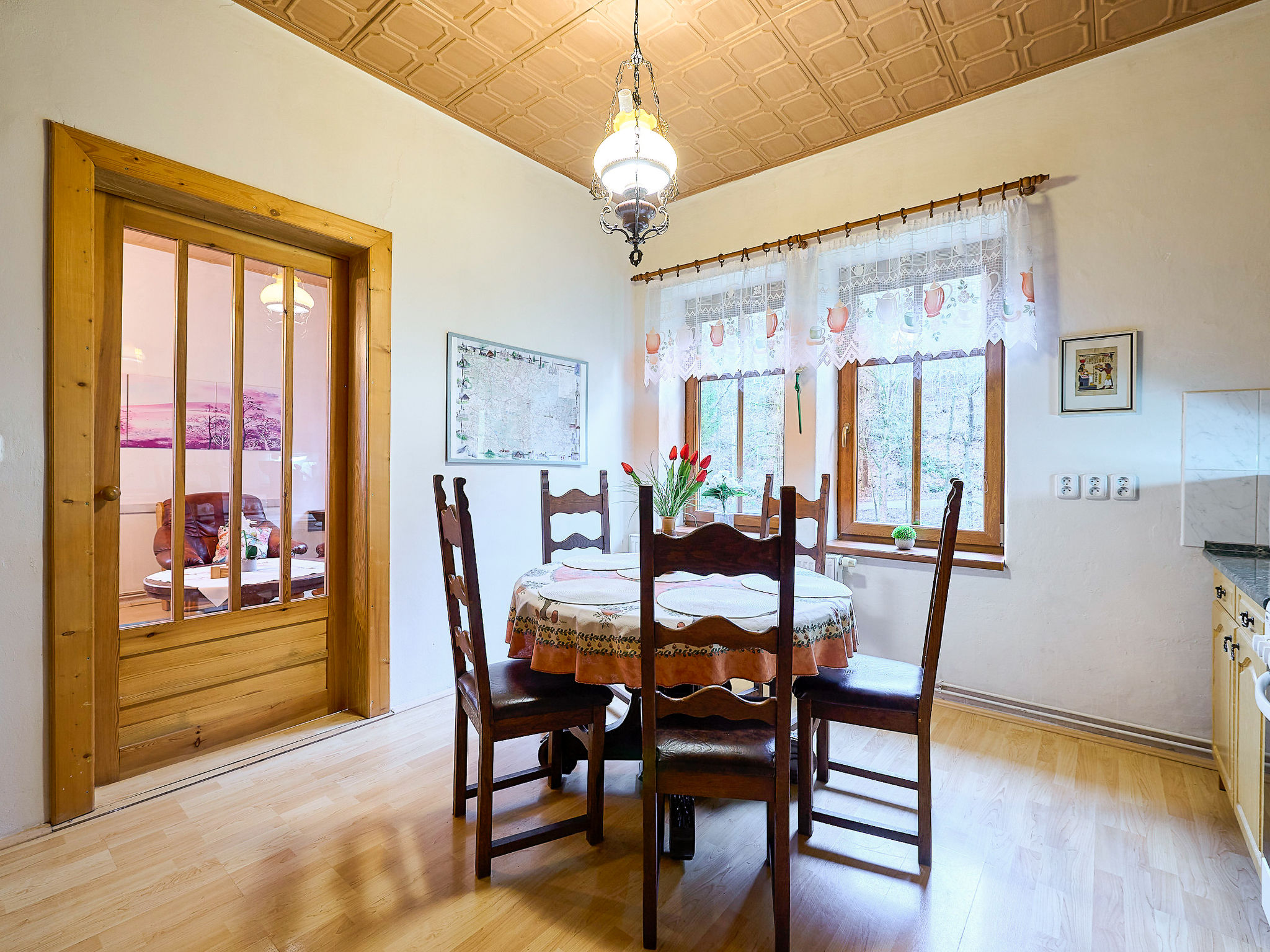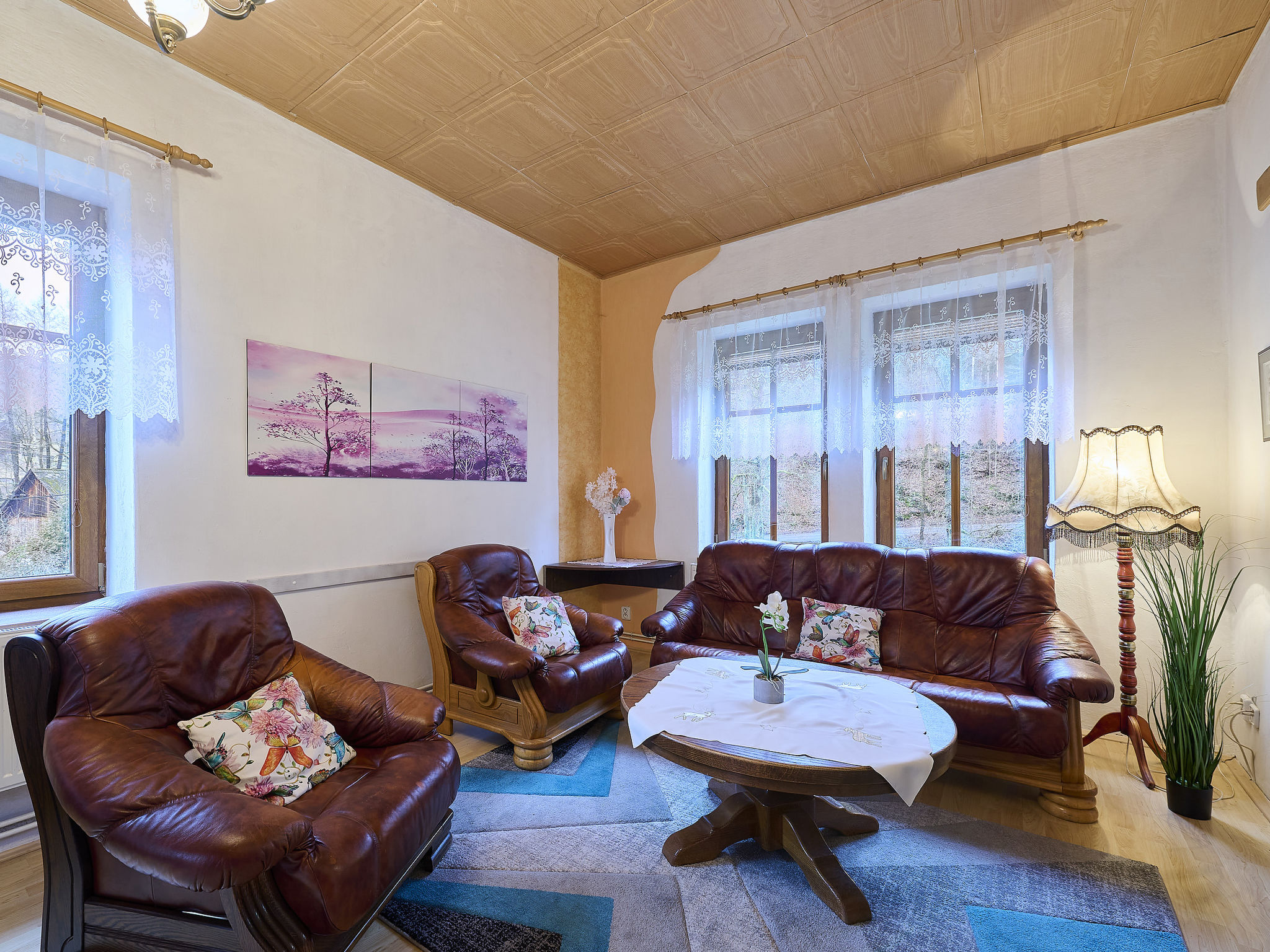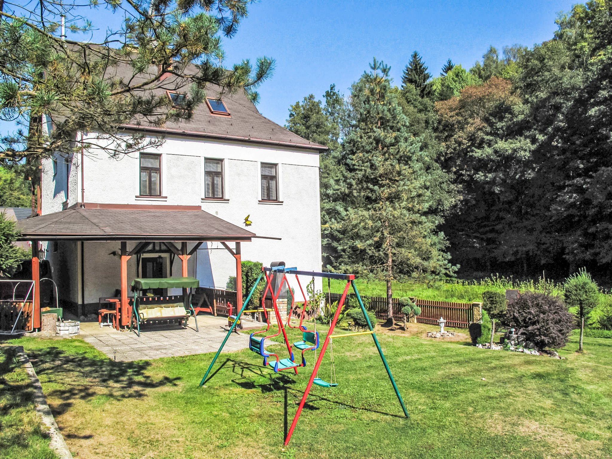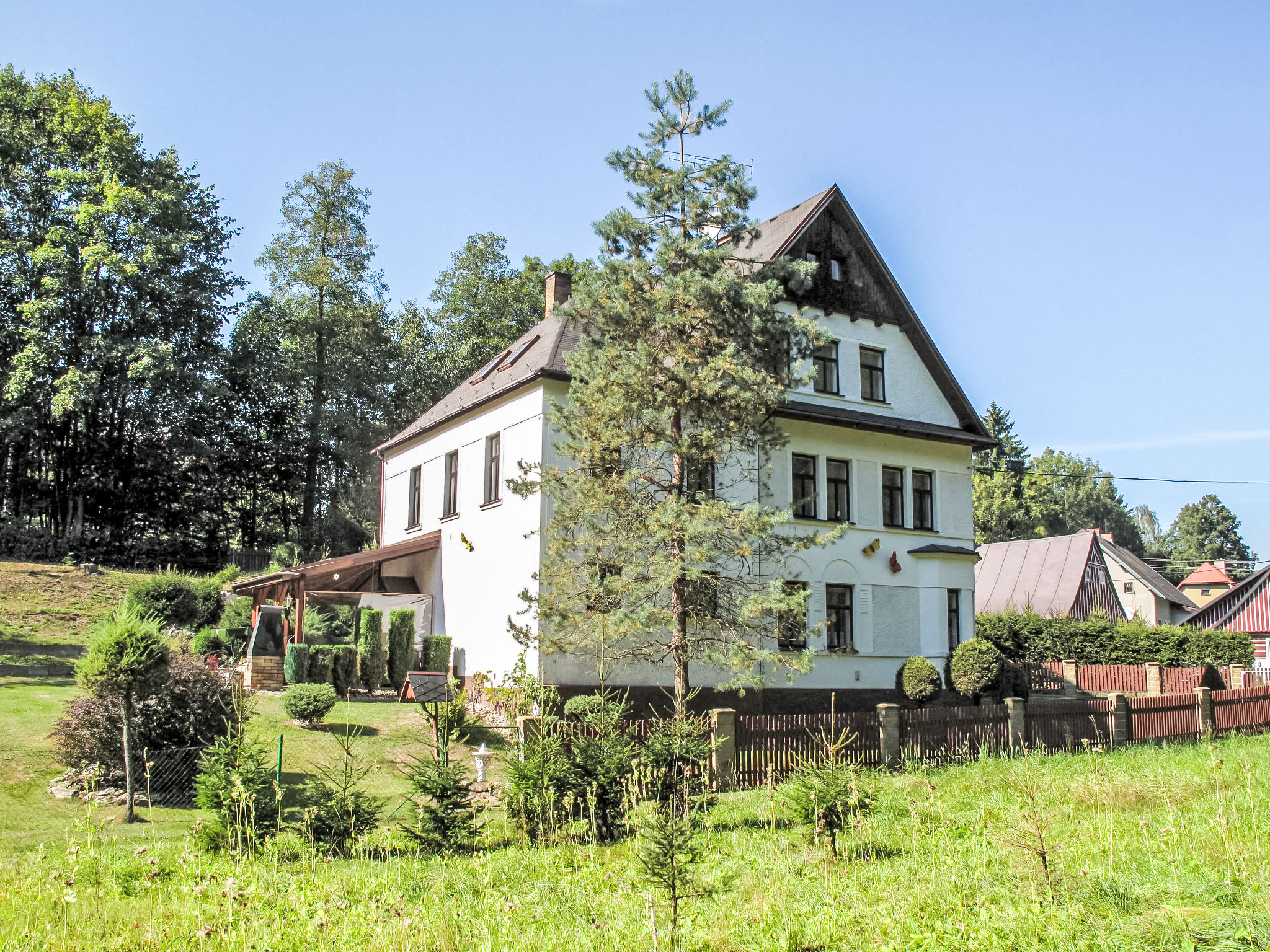 Zlatá Olešnice, 16 km von Tanvald: Die ehemalige Mühle mit eigenem Kraftwerk ist heute eine Villa für Familien. Sie befindet sich am Bach Zlatnik, an romantischer Lage. Ideal für Familien mit Kindern. Schönes, historisches Einfamilienhaus "Zlata Olesnice", auf 2 Stockwerken, renoviert im Jahre 2004. Unterhalb von Zlatá Olešnice, am Ortsrand, alleinstehende, ruhige, sonnige Lage, 50 m vom Waldrand, 20 m vom Bach, in einer Sackgasse, im Grünen. Zur Alleinbenutzung: Grundstück 4'000 m2, Garten 1'000 m2 (eingezäunt) mit Rasen und Bäumen, Teich. Sitzplatz (20 m2), Terrasse (30 m2), Gartenmöbel, Grill, Feuerstelle, Kinderspielplatz (Rutschbahn, Schaukel). Im Hause: Skiraum, Zentralheizung, Waschmaschine. Zufahrt bis zum Haus. Parkplatz (überdacht) beim Haus. Lebensmittelgeschäft, Restaurant 800 m, Bushaltestelle 300 m, Freibad 800 m, Hallenbad 20 km. Skilift 1.5 km, Skisportanlagen 18 km, Skipisten 5 km, Skischule 18 km, Kinderskischule 5 km, Langlaufloipe 50 m.