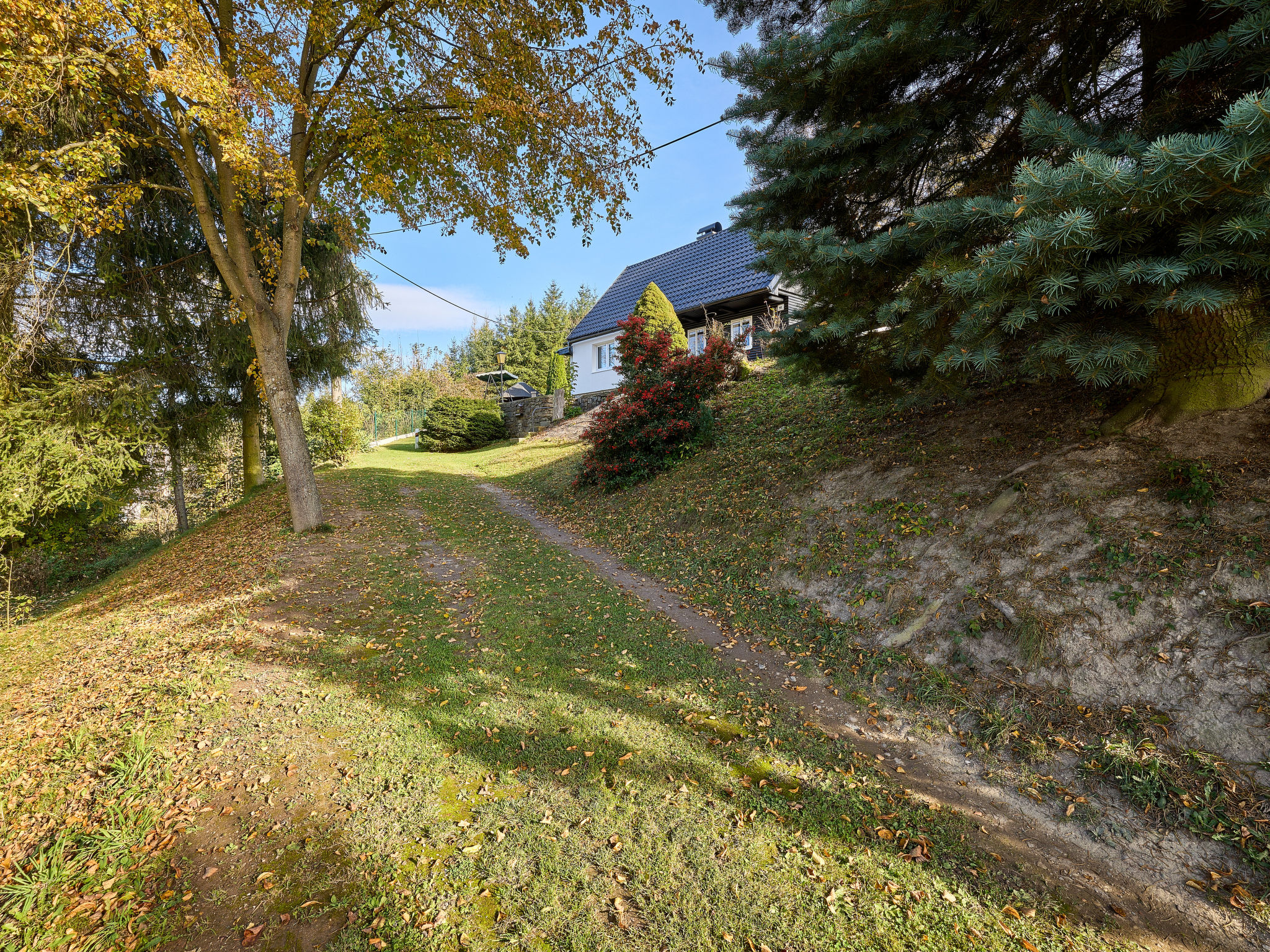 Alleinstehendes Landhaus "Ludek (KNY110)", auf 2 Stockwerken. 300 m vom Zentrum von Kvasiny, 12 km vom Zentrum von Dobruška, in einem Wohnquartier, 12 km vom See. Zur Alleinbenutzung: Grundstück 400 m2, Rasen und Bäumen, Schwimmbad (6 x 3 m, 100 cm tief, 16.05.-12.09.). Laube, Gartenmöbel, Grill (Schaukel). 30 m lange steile Zufahrt. Parkplatz (für 2 Autos) auf dem Grundstück. Einkaufsgeschäft 300 m, Supermarkt 9 km, Grasstrand 12 km, Freibad 9 km, Badesee "Broumar" 12 km. Nahe gelegene Sehenswürdigkeiten: Rychnov nad Kněžnou 9 km, Opočno 12 km, Nové Město nad Metují 24 km, Náchod 30 km. Bekannte Seen in der Umgebung sind gut erreichbar: Broumar 12 km, Rozkoš 25 km.