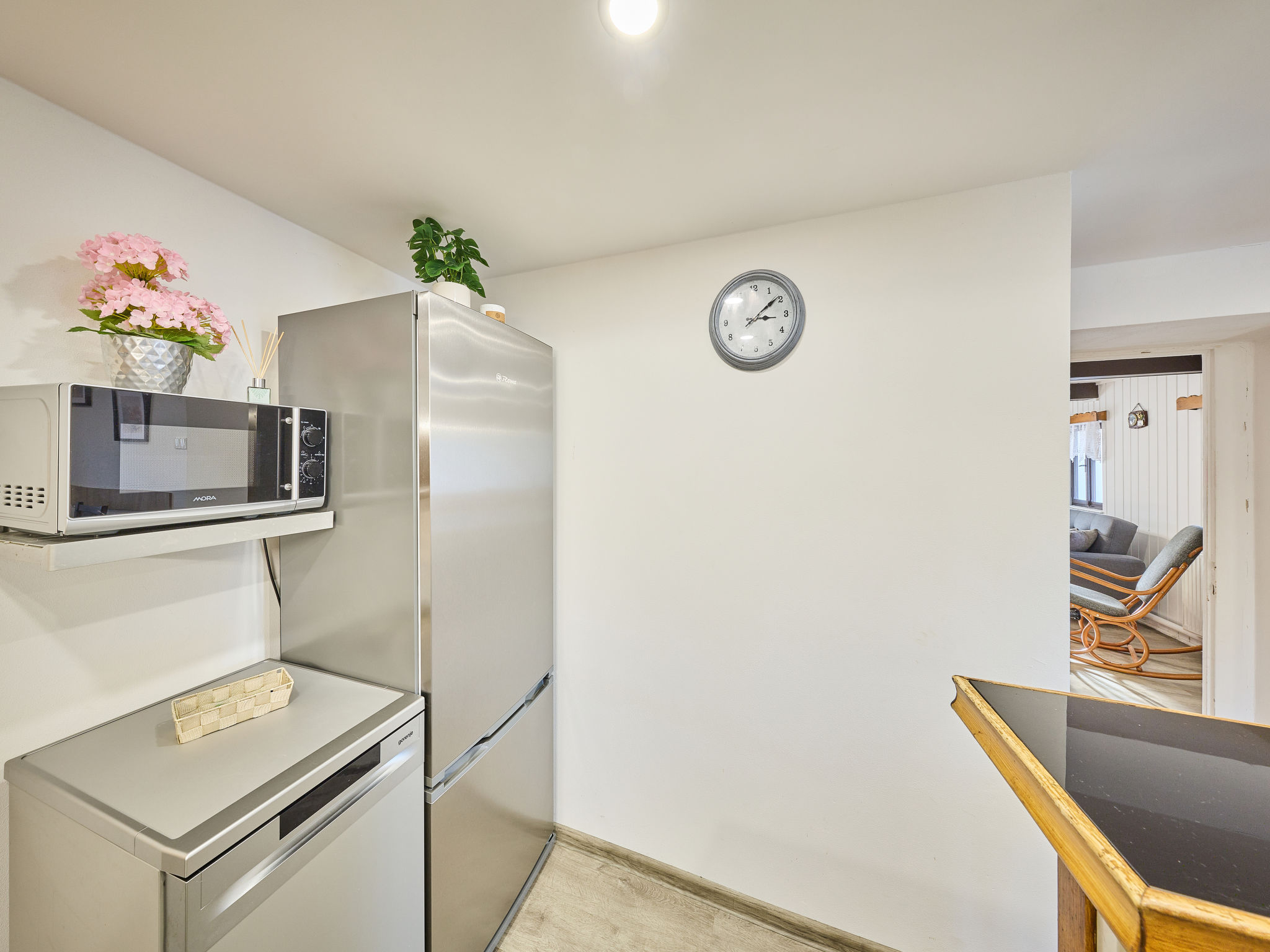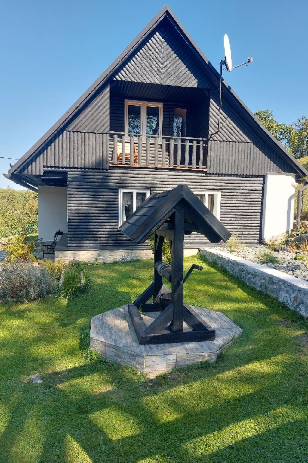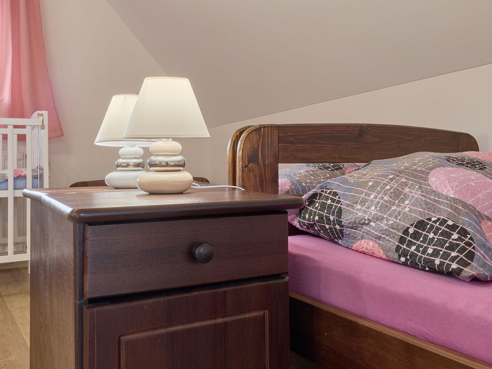 3-Zimmer-Haus 80 m2 auf 2 Stockwerken. Zweckmässig eingerichtet: Wohnzimmer mit Schwedenofen und Sat-TV. Kleine Küche (Backofen, 4 Glaskeramikherd Platten, Toaster, Wasserkocher, Mikrowelle, elektrische Kaffeemaschine) mit Esstisch. Bad, sep. WC. Obergeschoss: abgeschrägtes Durchgangszimmer mit 1 Bett und 1 Doppelbett. 1 abgeschrägtes Zimmer mit 3 Betten. Zur Verfügung: Kinderhochstuhl, Babybett. Internet (Wireless LAN, gratis). 2 kleine Haustiere/Hunde erlaubt.