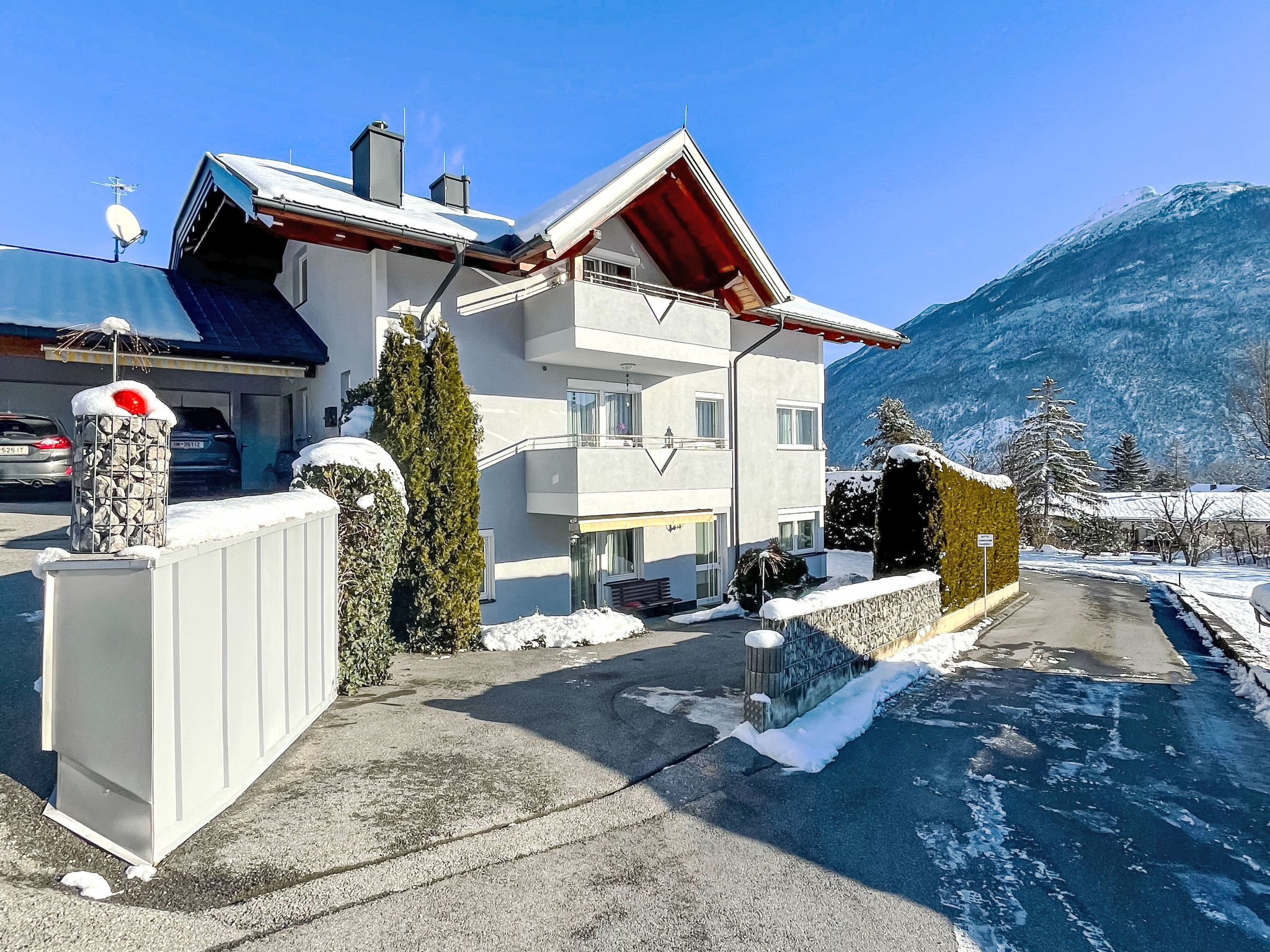 Das Zweifamilienhaus LANDHAUS FRISCH mit der Ferienwohnung und der Wohnung des Besitzers steht oberhalb des Ortes in schöner Aussichtslage. Ortsmitte Imst ca. 750 m. Freibad ca. 1,5 km. Zufahrt auf ansteigender Stichstraße. Das ca. 500 m² große Rasengrundstück in leichter Hanglage ist terrassiert, schöne Spiel-/Liegewiese. 2 Privatparkplätze am Haus. Zur Ferienwohnung gehört eine Terrasse mit Mobiliar, 2 Liegestühlen und direktem Zugang zur Spiel-/Liegewiese. Die helle, nach Osten und Süden ausgerichtete Wohnung ist gut und ansprechend eingerichtet. Fliesen- und Laminatboden. Sat-TV. Internetzugang (WLAN, € 2/Tag). Öl-Zentralheizung. Winter-Infos: Skigebiet Hoch-Imst 1,7 km. Langlaufloipe ca. 1 km. Rodelbahn ca. 2 km. Im Haus Skiabstellplatz im Heizraum.