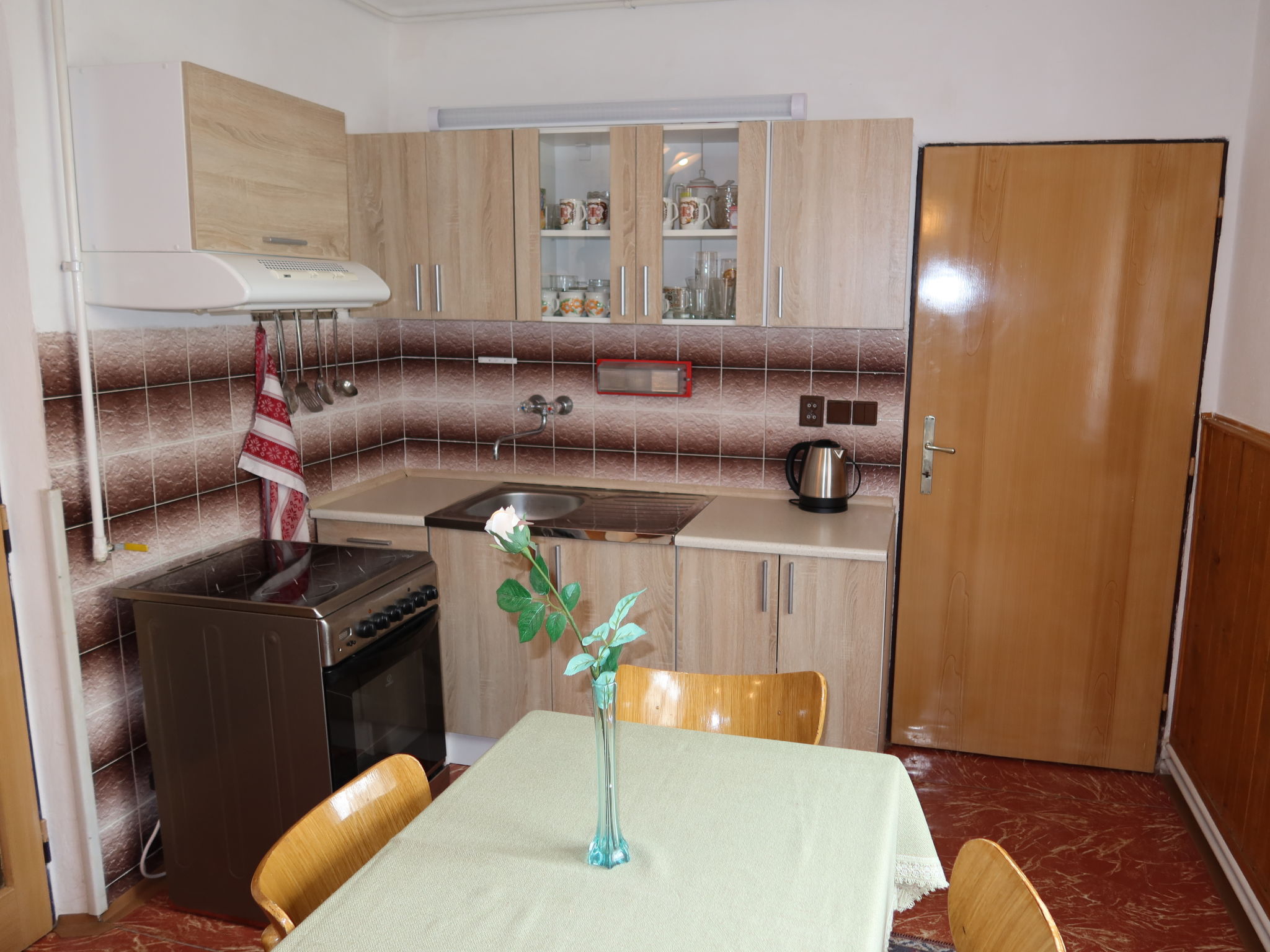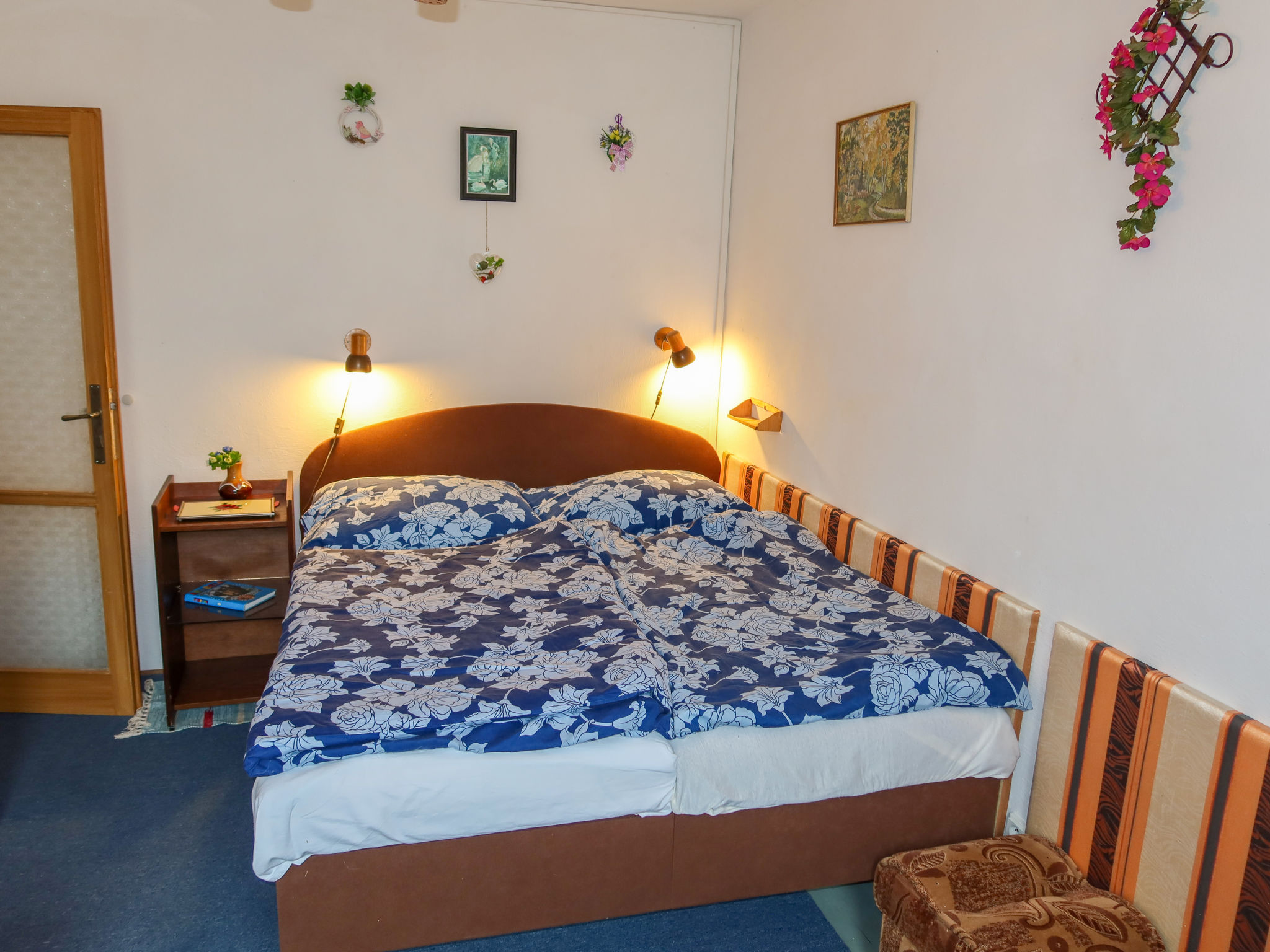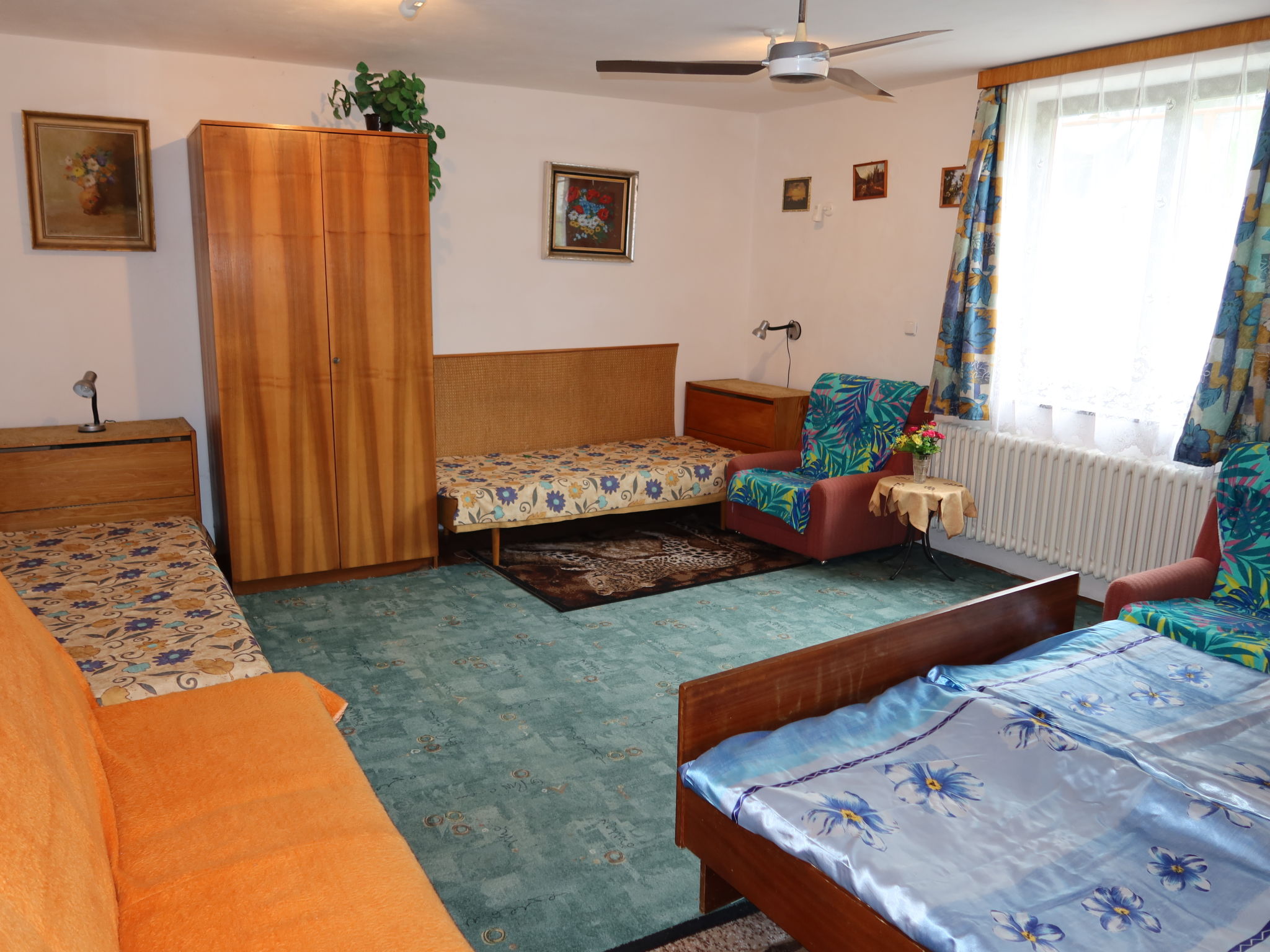 3-Zimmer-Haus. Geräumig, gemütlich eingerichtet: Wohnzimmer mit 2 Diwanbetten und TV. 1 Zimmer mit 2 Betten und 1 Doppelbett. 1 Zimmer mit 3 Betten. Küche (4 Kochplatten, Backofen, Wasserkocher, Mikrowelle, Tiefkühler) mit Esstisch. Bad/Dusche, sep. WC. E-Heizung. Heizung nicht in allen Räumen. 2 kleine Haustiere/Hunde erlaubt.