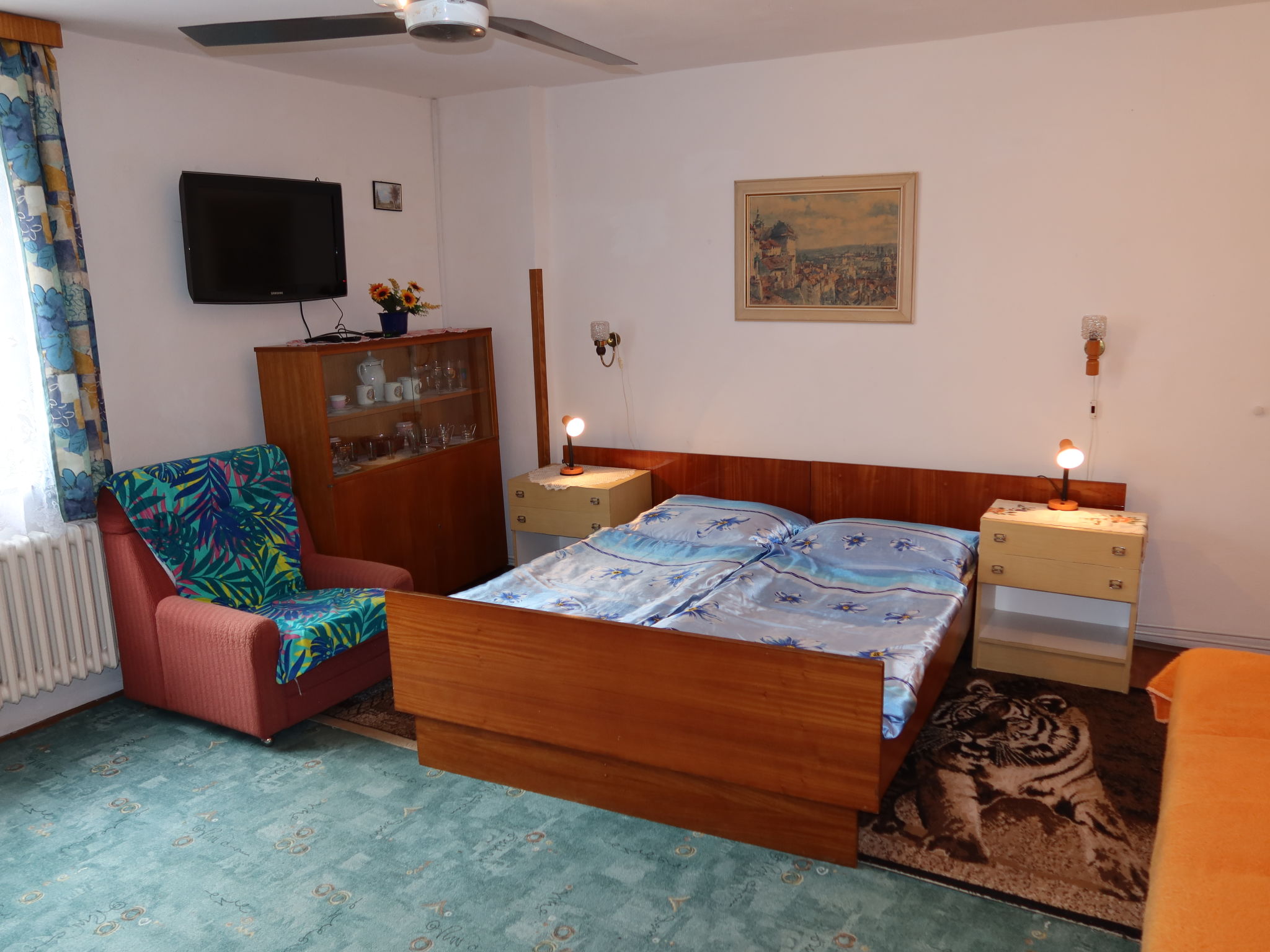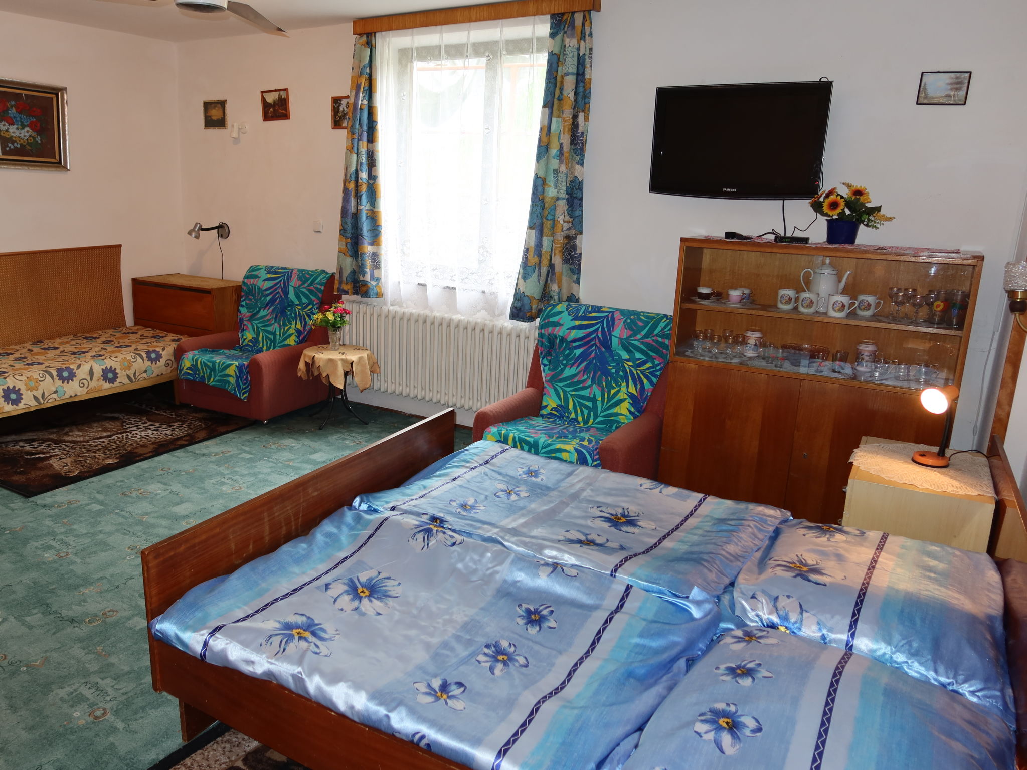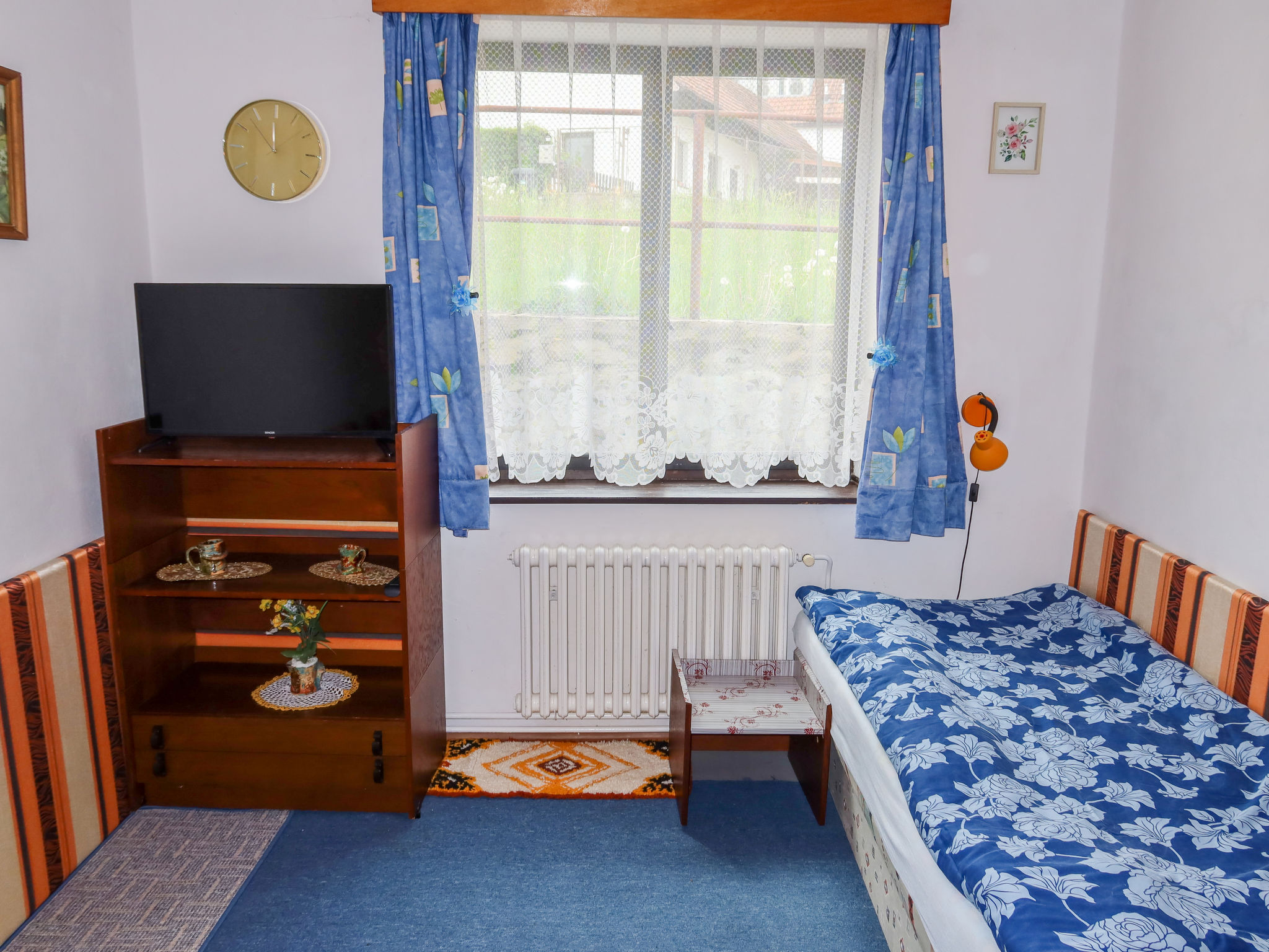 3-Zimmer-Haus. Geräumig, gemütlich eingerichtet: Wohnzimmer mit 2 Diwanbetten und TV. 1 Zimmer mit 2 Betten und 1 Doppelbett. 1 Zimmer mit 3 Betten. Küche (4 Kochplatten, Backofen, Wasserkocher, Mikrowelle, Tiefkühler) mit Esstisch. Bad/Dusche, sep. WC. E-Heizung. Heizung nicht in allen Räumen. 2 kleine Haustiere/Hunde erlaubt.