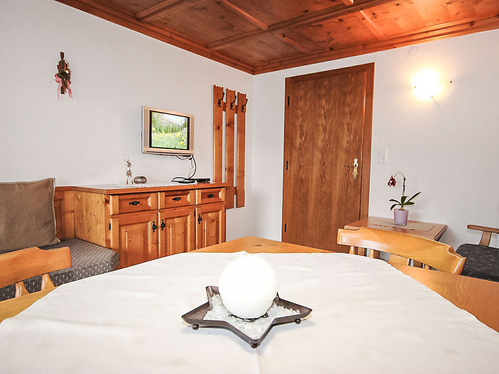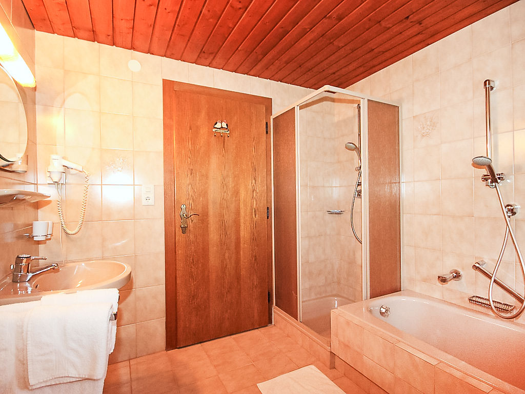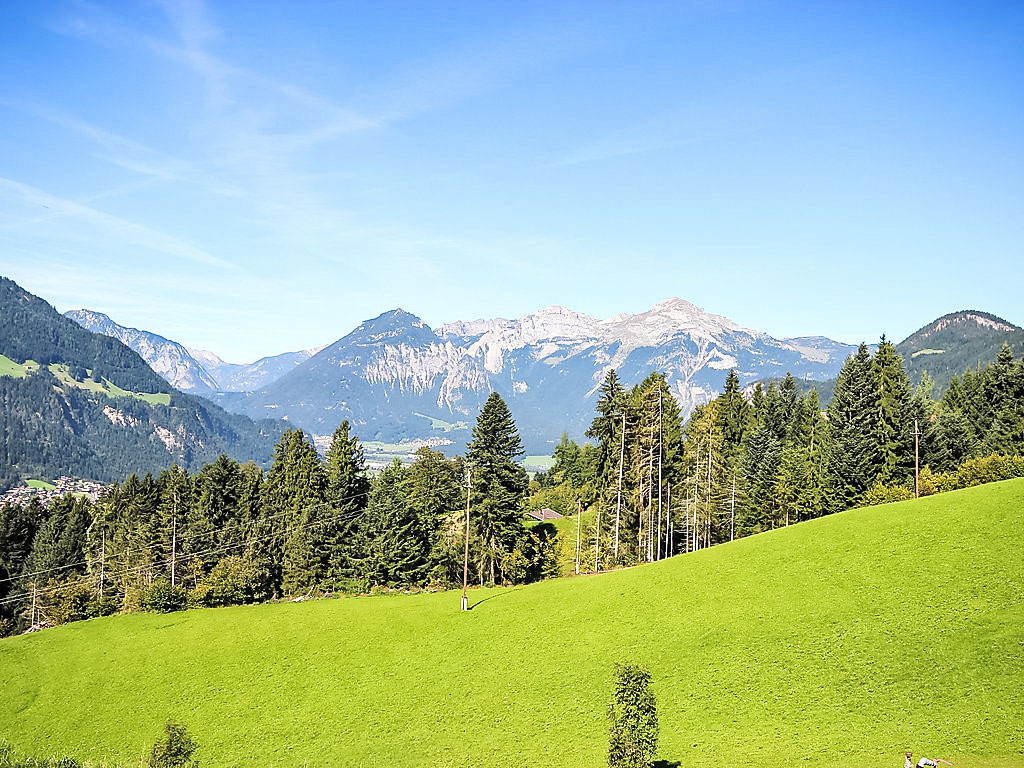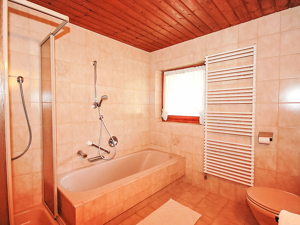 5-Zimmer-Wohnung 100 m2 im 1. Stock. Geräumig, schön und gemütlich eingerichtet: Eingang. Wohn-/Esszimmer mit Essecke und Sat-TV (Flachbildschirm). Ausgang zum Balkon. 1 Zimmer mit 1 Bett, 1 Doppelbett und Waschbecken. 2 Doppelzimmer, jedes Zimmer mit Waschbecken und Dusche. Wohnküche (Backofen, Geschirrspüler, 4 Glaskeramikherd Platten, Toaster, Wasserkocher, Mikrowelle) mit Esstisch, Radio und CD. Ausgang zum Balkon. Sep. WC, Bad/Dusche/WC. Balkon. Balkonmöbel. Herrliche Panoramasicht auf die Berge und das Tal. Zur Verfügung: Haartrockner. Internet (Wireless LAN, gratis). Kaffeevollautomat und Filterkaffeemaschine vorhanden.